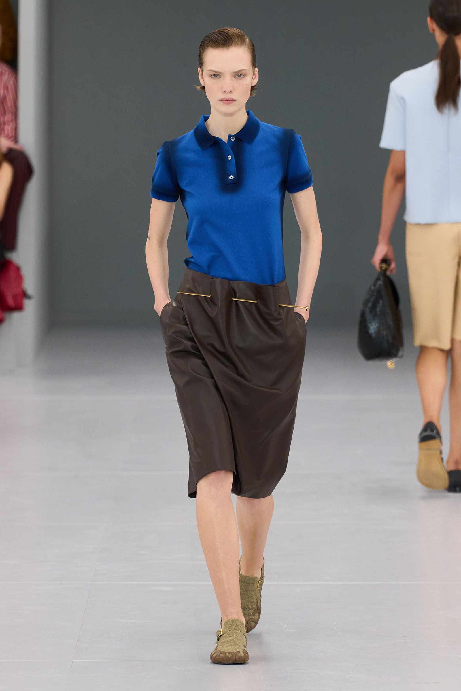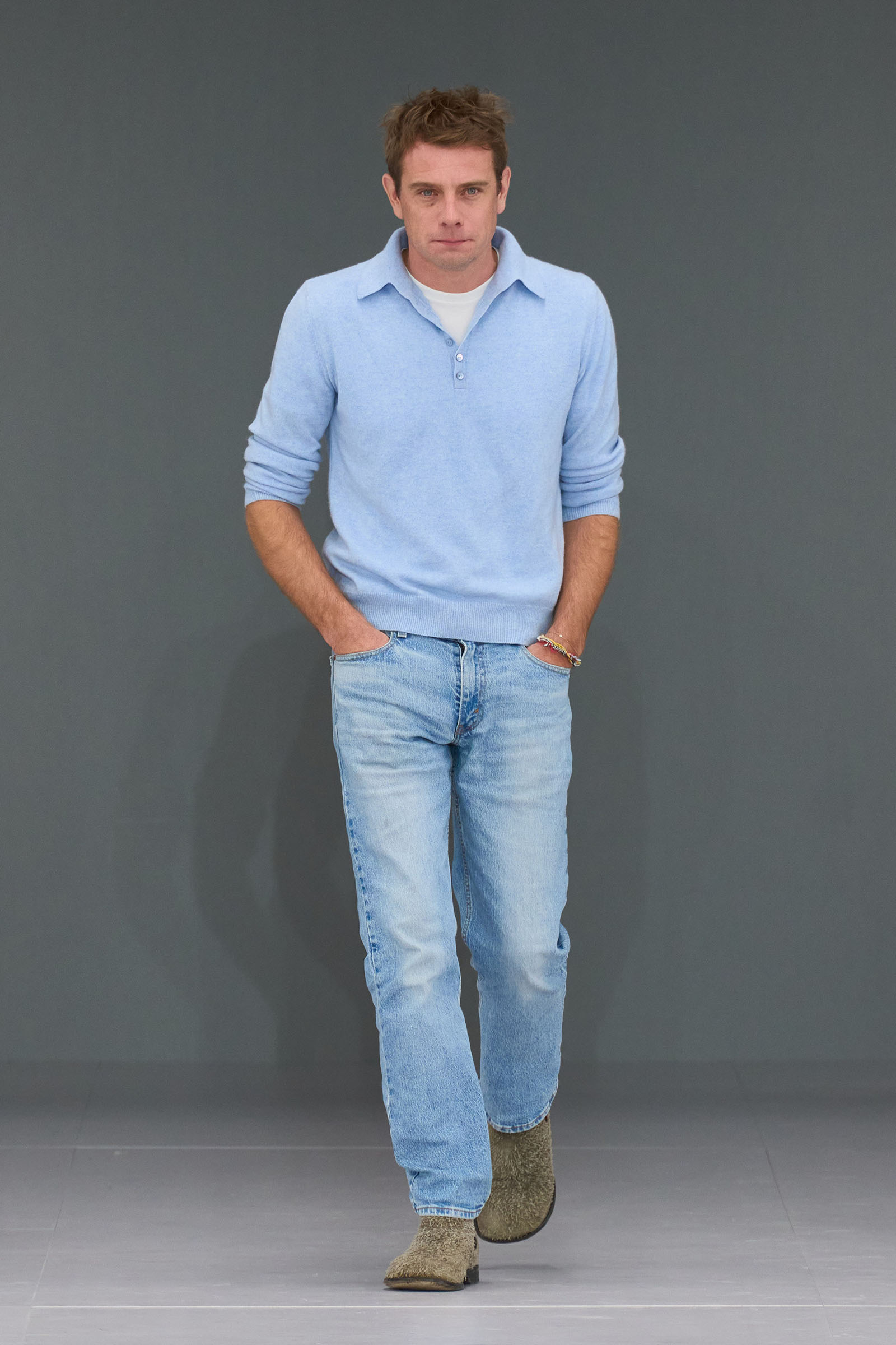 “Day looks. I’m loving daywear at the moment,” he said, explaining the brief he’d set for himself. “How do you twist something so it’s ‘oh, yes—I recognize the oxford shirt and white pair of jeans,’ but then it’s off in a weird way? There’s a subversiveness to it. But it’s very civilized.”