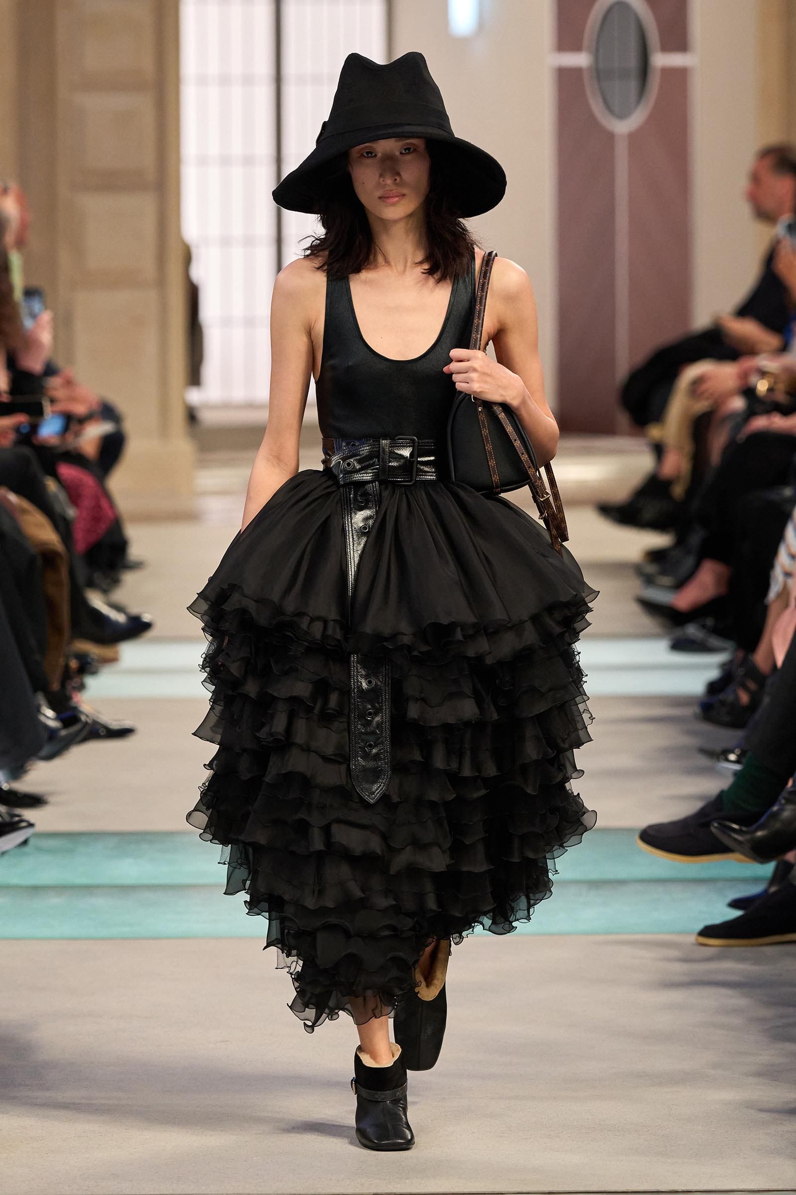 “I started with the idea of something very collective, which is the platform of a station,” Ghesquière said, “where people meet, where people separate, where people are happy to be together again, where people are sad to leave each other. People you see just for once in your life with a certain look that you might never forget, that might influence you, which is, I think, my case somehow.”