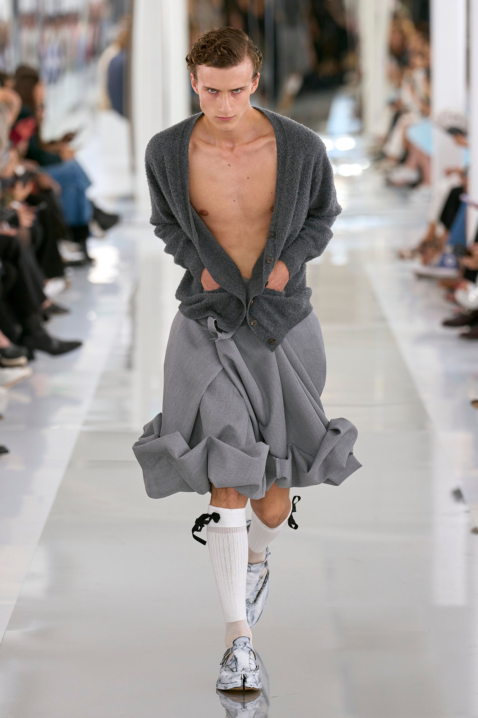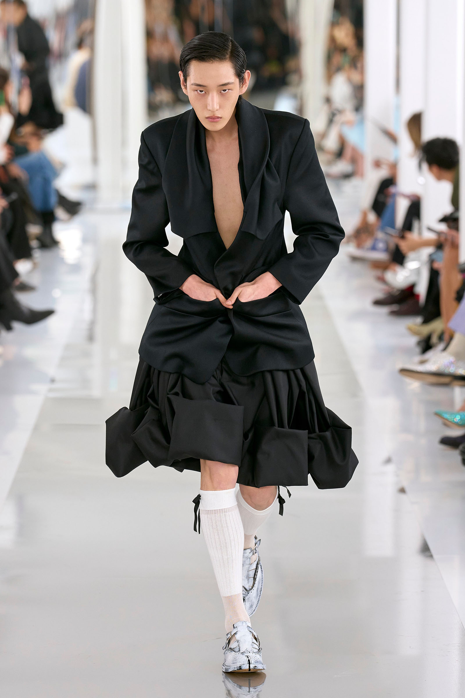 The mayhem of it—the proof that such beauty can be made out of trash, remnants, skill, and imagination—was one of the highlights of the entire season. Galliano is a standard-bearer for creativity; an inspiration to the young generations who adore him. When all is said and done, though, he also put out some of the most desirable coats, tailored jackets, trenches, and duffle coats to be found anywhere.