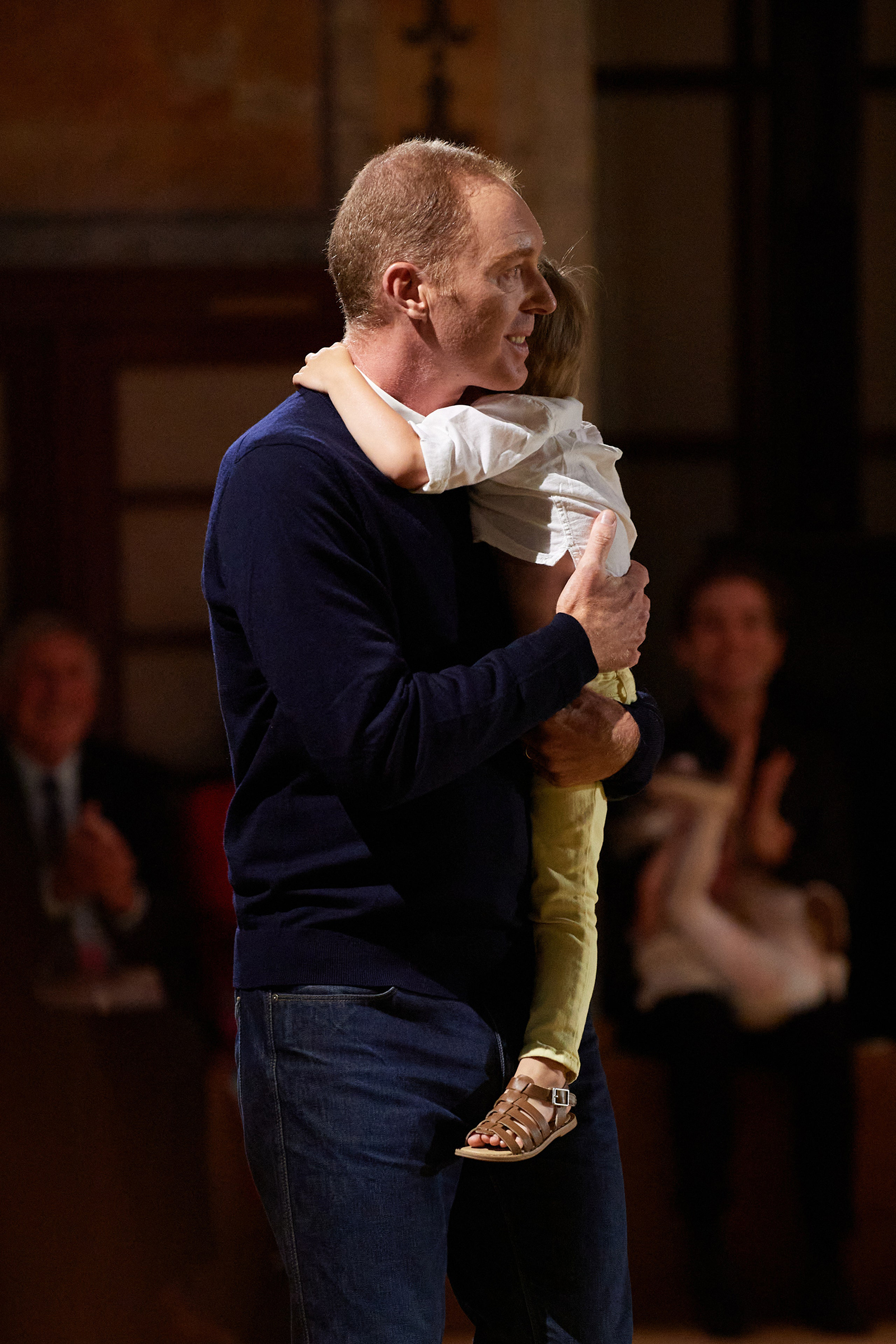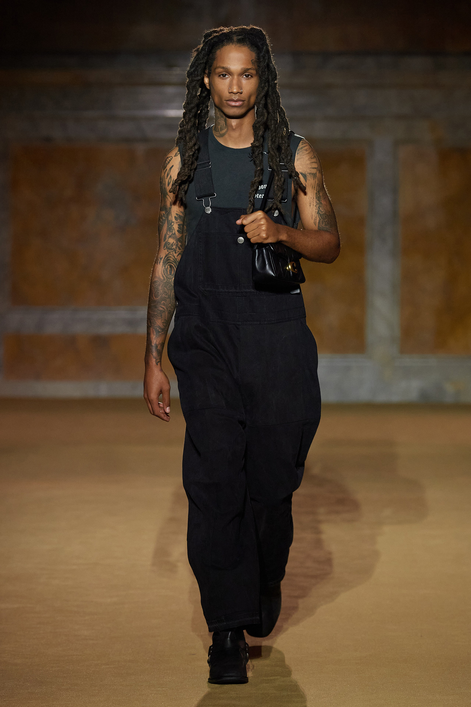 In a way, New York City played the starring role here: the show took place at the iconic main branch of the New York Public Library near Bryant Park (another iconic fashion landmark), with Vevers’s children and father present (it was the first time he’d attended a fashion show). It’s the city where the British designer met his husband and started a family; the city where he’s been hard at work cementing the legacy of Coach as “America’s House of Leather,” especially what it means to be a house of leather in 2023, when so many conversations revolve around topics of sustainability and climate change. That Vevers has made these an important part of his collections, working with upcycled leather and denim, as well as regenerated cotton and leather, made the rare appearance by an anti-leather protester all the more strange, though it’s worth noting that security did not force her off the catwalk. “I respect all points of view,” Vevers said later at the celebratory dinner.