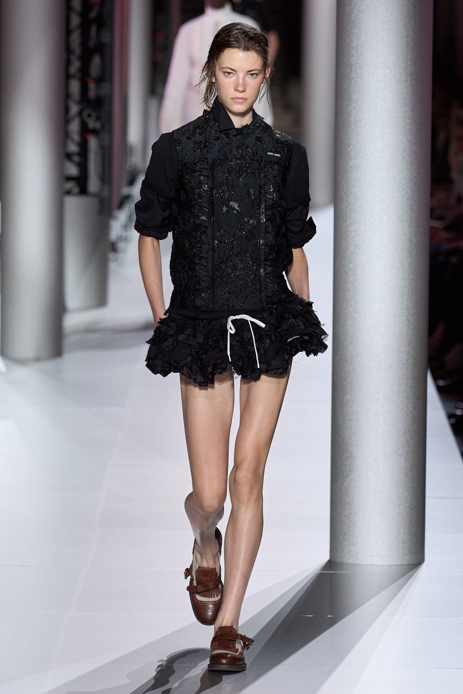 Bringing down the curtain on a confusing and emotionally fraught season, it took the great Miuccia Prada to give such a coherent, empathetic and confidence-building show for women, by a woman. Miu Miu was a brilliantly confirming run-through and remix of all the clothes we love, hoard, and rely on; the basic and the glittery, the sporty and the bonkers.
