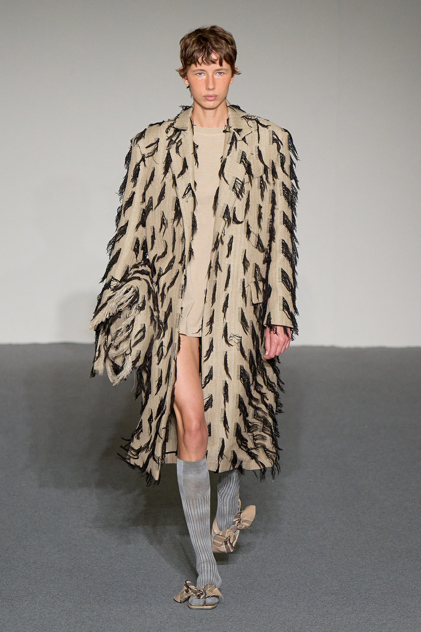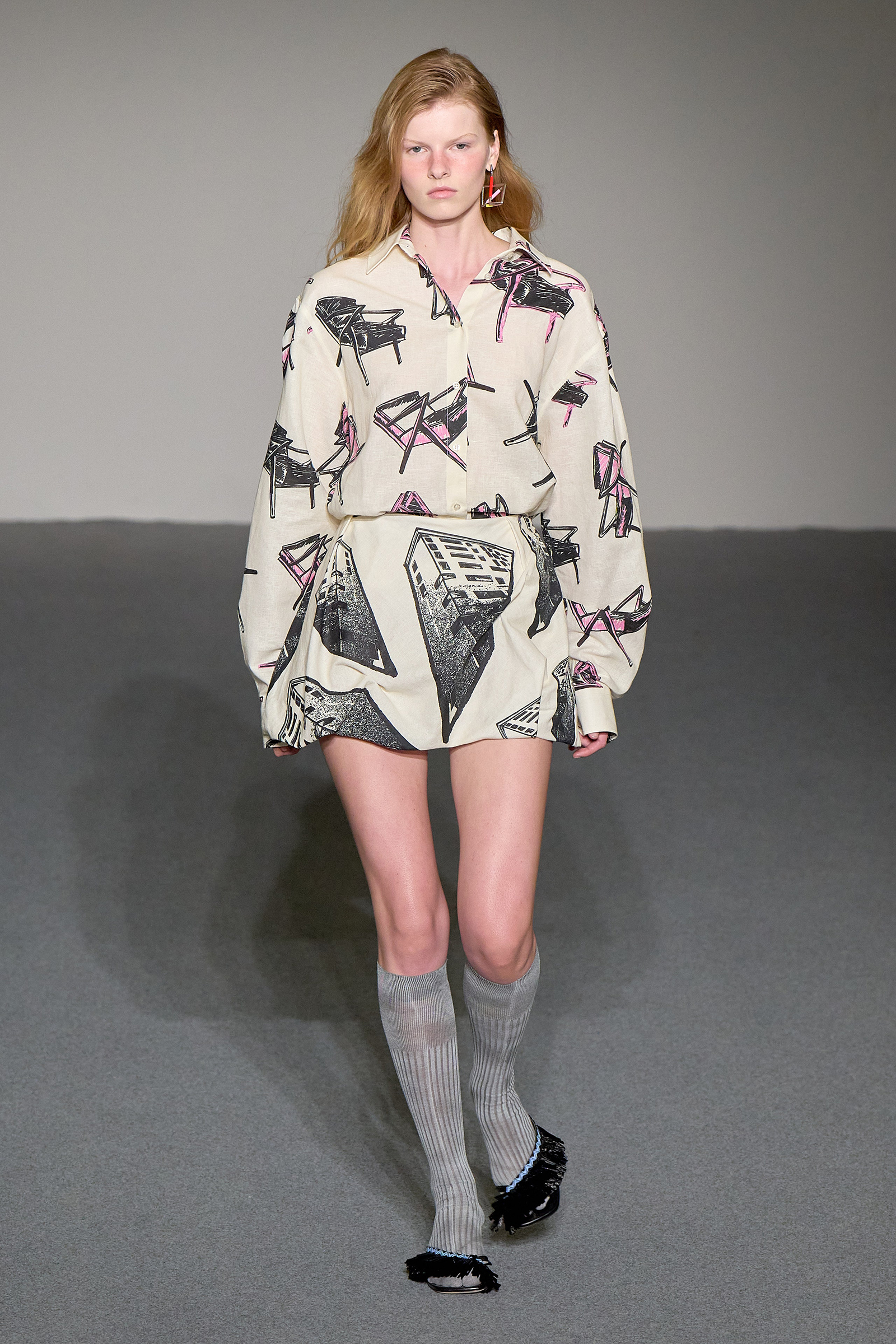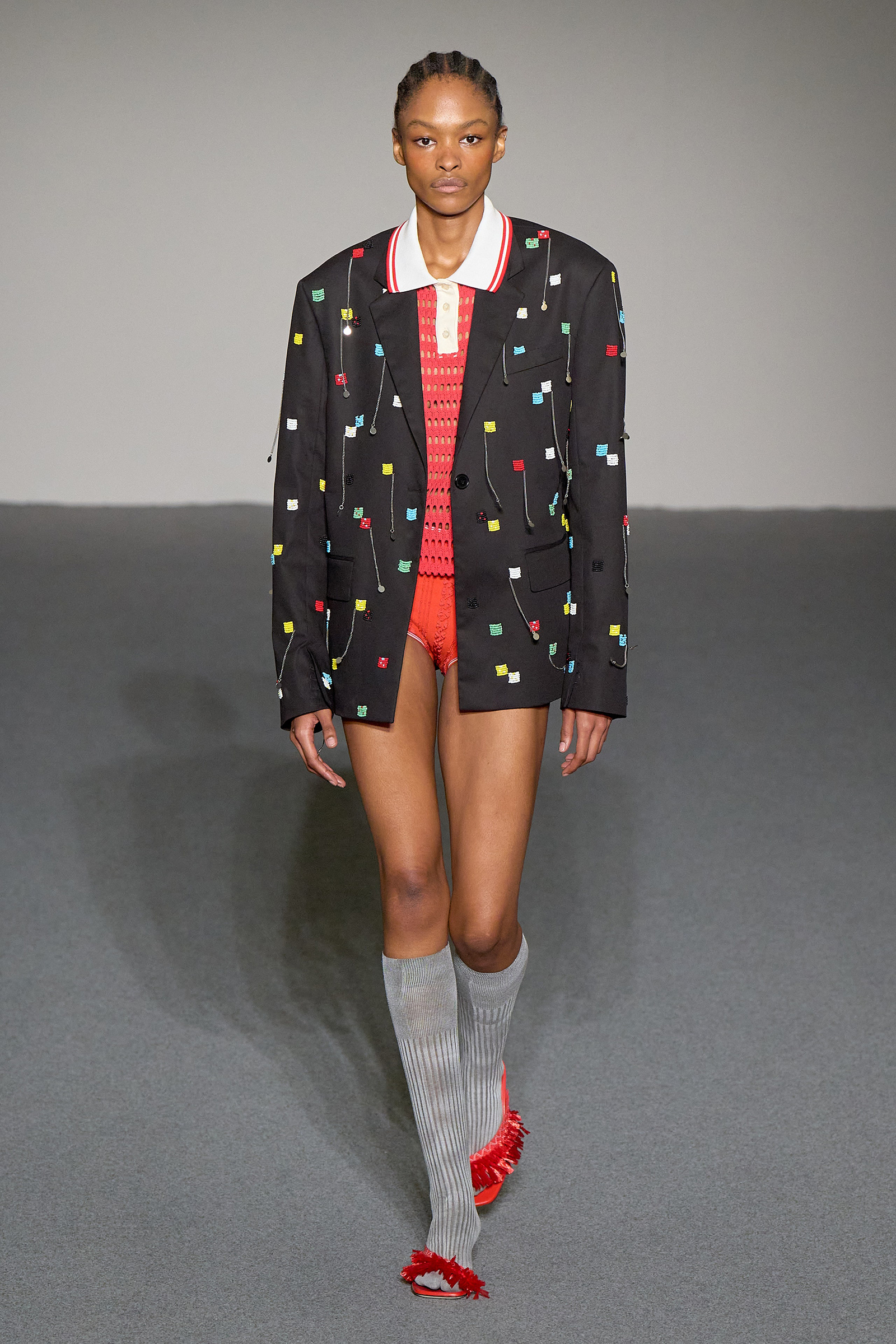 Bad weather scuppered plans not only for Gucci, where Sabato De Sarno’s first outing had to be moved indoors, but also for MSGM, which had to relocate too, ditching the open-air modernist space where Massimo Giorgetti had planned to show. But the ever-optimistic designer took it in stride. Backstage, he said that “in the end, this was an accident that mirrored the spirit of the collection, which was born out of collisions, accidents, clashes, and crashes of all my passions—art, music, design.”