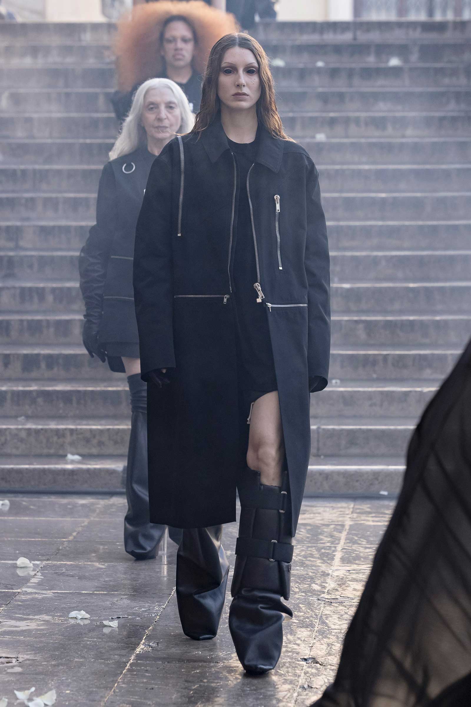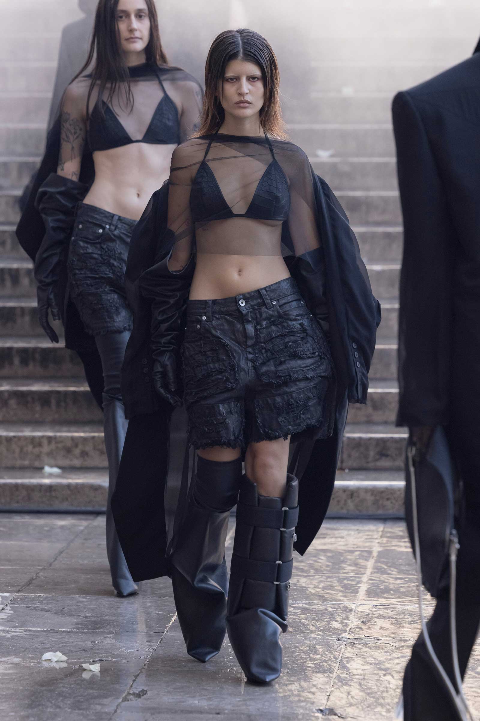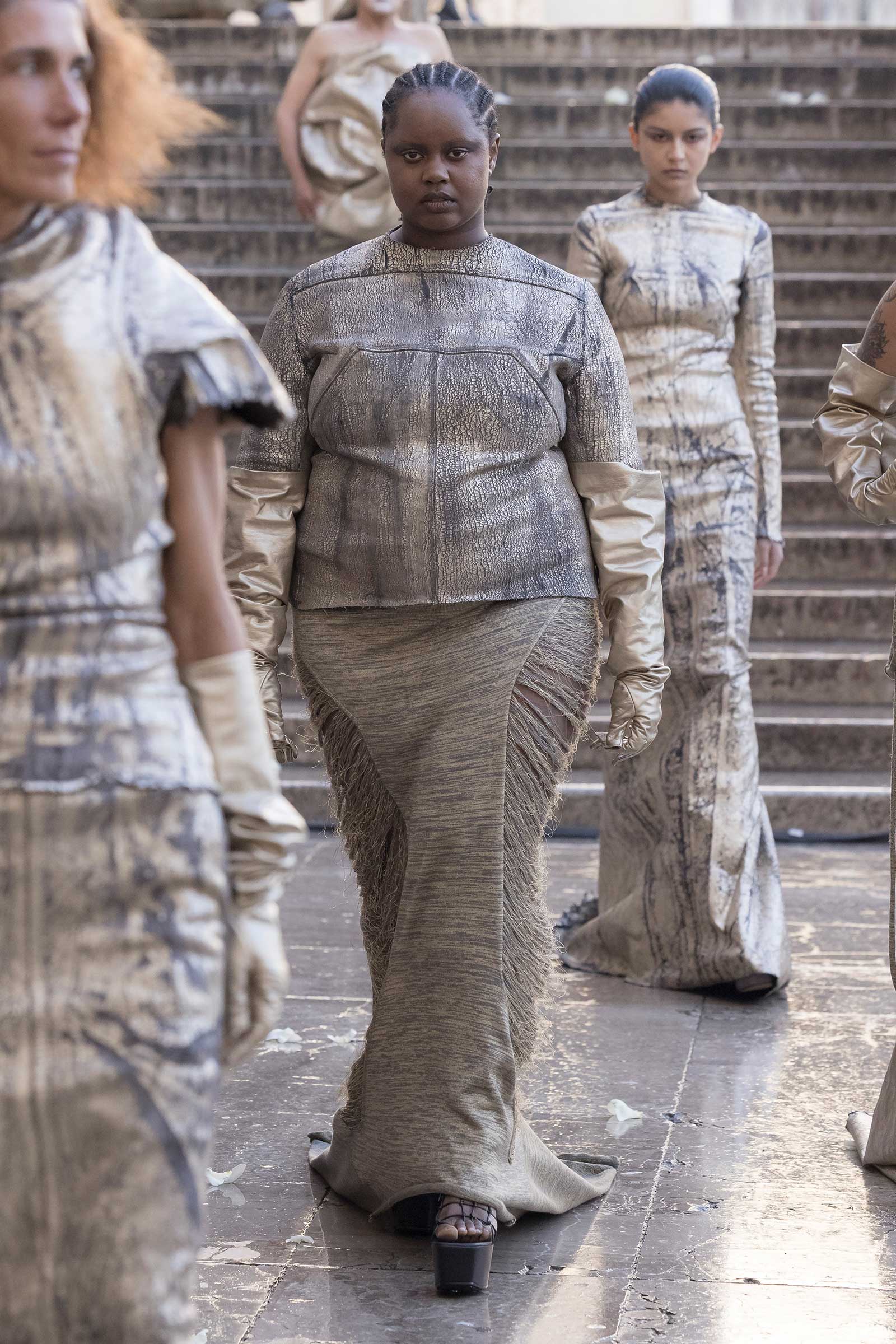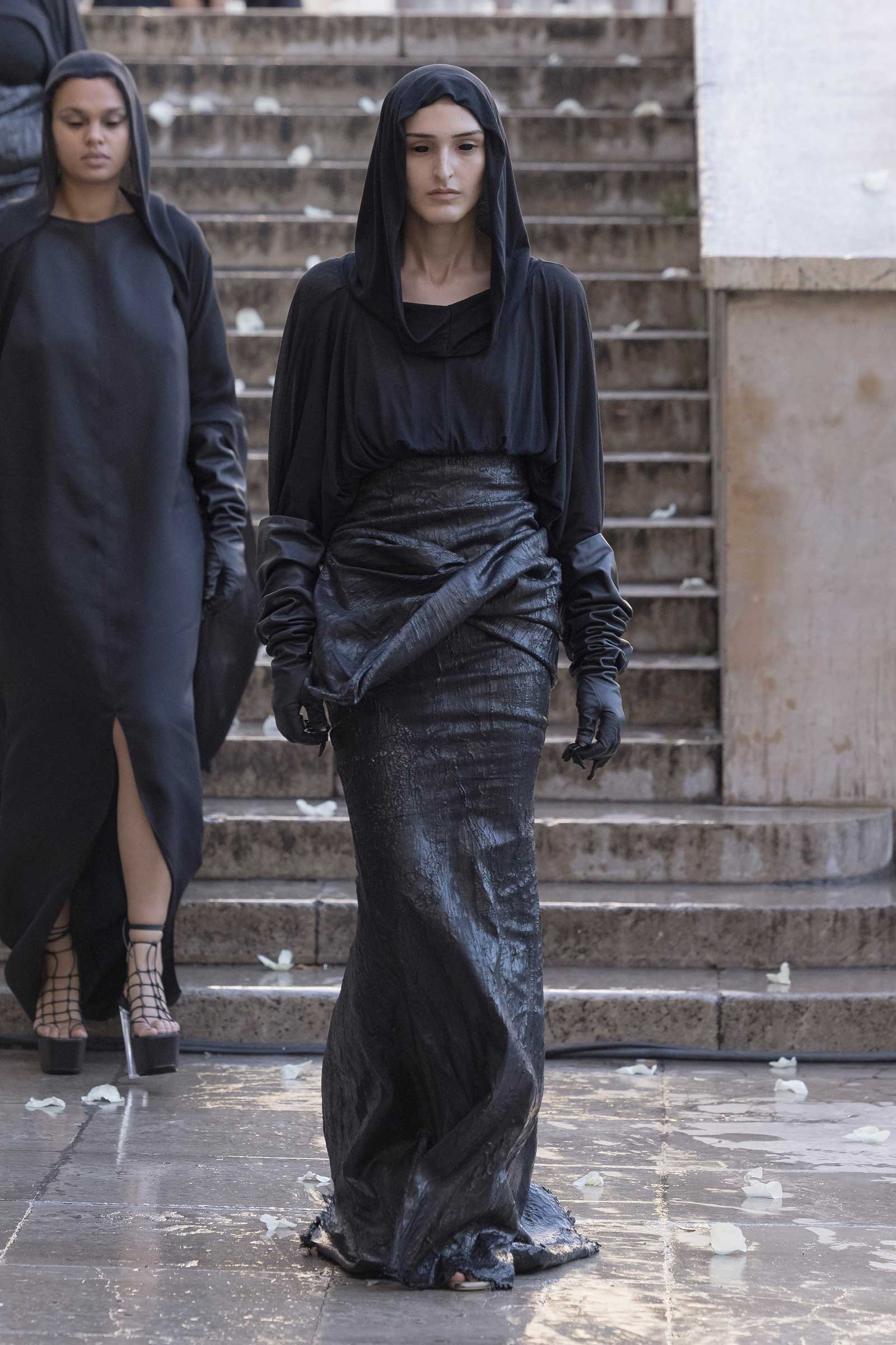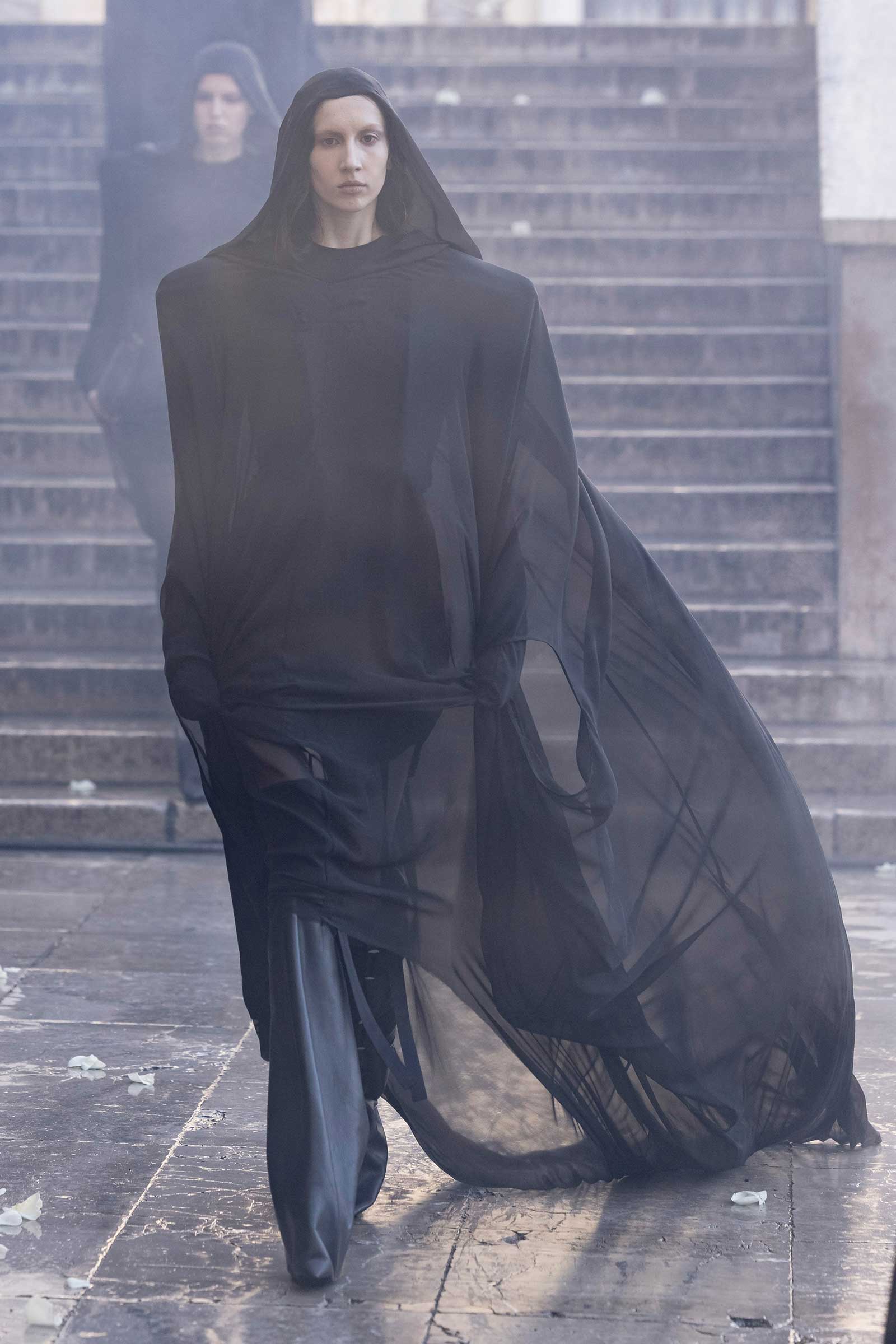 There were texts flying back and forth all over town. Is Rick really outside? It’s been a gloomy Paris Fashion Week, and it didn’t look like the rain would let up as showtime approached. In September, Rick Owens’s shows are usually held outside, staged on the monumental and highly cinematic terrace of the Palais de Tokyo. But then, by some stroke of luck, or maybe it was the tiny Ganesh figurine placed under the bench in Row B to ward off the clouds, the sun finally broke through. It was as if Cecil B. DeMille or Ken Russell, two of the movie directors Owens often quotes, were calling the shots from somewhere off-set.
