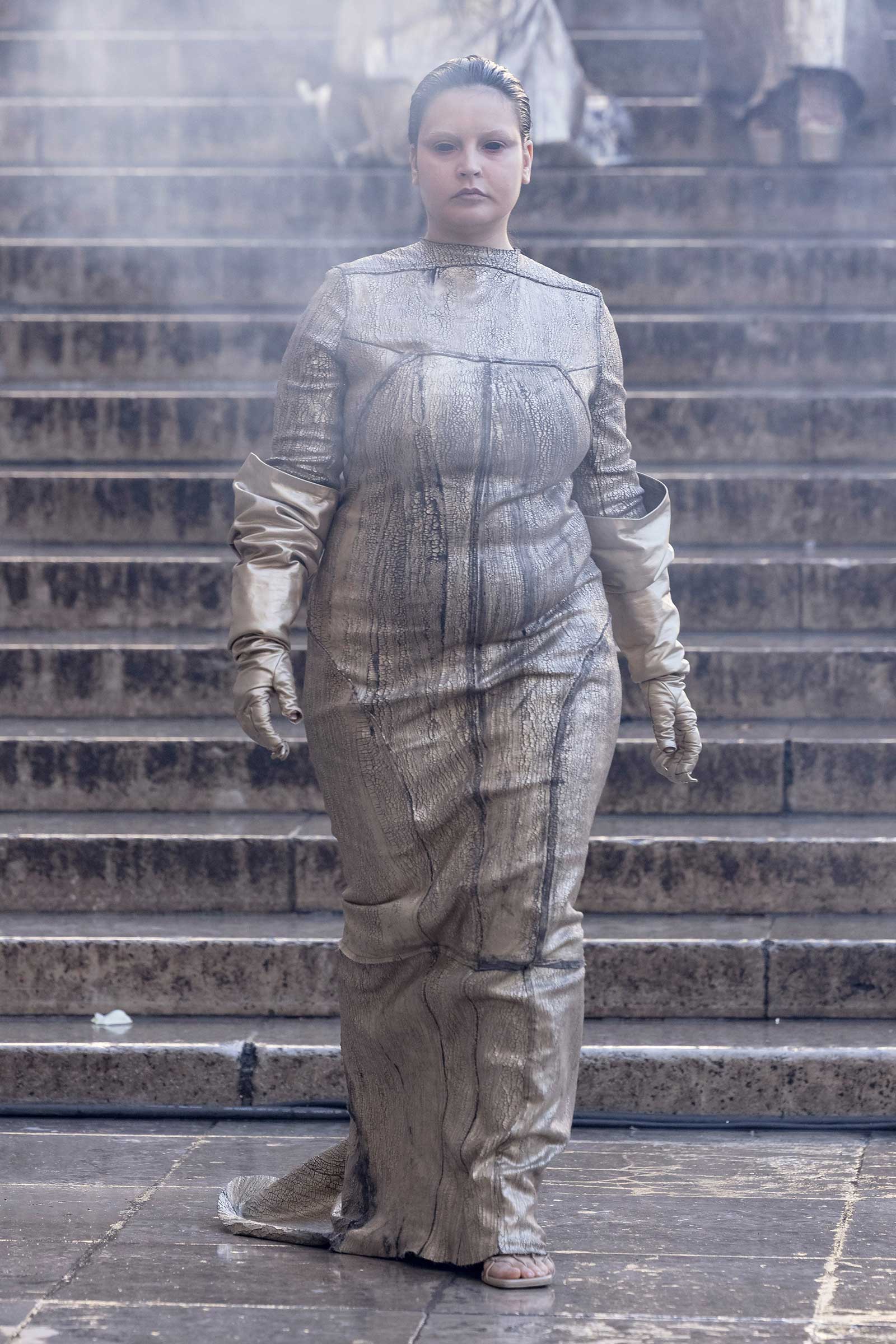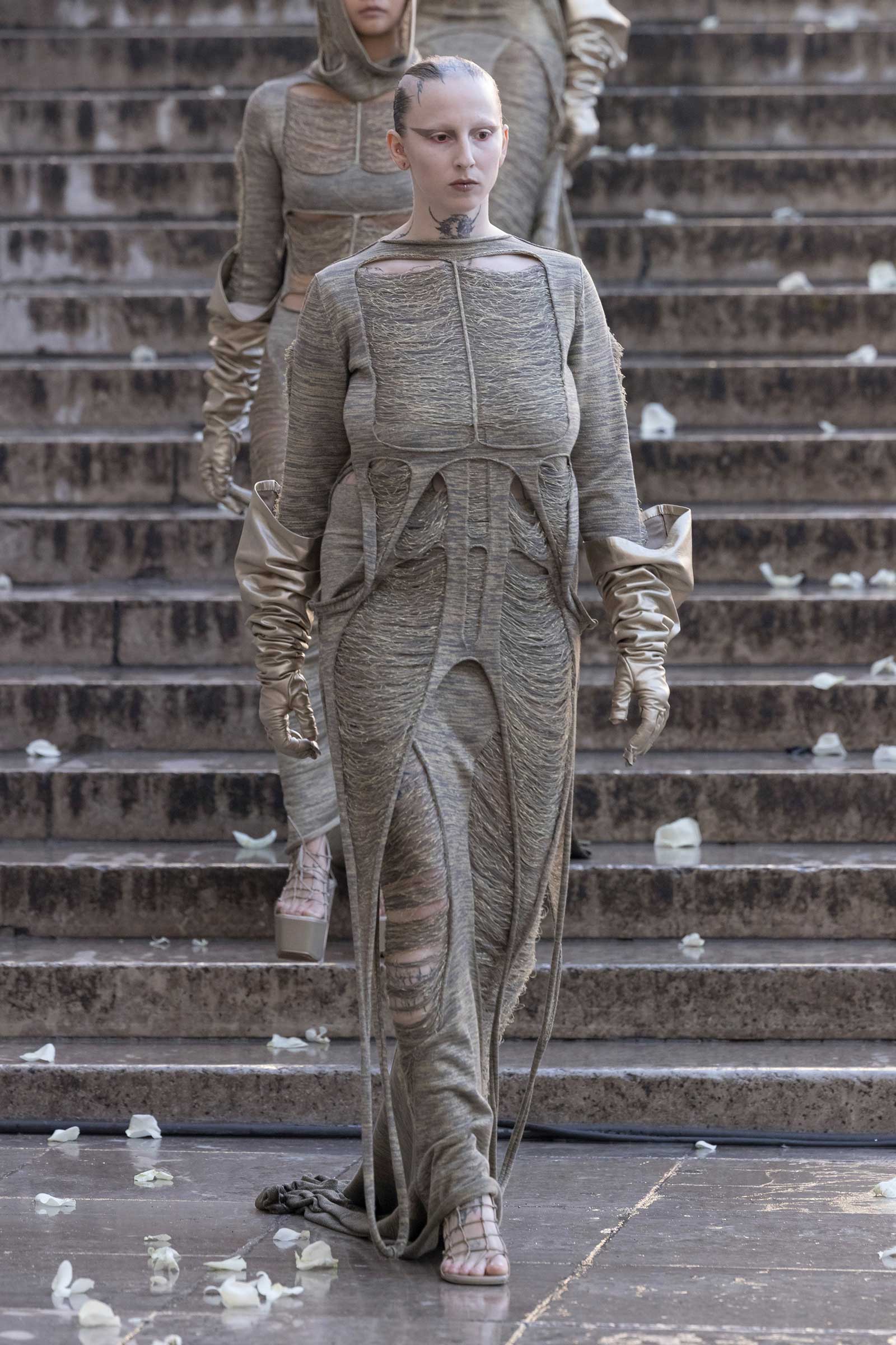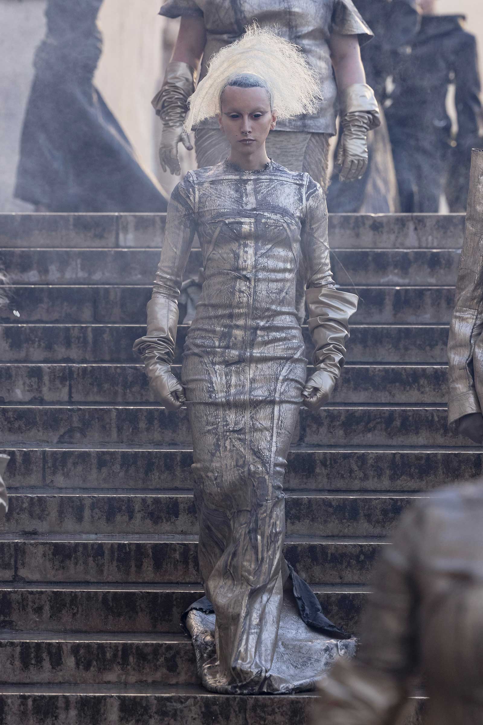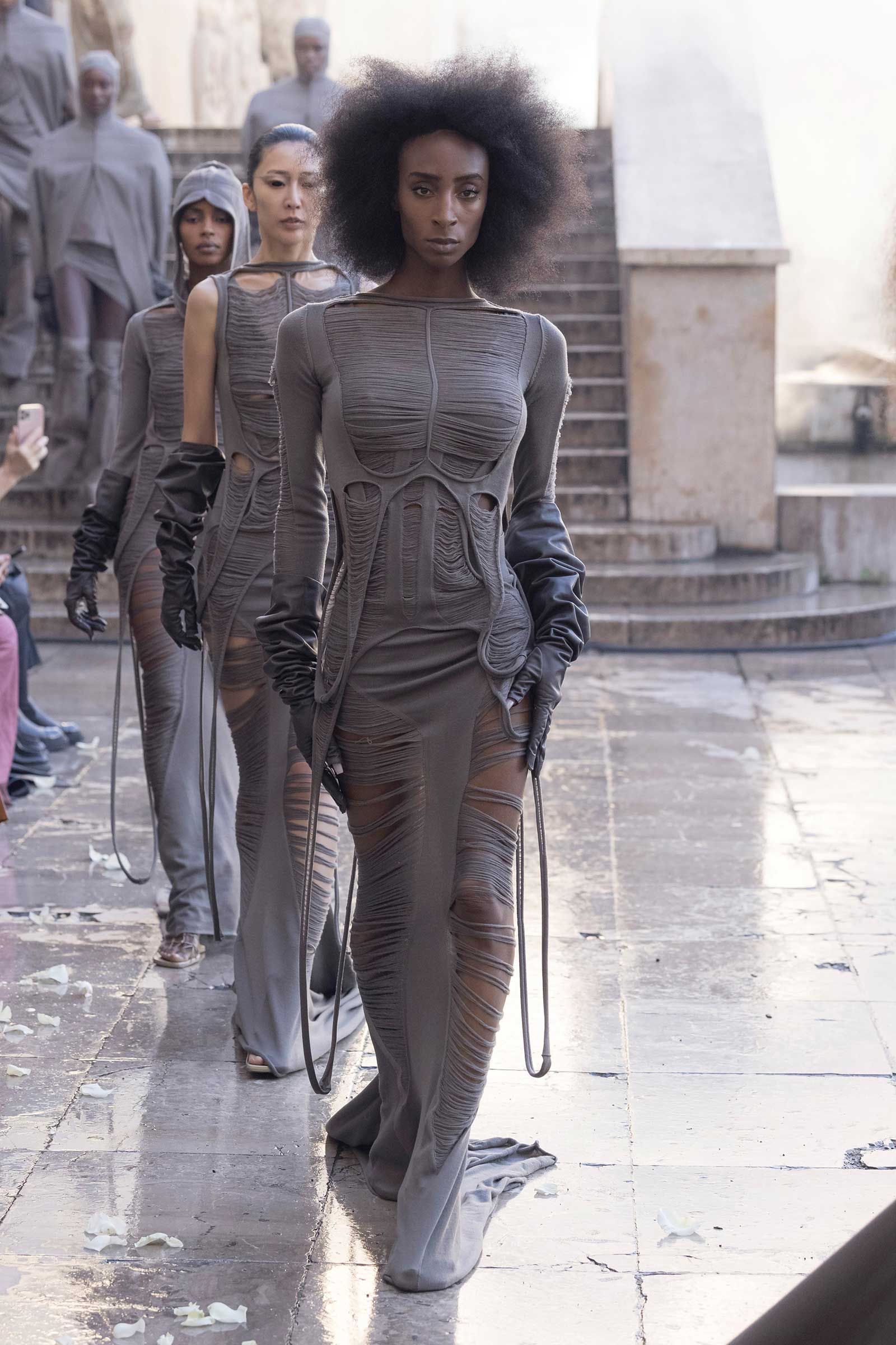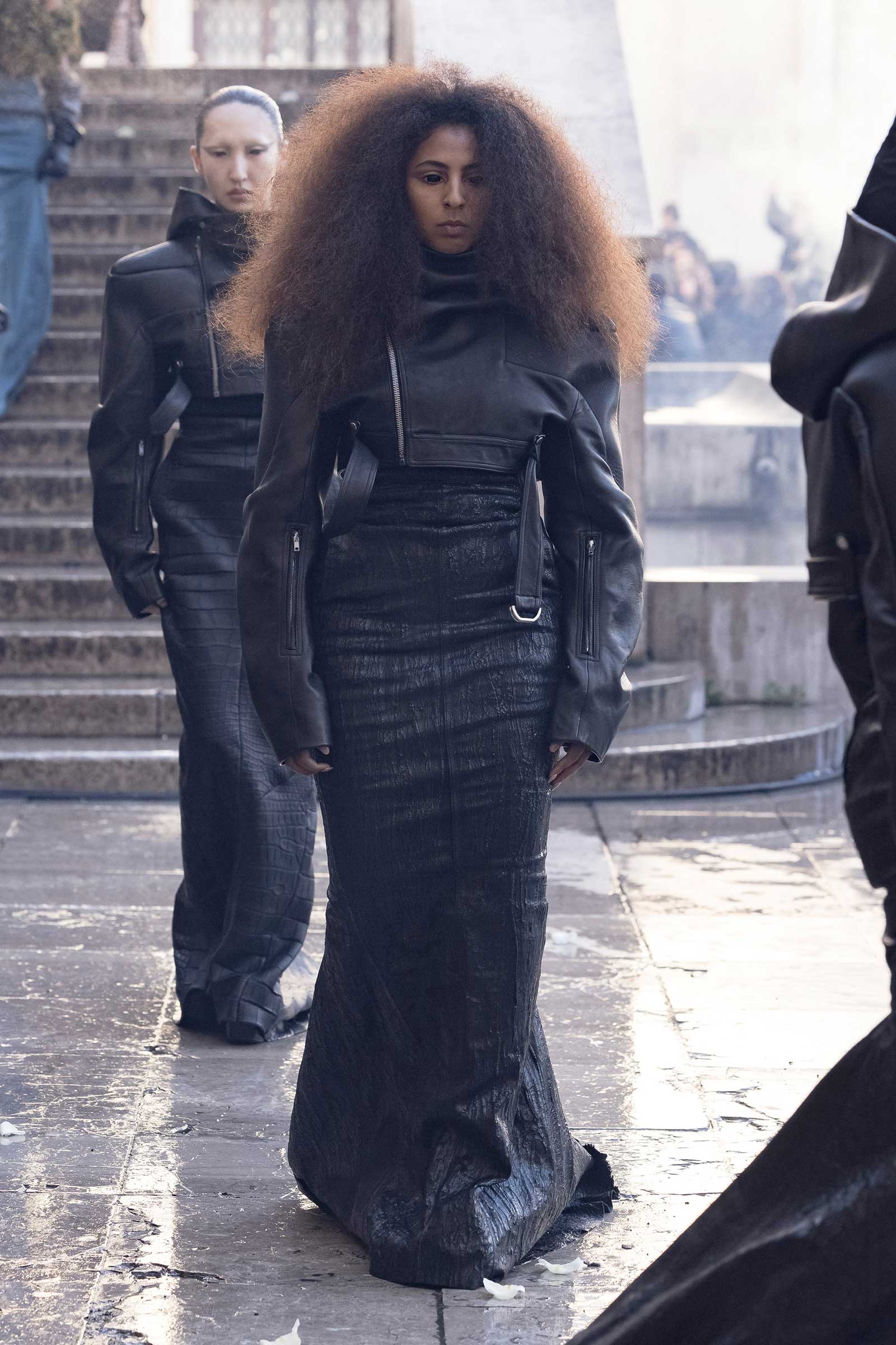 There were texts flying back and forth all over town. Is Rick really outside? It’s been a gloomy Paris Fashion Week, and it didn’t look like the rain would let up as showtime approached. In September, Rick Owens’s shows are usually held outside, staged on the monumental and highly cinematic terrace of the Palais de Tokyo. But then, by some stroke of luck, or maybe it was the tiny Ganesh figurine placed under the bench in Row B to ward off the clouds, the sun finally broke through. It was as if Cecil B. DeMille or Ken Russell, two of the movie directors Owens often quotes, were calling the shots from somewhere off-set.