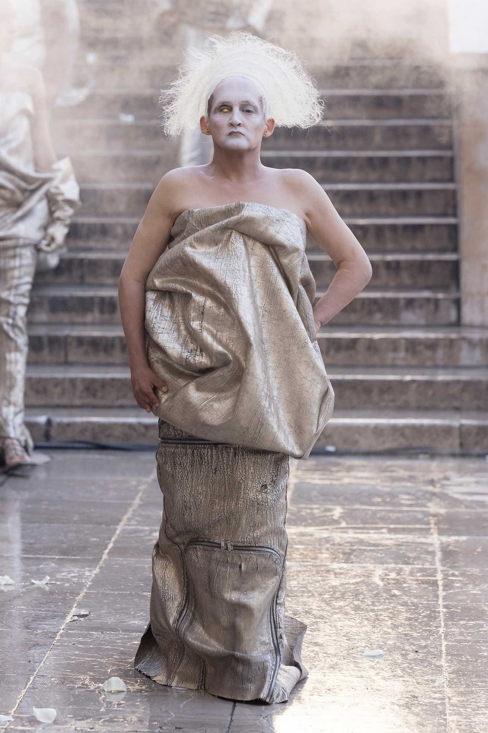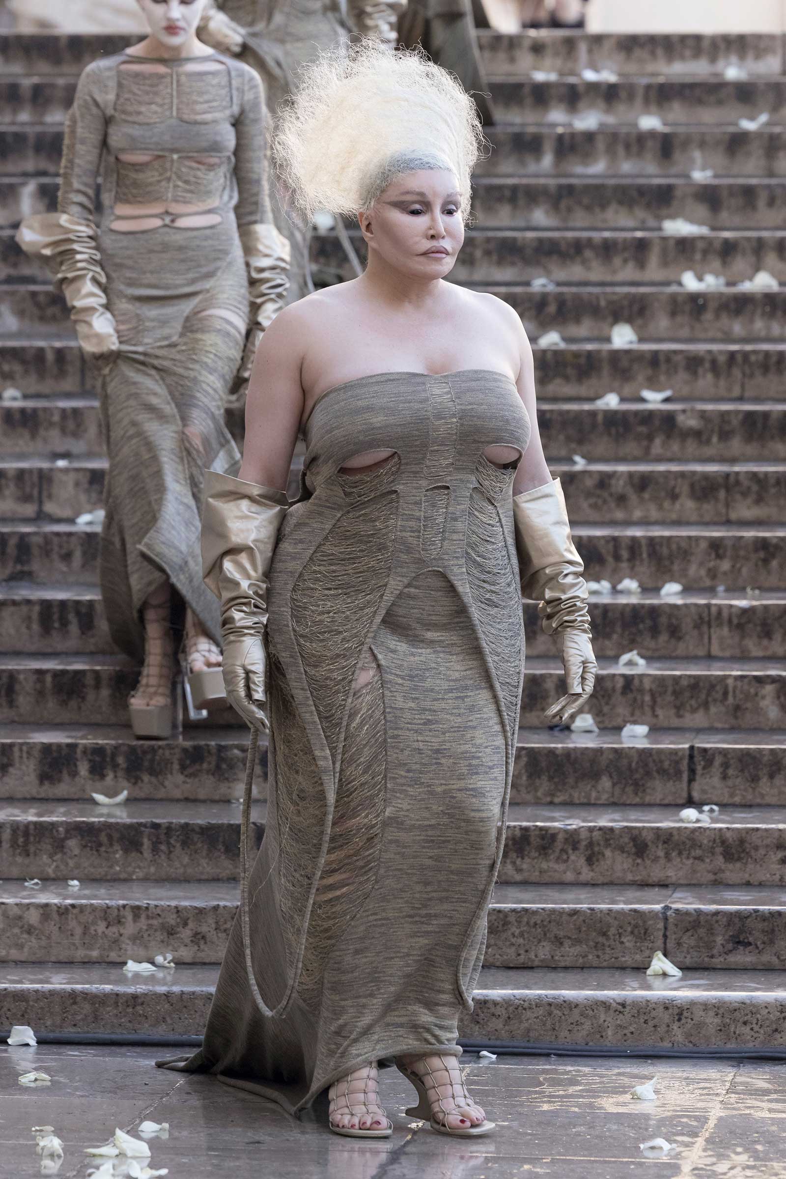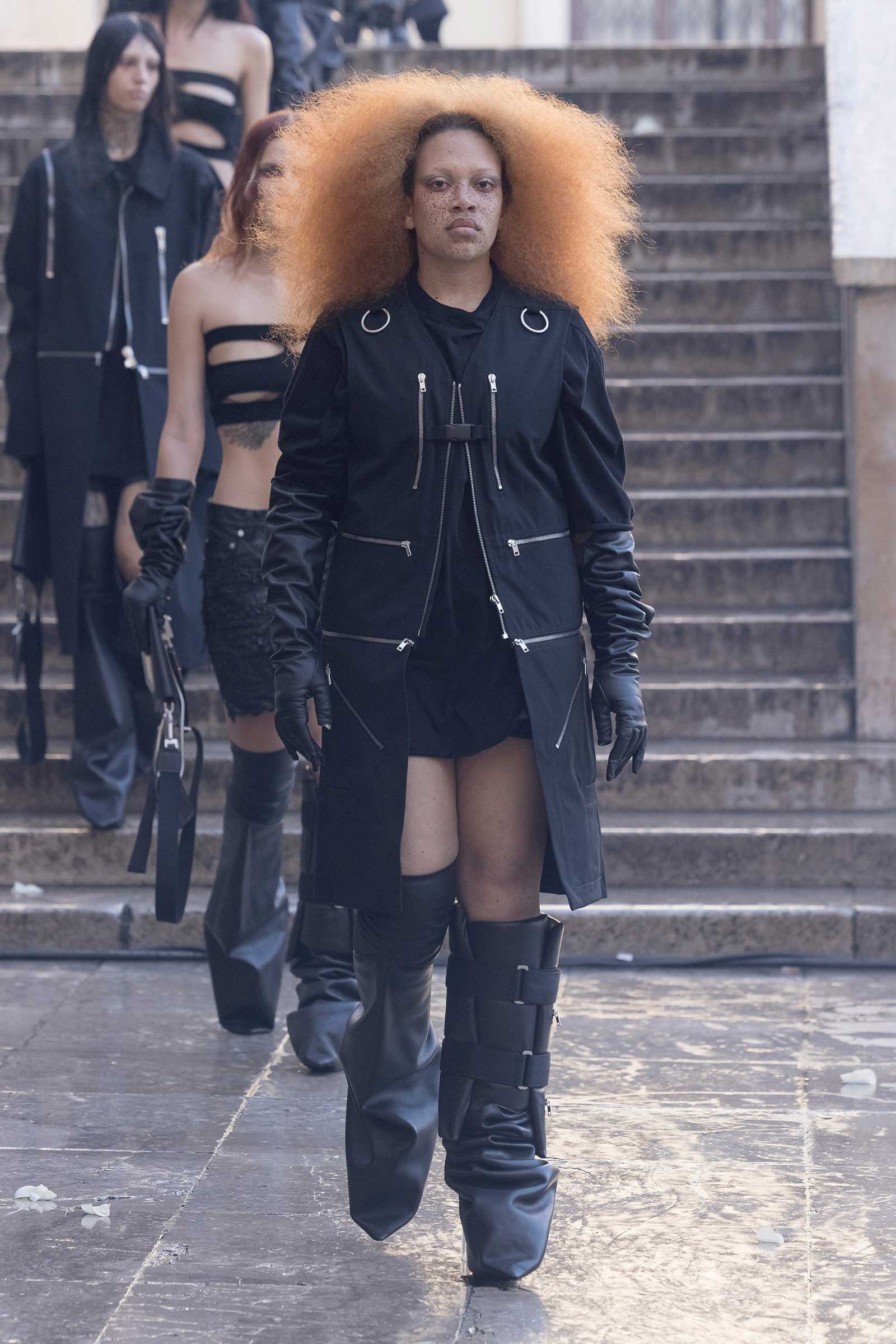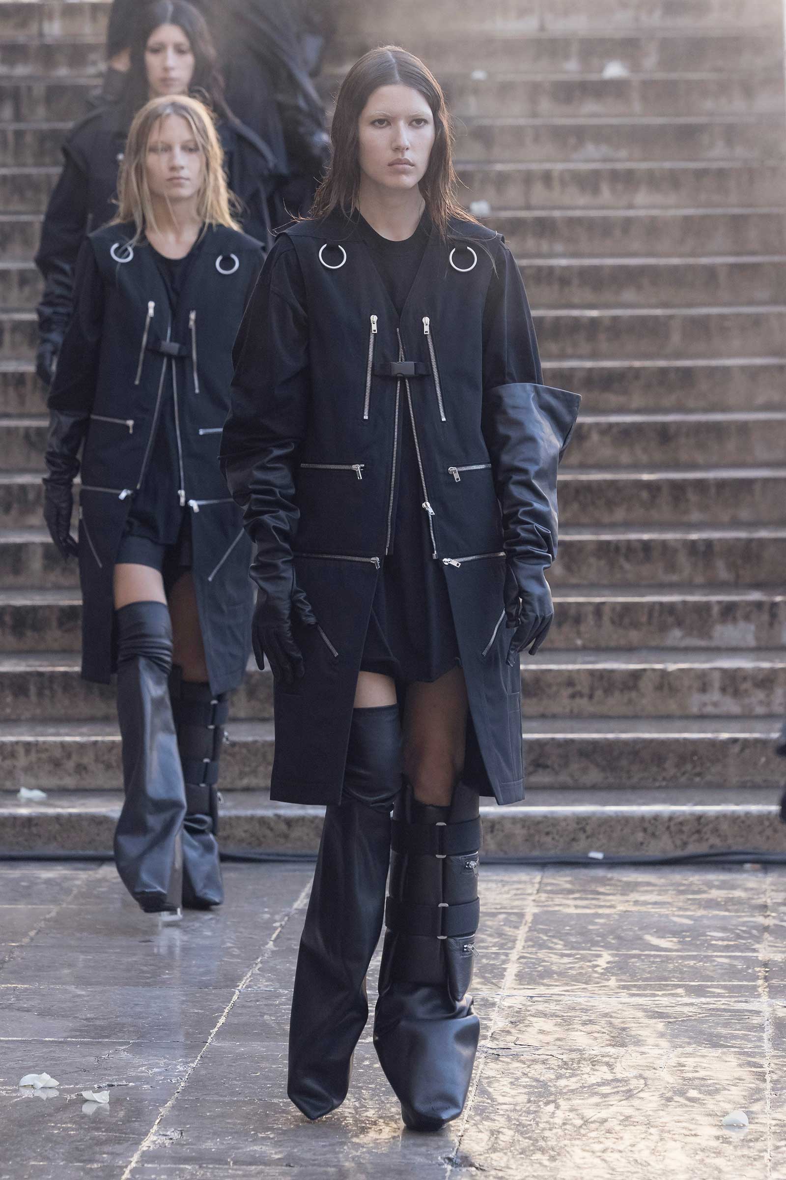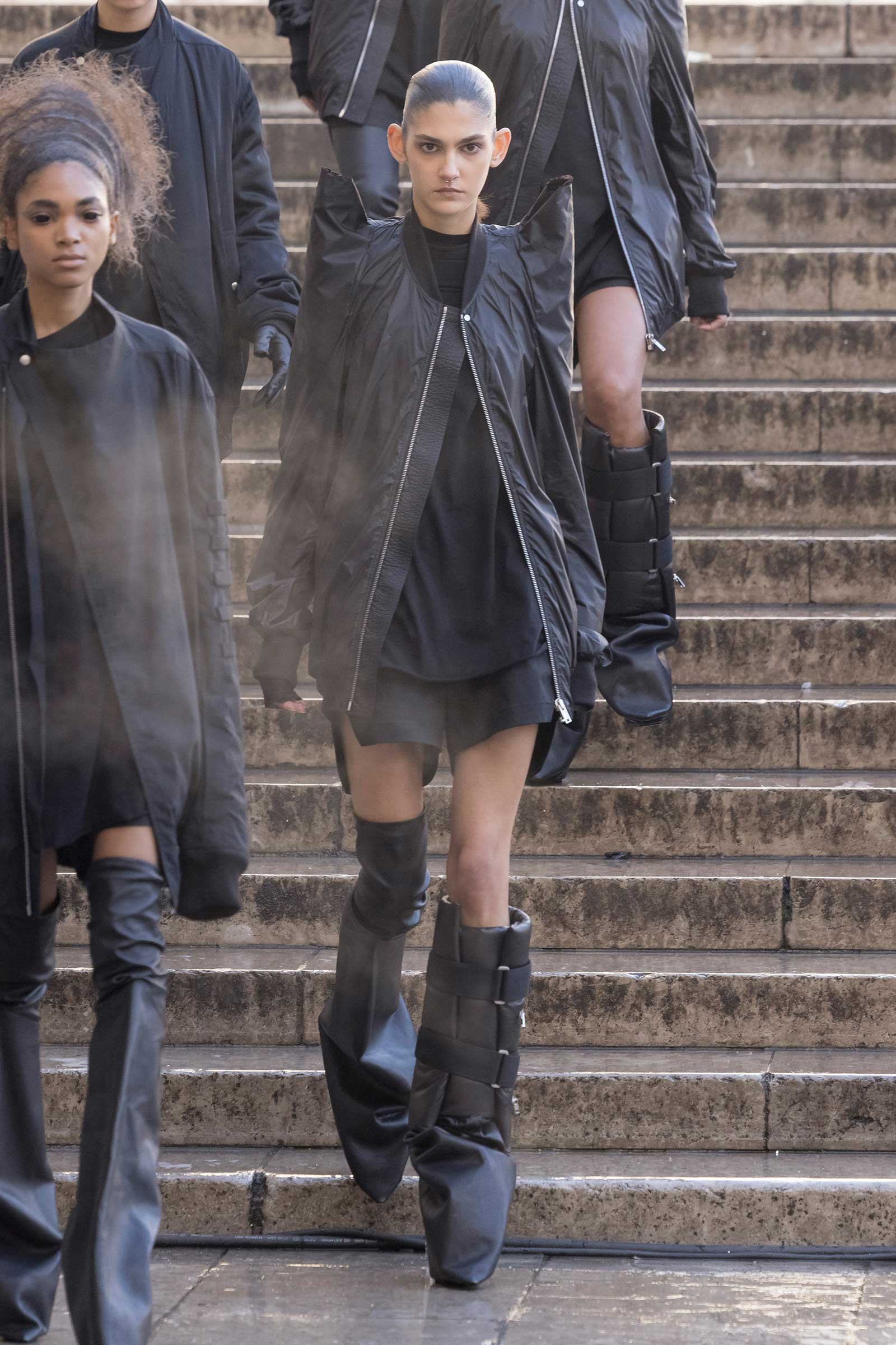 There were texts flying back and forth all over town. Is Rick really outside? It’s been a gloomy Paris Fashion Week, and it didn’t look like the rain would let up as showtime approached. In September, Rick Owens’s shows are usually held outside, staged on the monumental and highly cinematic terrace of the Palais de Tokyo. But then, by some stroke of luck, or maybe it was the tiny Ganesh figurine placed under the bench in Row B to ward off the clouds, the sun finally broke through. It was as if Cecil B. DeMille or Ken Russell, two of the movie directors Owens often quotes, were calling the shots from somewhere off-set.