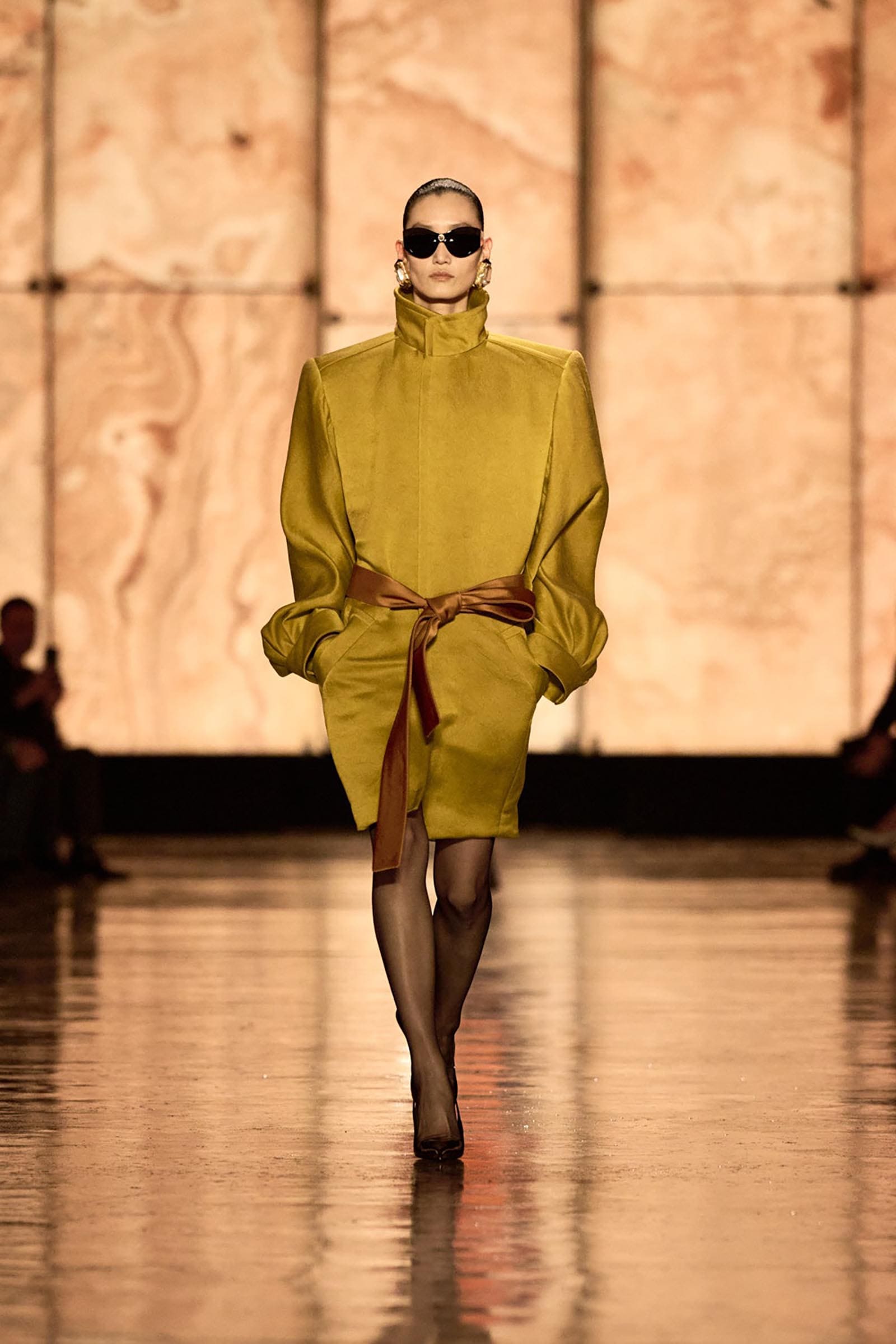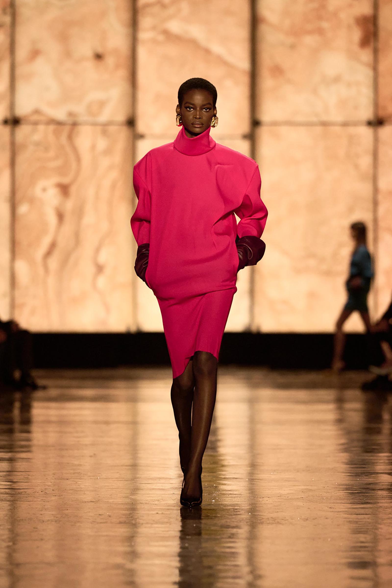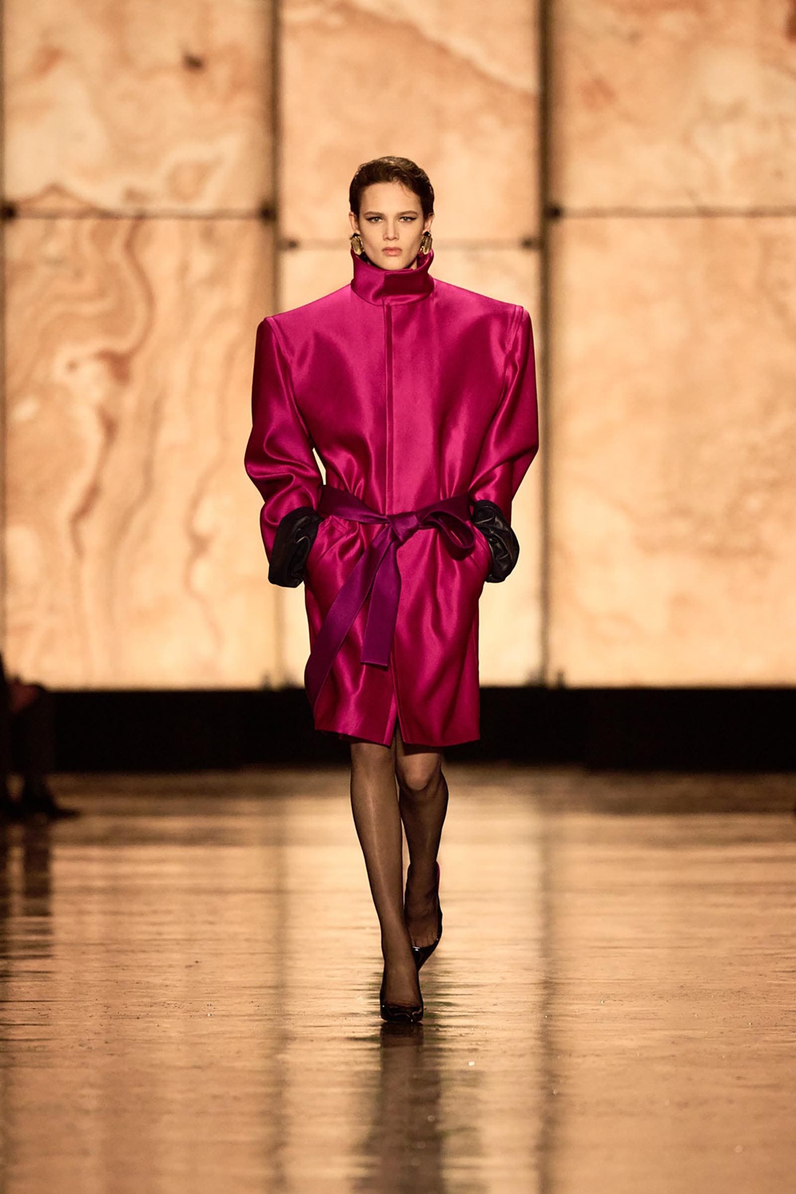 There was something tenderly suffused with feeling going on here; a sensitivity, a vulnerability even—this wasn’t some ridiculous fashion-y notion of runway valkyries. Instead, an unabashedly exquisite and respectful exercise in simply letting cut, construction and color—and what major, major color: fuschia, coral, amethyst, ochre, emerald, citrine, terracotta, and olive, et al—do what they are meant to do. Like Vairelli’s memory of Saint Laurent, it was love without needing to speak. The clothes said it all.