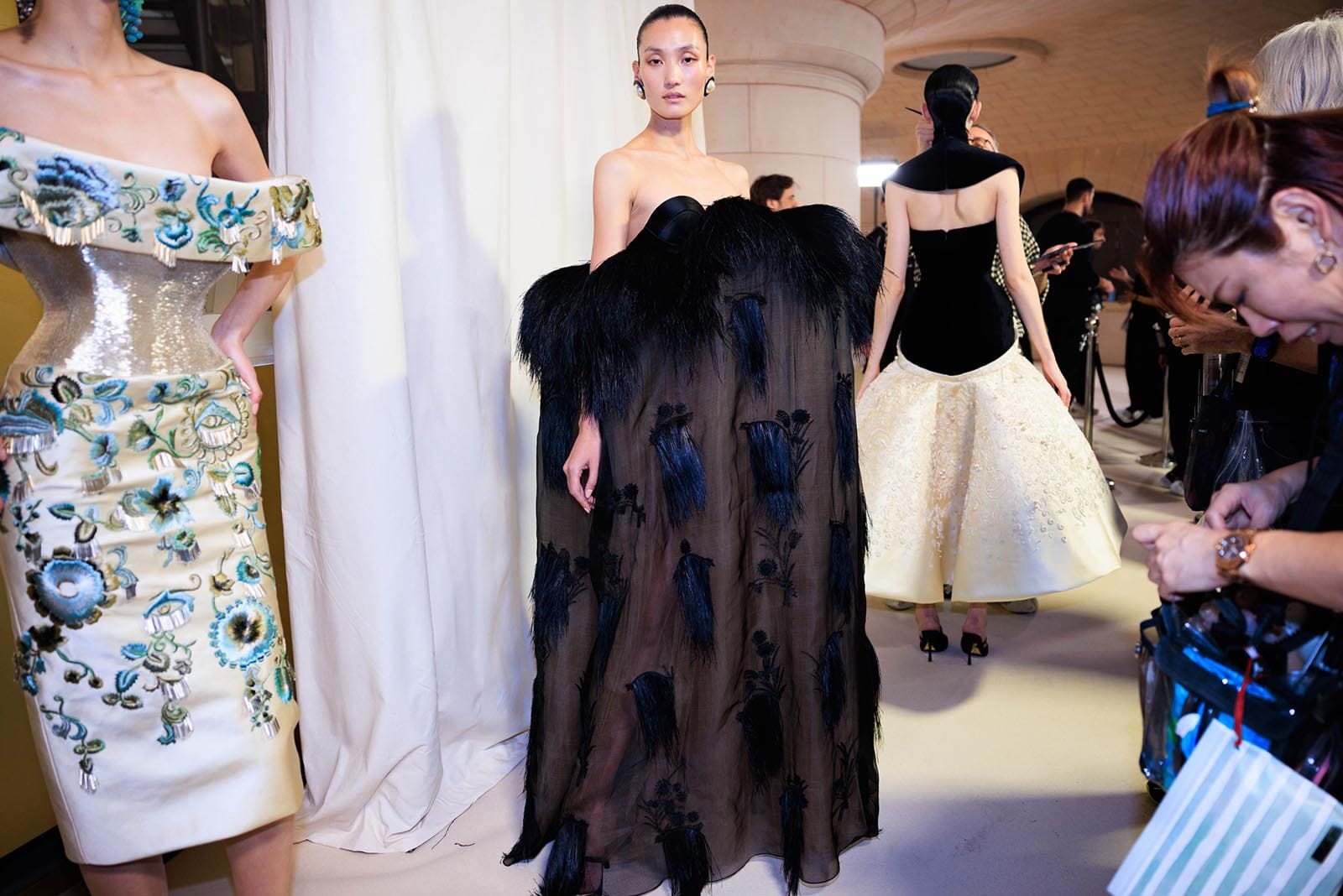 “I think that, to me, it’s always about challenging the expectations of what makes a memorable moment—because we’ve done the break-the-internet thing,” he said. The Icarus story famously doesn’t end well, but it does speak about the drive to take risks, to prove you can outdo yourself. In Roseberry’s mind this season, that meant assigning himself a set of intellectual and technical risks: “I wanted to challenge this idea that to be modern, it must be simple.” His aim: making clothes that have “antiquity and modernity at the same time.”