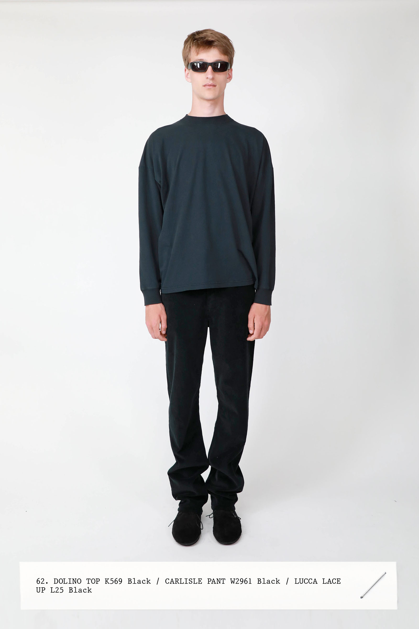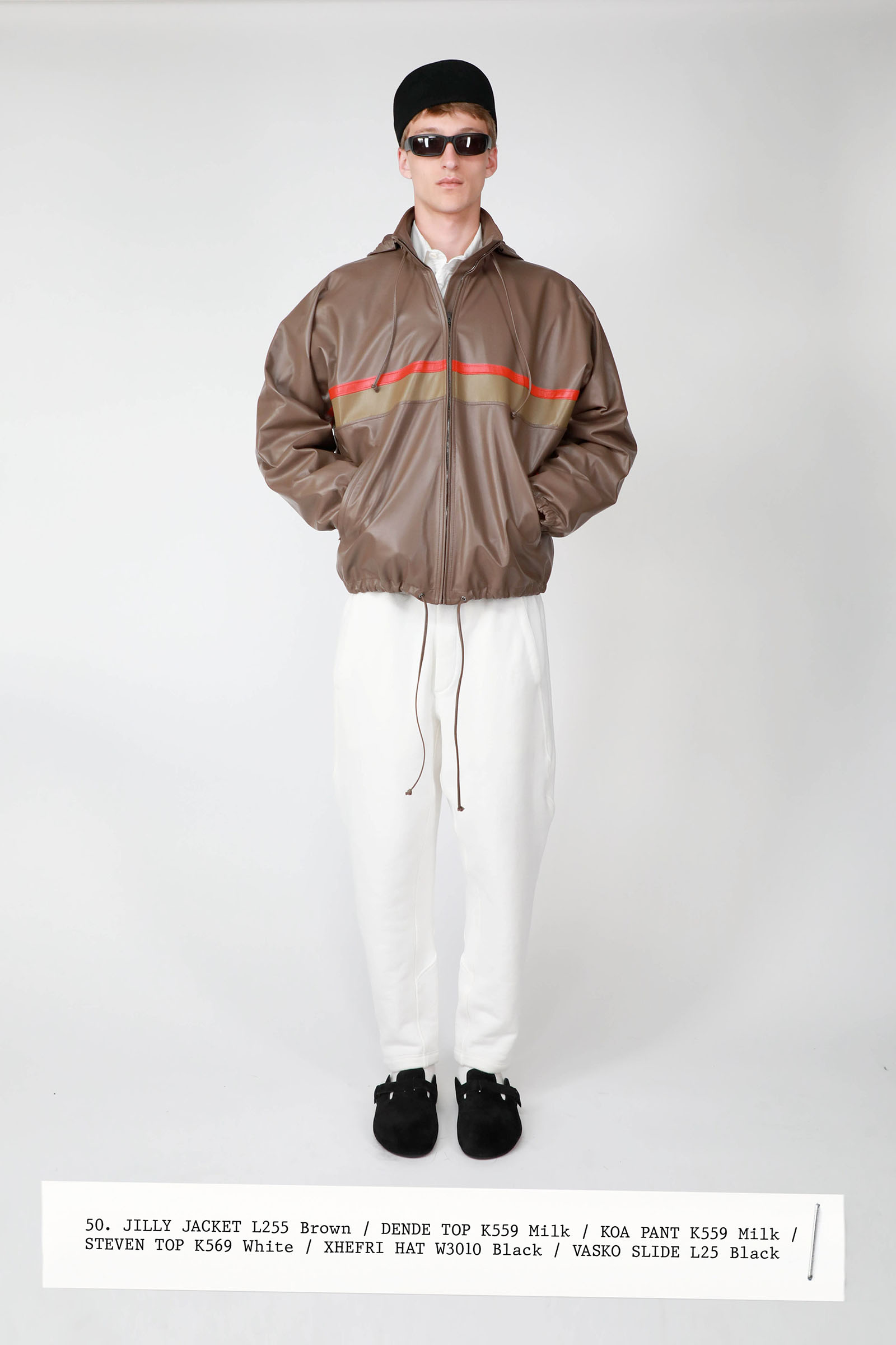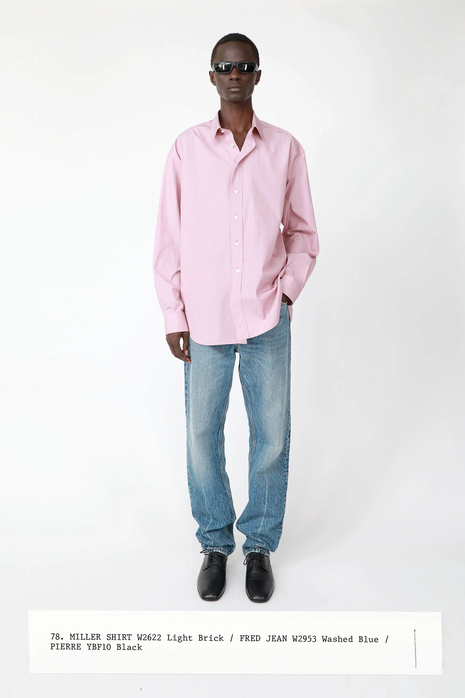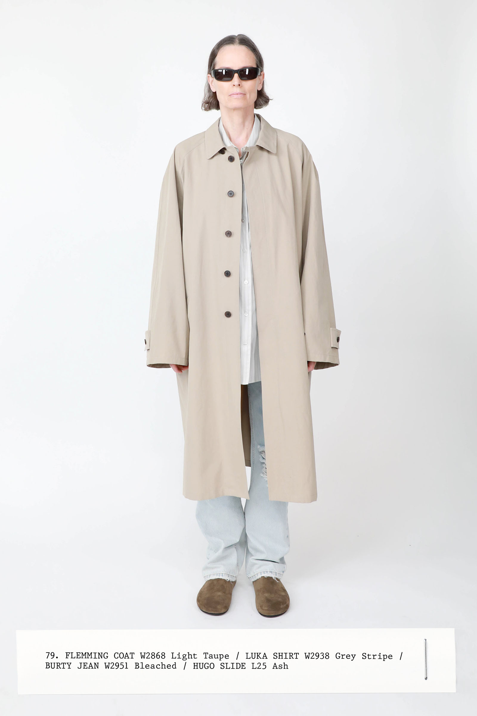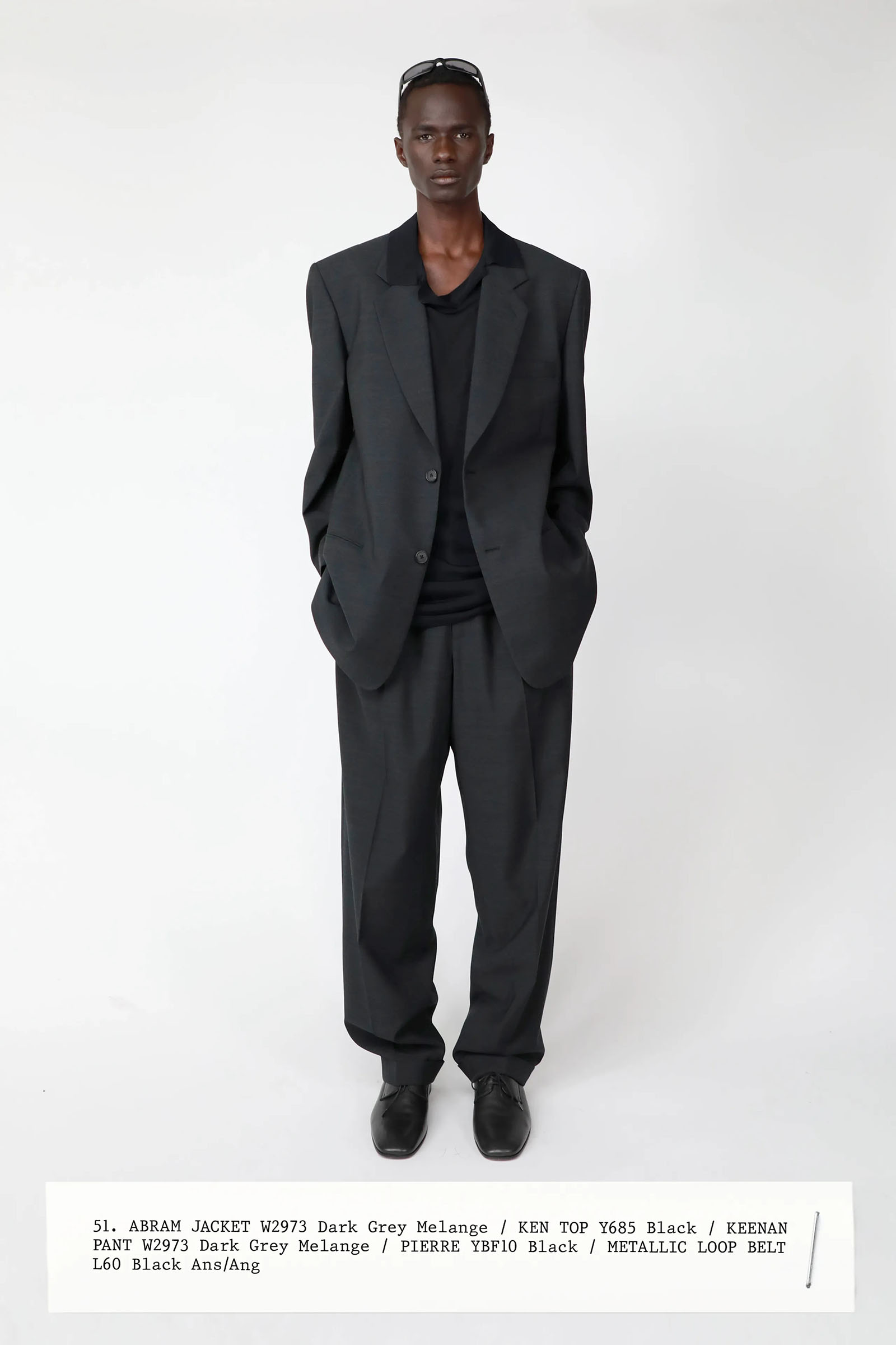 The collection was introduced with an explanation that an expanded range of men’s wear yielded pieces that overlapped with the women’s offer. Can you spot the knee-length, black leather trench that reappears throughout the lineup? The leisure shirts with their retro stripes? The jeans that have been skillfully shredded at the knees, enhancing their desirability? Note, too, how the tailoring that seemed intentionally boxy and generous on a female frame is as intentionally streamlined on the male counterpart.