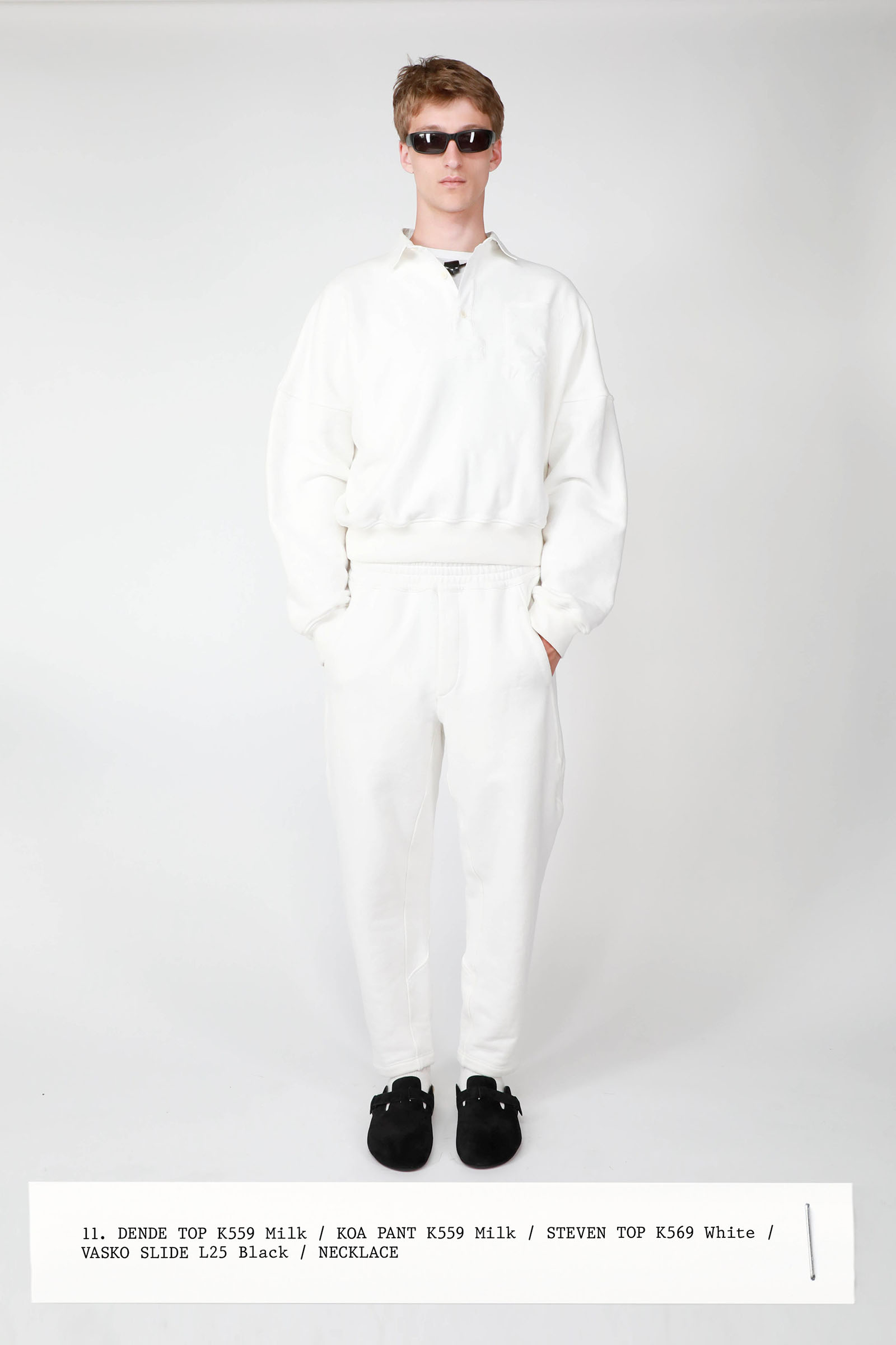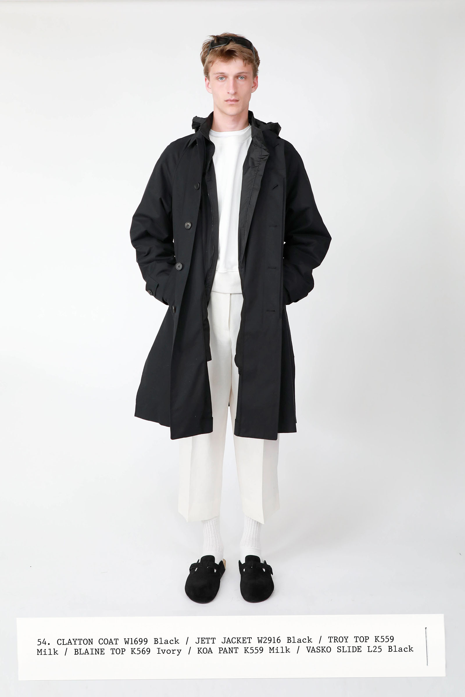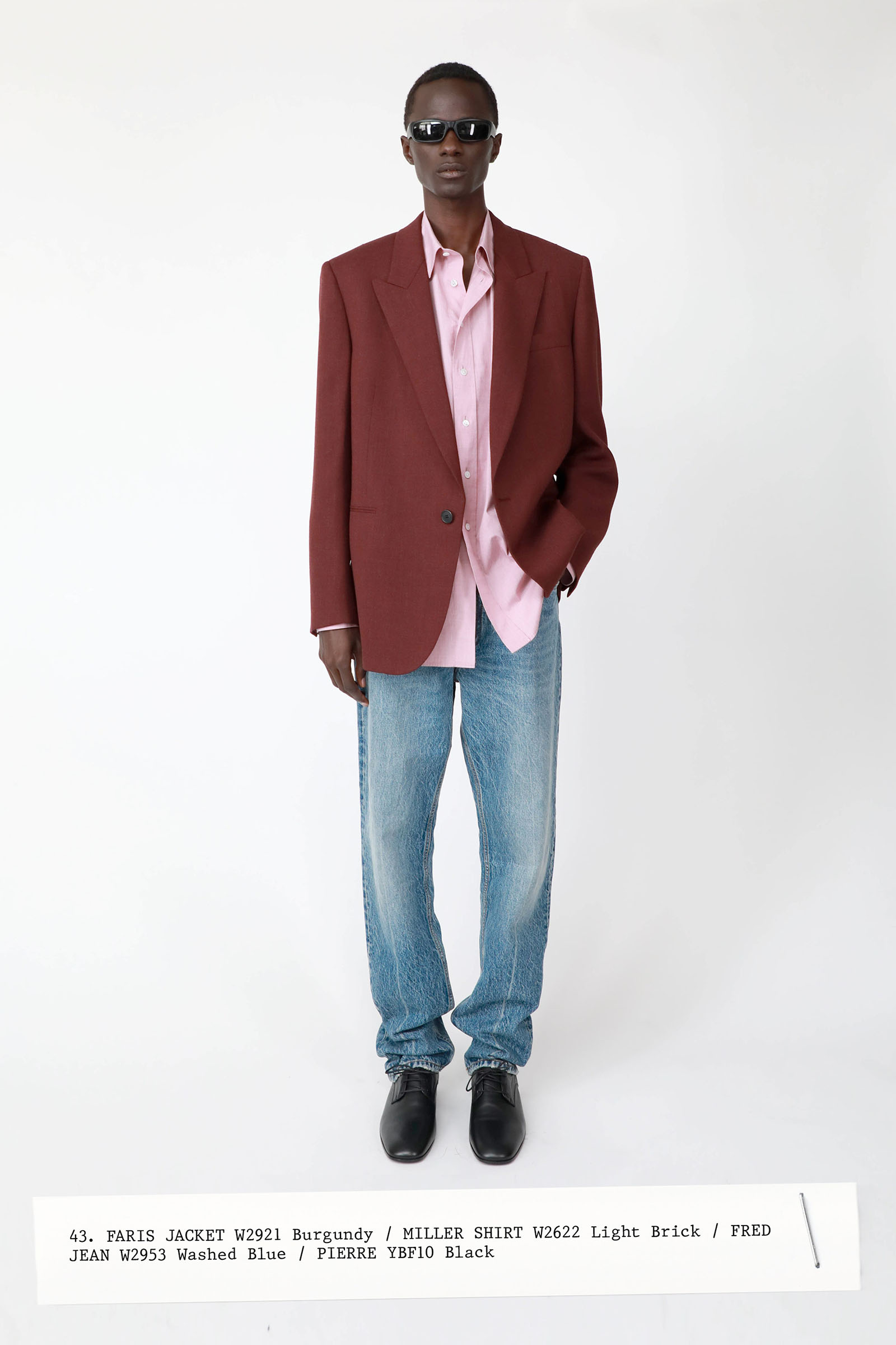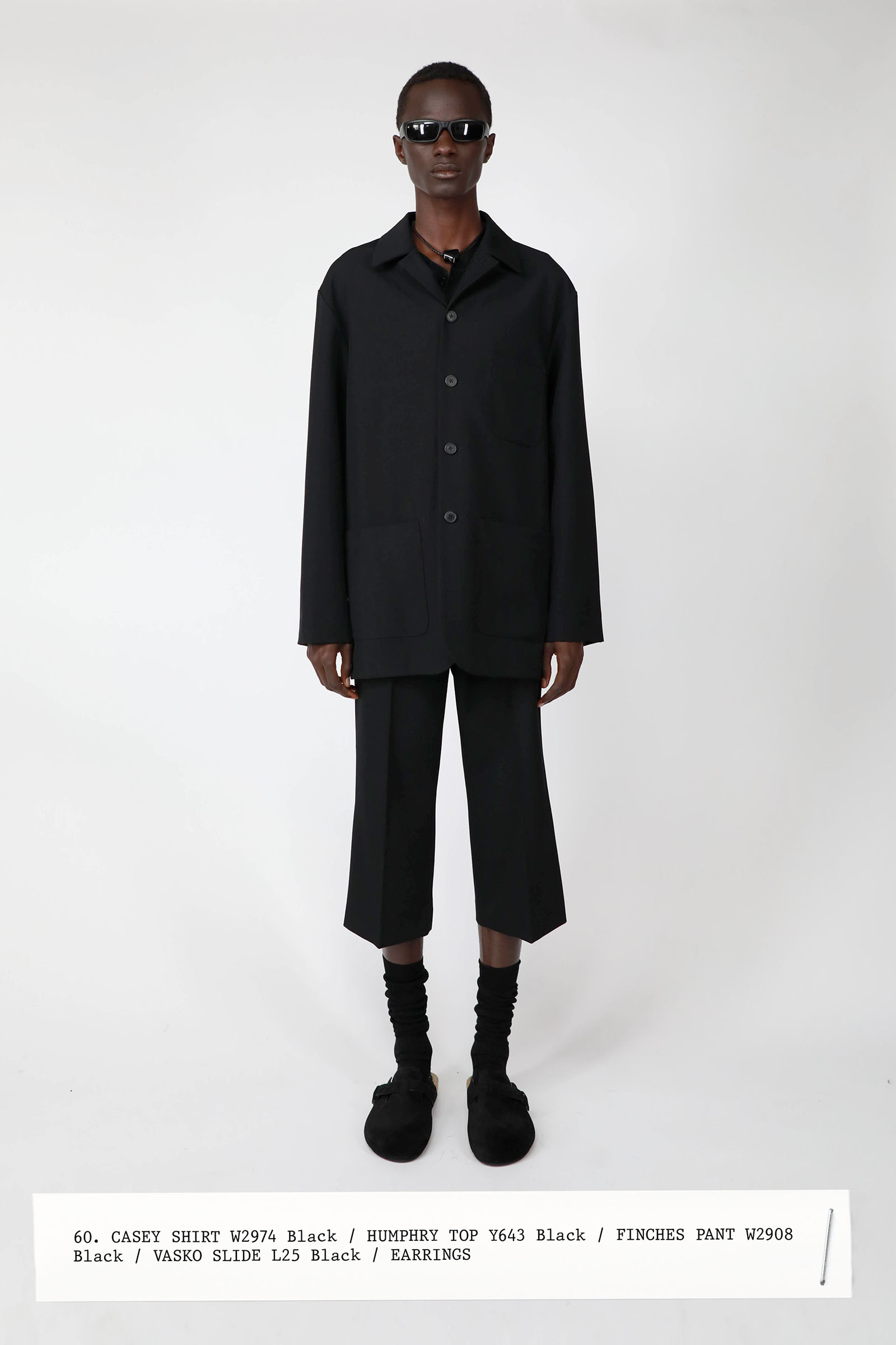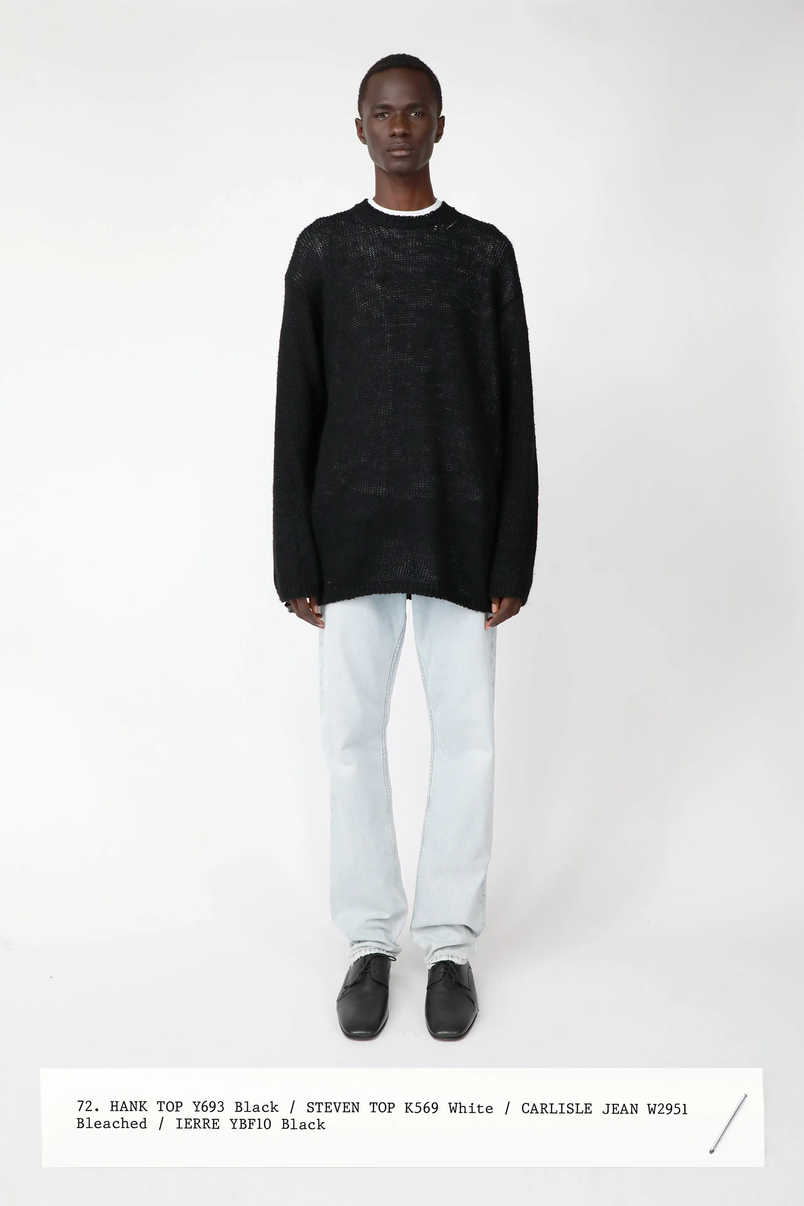 The collection was introduced with an explanation that an expanded range of men’s wear yielded pieces that overlapped with the women’s offer. Can you spot the knee-length, black leather trench that reappears throughout the lineup? The leisure shirts with their retro stripes? The jeans that have been skillfully shredded at the knees, enhancing their desirability? Note, too, how the tailoring that seemed intentionally boxy and generous on a female frame is as intentionally streamlined on the male counterpart.