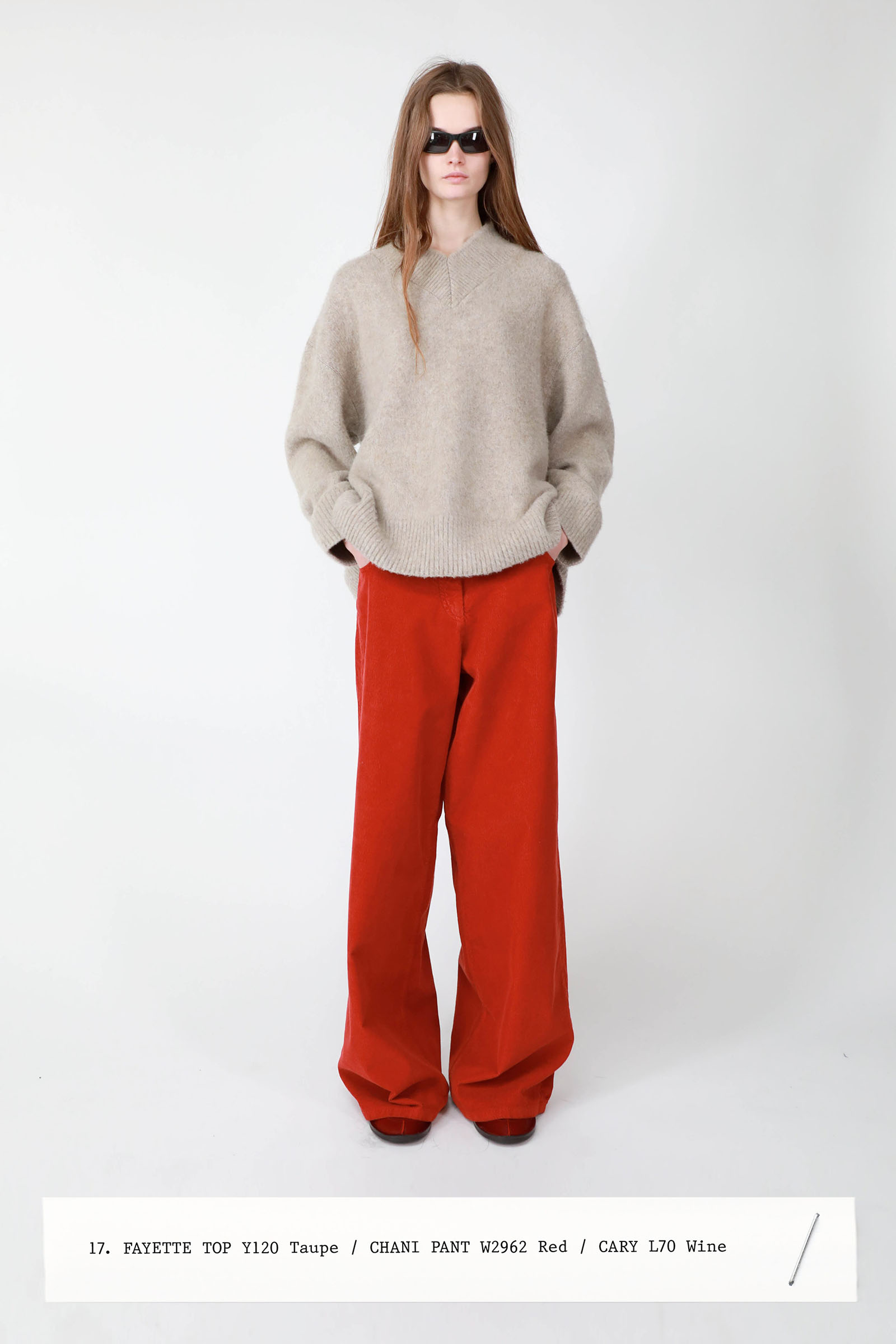 Although Mary-Kate and Ashley Olsen were absent, their presence was felt across the spectrum of this covetable wardrobe: laid-back layering; intellectual silhouettes; and lived-in looks that might be as basic as a button-front shirt and chinos. For every item in a dressier register—see the hand-embroidered slip dress worn over a gray T-shirt, or the pumps with higher heels—the collection suggested a casual confidence. The lineup was also particularly palette-diverse, as primary hues alternated with pastels—see the bold red high-neck dress and pale pink cashmere polo.