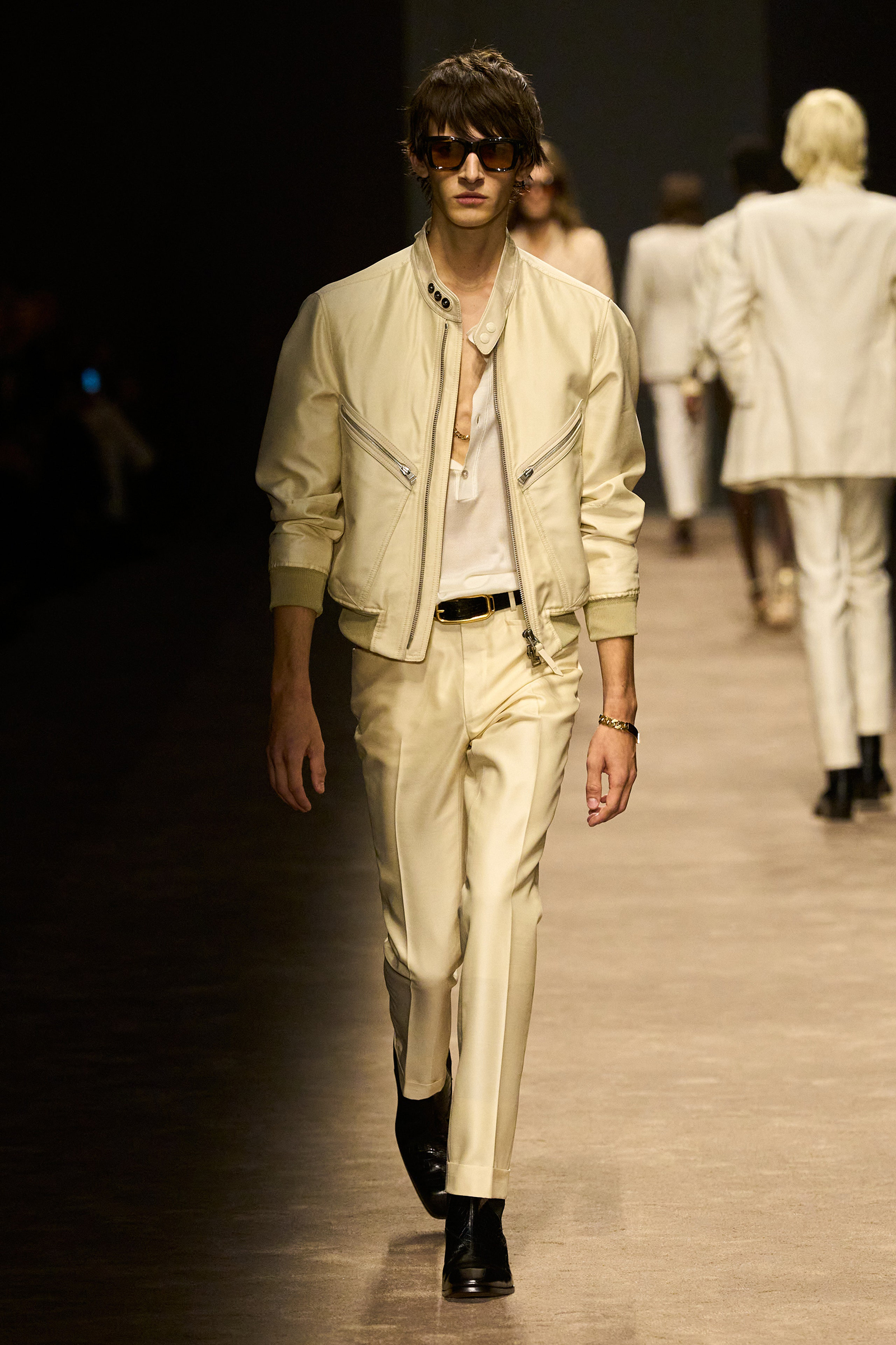 The one thing missing at this Tom Ford show was Tom Ford himself. He’d been scheduled to attend, but couldn’t make it out of London, apparently due to bad weather. Hawkings had heard from him earlier in the day. “Tom’s been an absolute amazing support to me here,” he said. “He told me, ‘your attention to detail is fantastic, and I’m sure it’s gonna be super glamorous.’” On both counts, Ford was right.