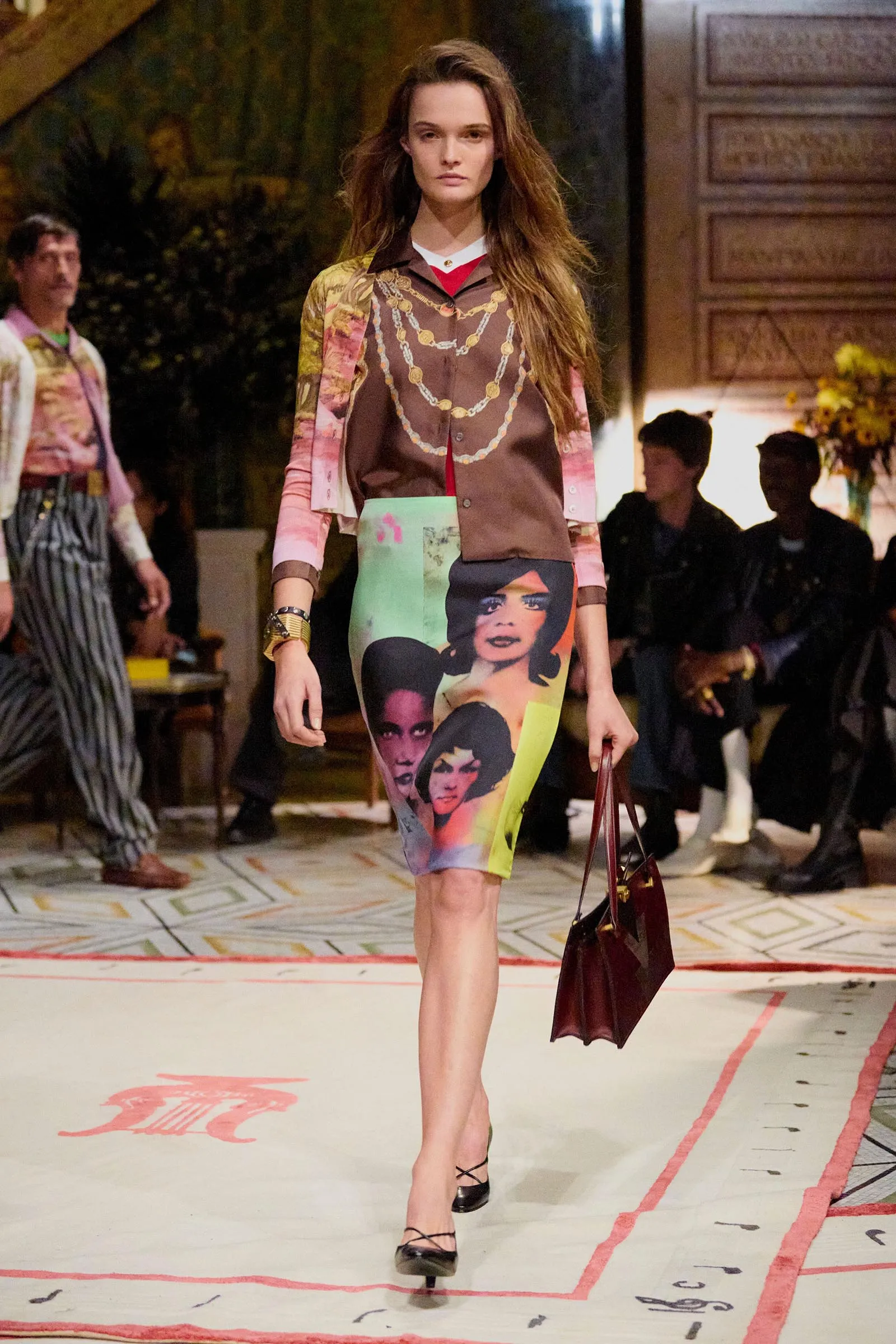 His idea was to look back at Gianni’s late-’80s designs. Vitale’s mother was a serious collector of the designer’s clothes at the time, though this won’t strike anyone as a mum’s wardrobe, save for some excellent era-appropriate pumps and lady bags. Yes, the cast included models of multiple generations, but the clothes seemed to be skewed squarely at Vitale’s own millennial brethren, with their taste for vintage and penchant for layering. Plus anybody else older or younger and firm of body—that part is important.