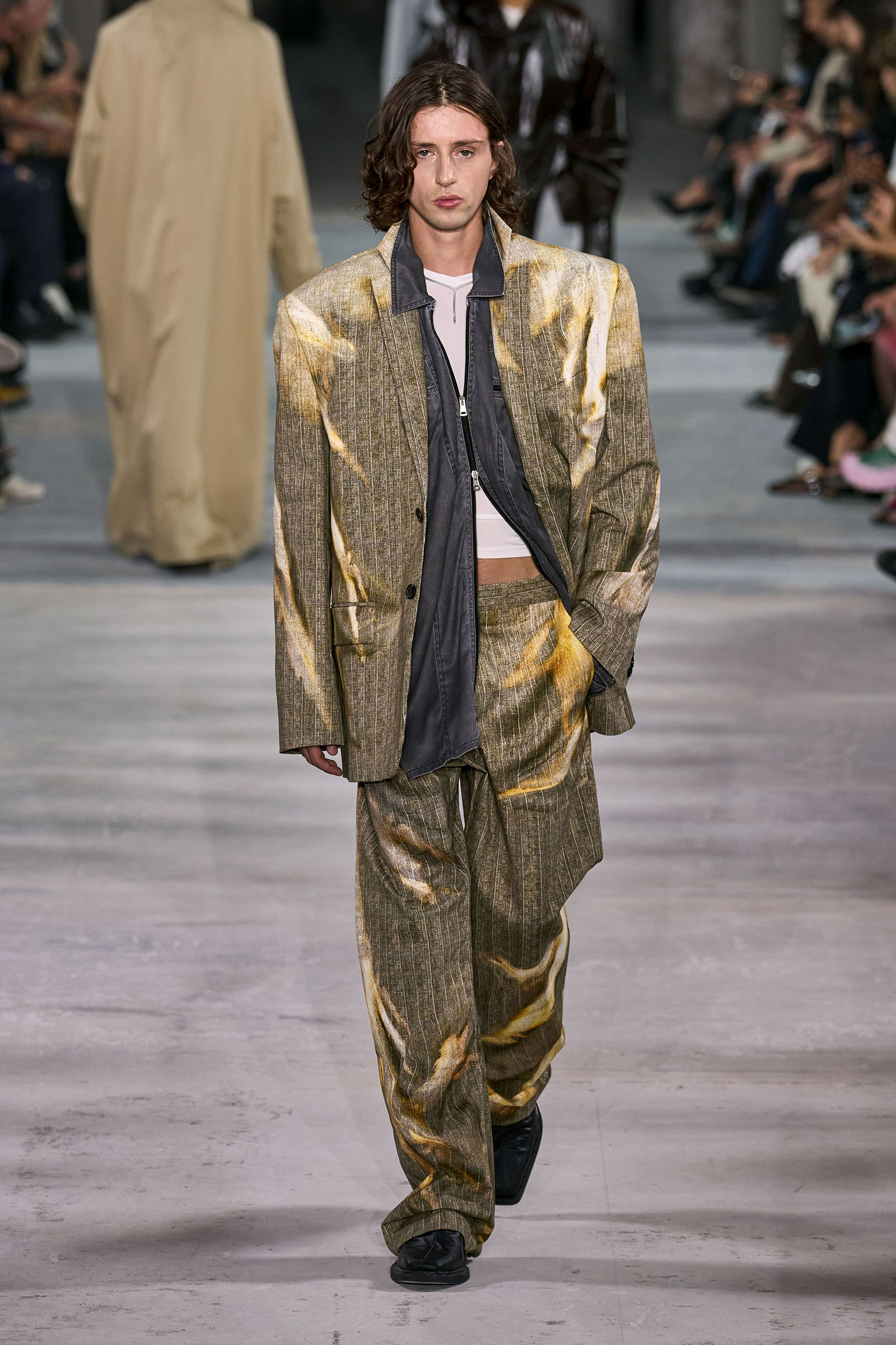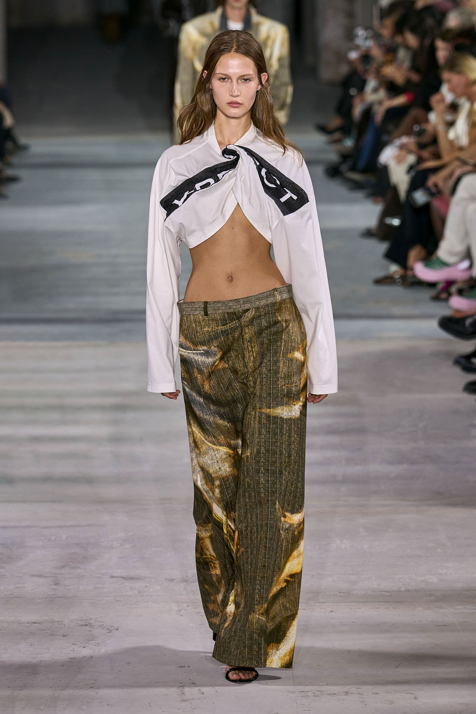 Glenn Martens is part of an exclusive group of designers whose work resonates most with Gen Z. Seven thousand people turned up at his Diesel runway rave in Milan, and stayed despite the rain. It’s no surprise his name tends to be among the first mentioned when a new creative director position opens up. Those whispers are only going to get louder after this season’s standing room only show.