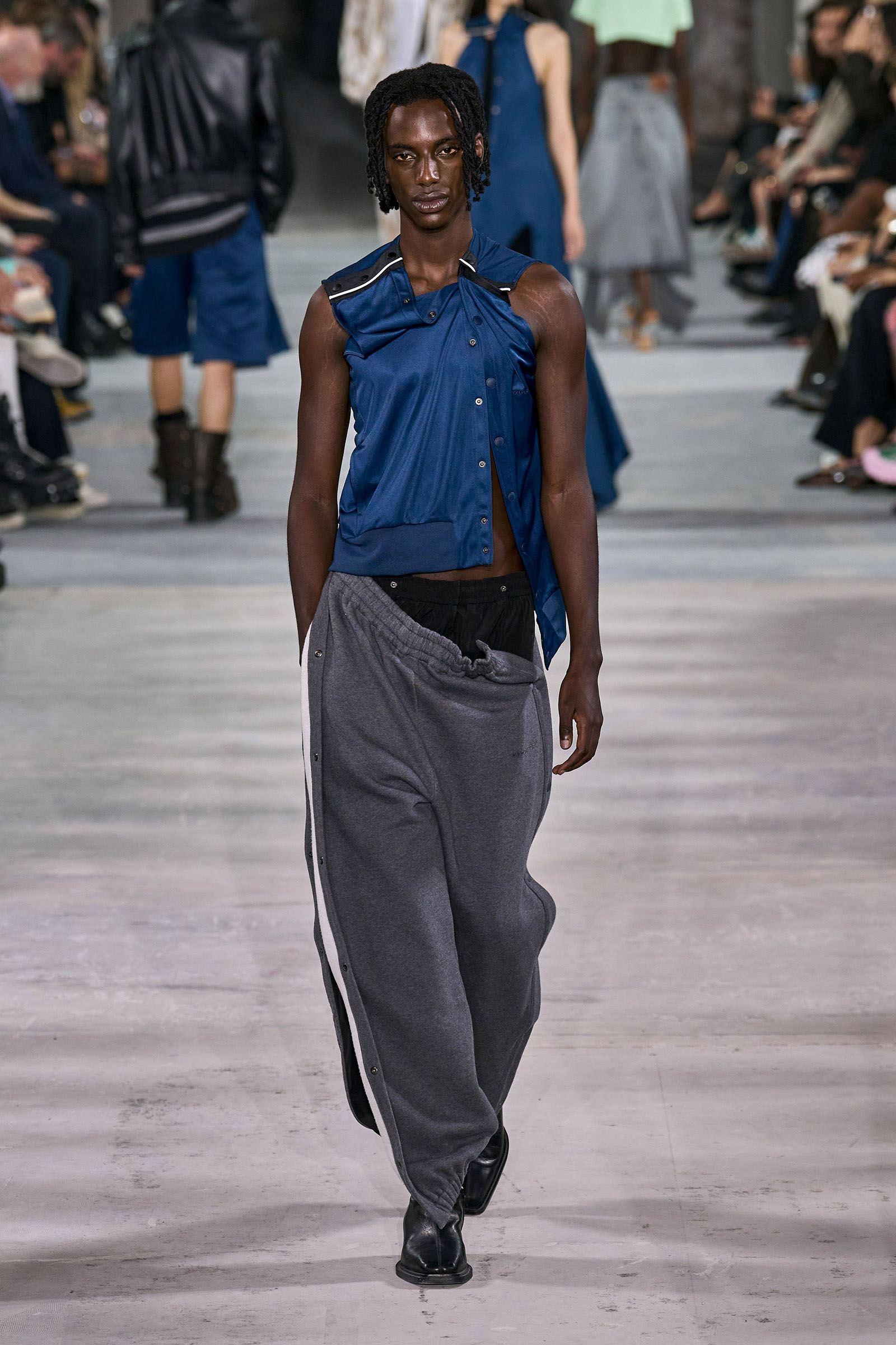 At some shows in Paris, the throngs of fashion kids outside are so thick, there’s not one, but two security checkpoints. At Y/Project tonight, many stylish young people seemed to make it past the guards and the PRs and find their way into the venue.