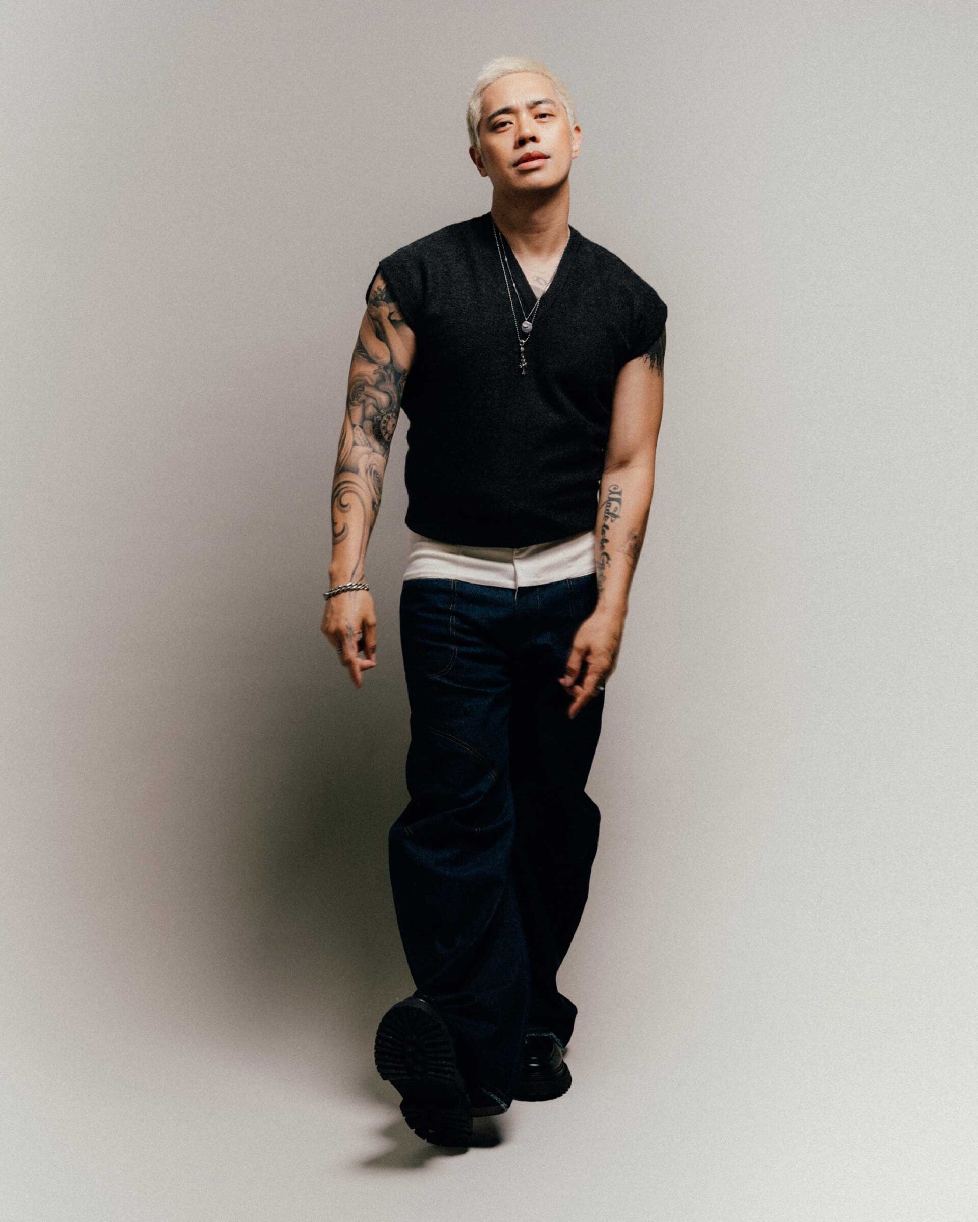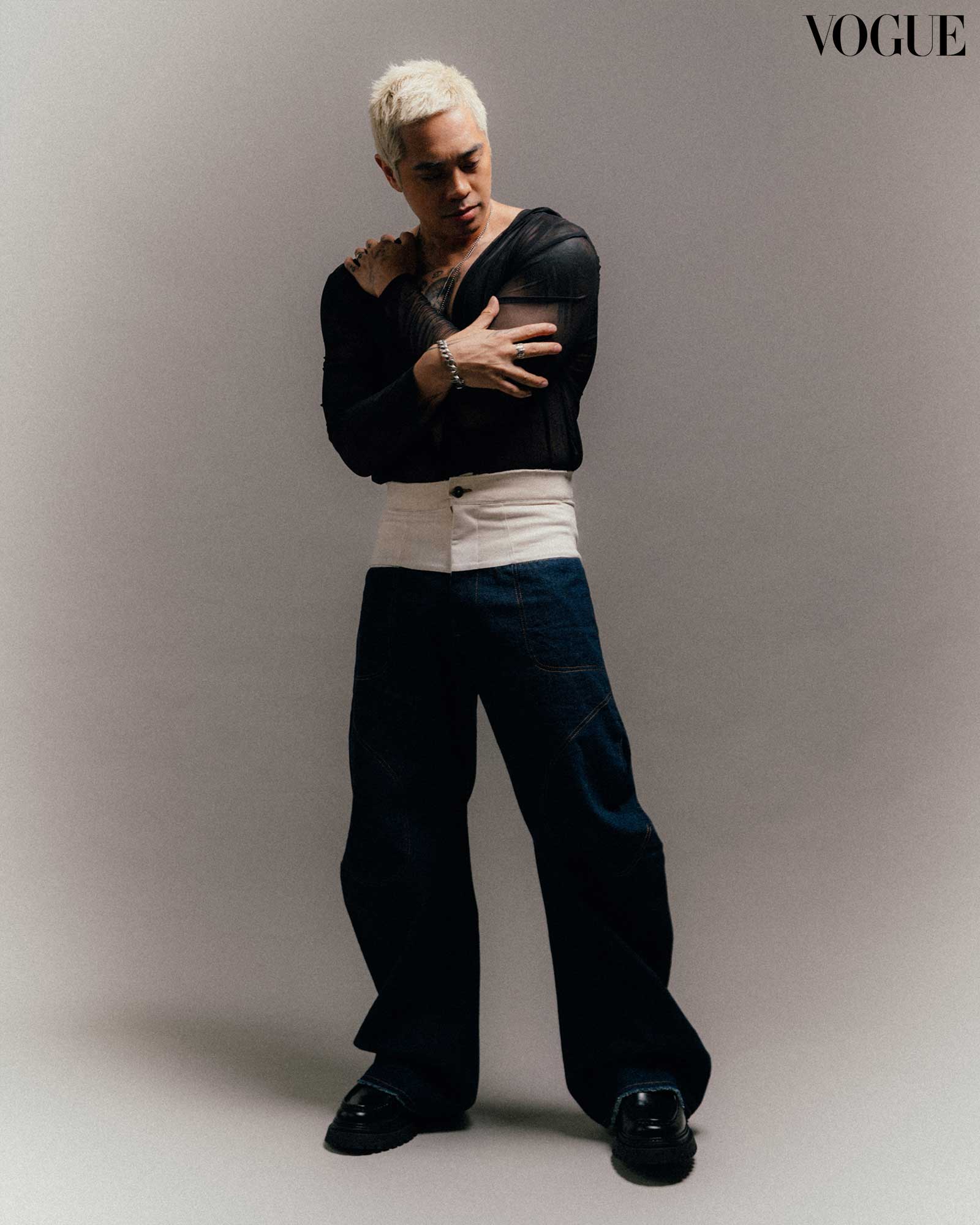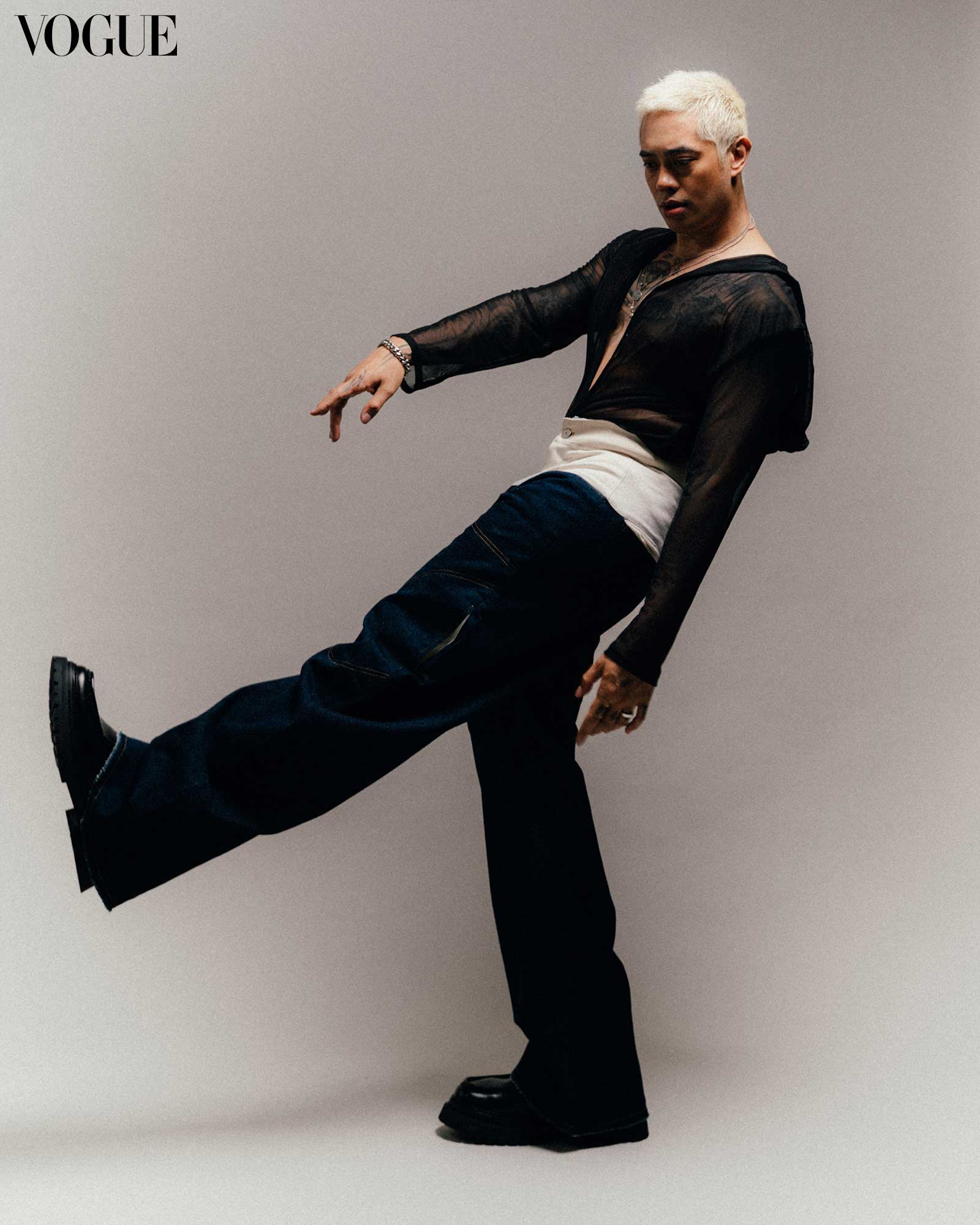 The excitement bubbles to the surface when Brian Puspos walks into the studio. He’s recognizable to some members of the Vogue Philippines team who grew up watching him on YouTube in the 2010s, his dances inspiring various dance competitions, TV productions, and even family gathering performances. Between layouts, Brian is just your average kuya: he maintains a relaxed demeanor, chatting about watching anime in his downtime, navigating career changes as a choreographer-turned-musician, and representing his Filipino culture and heritage.