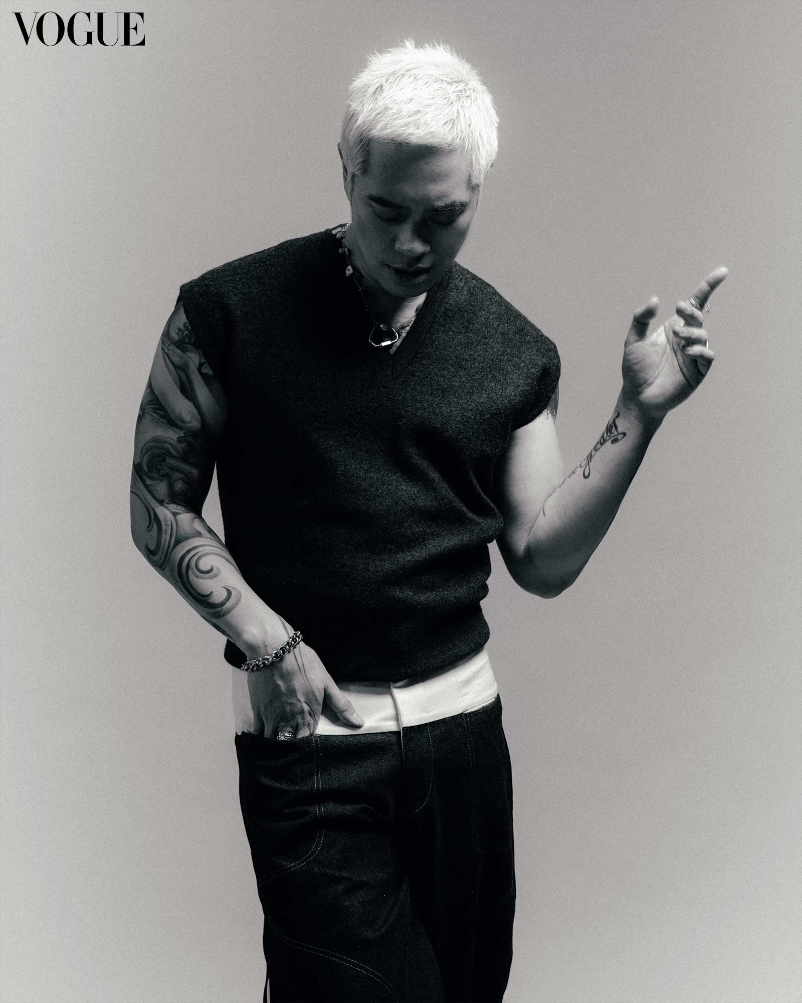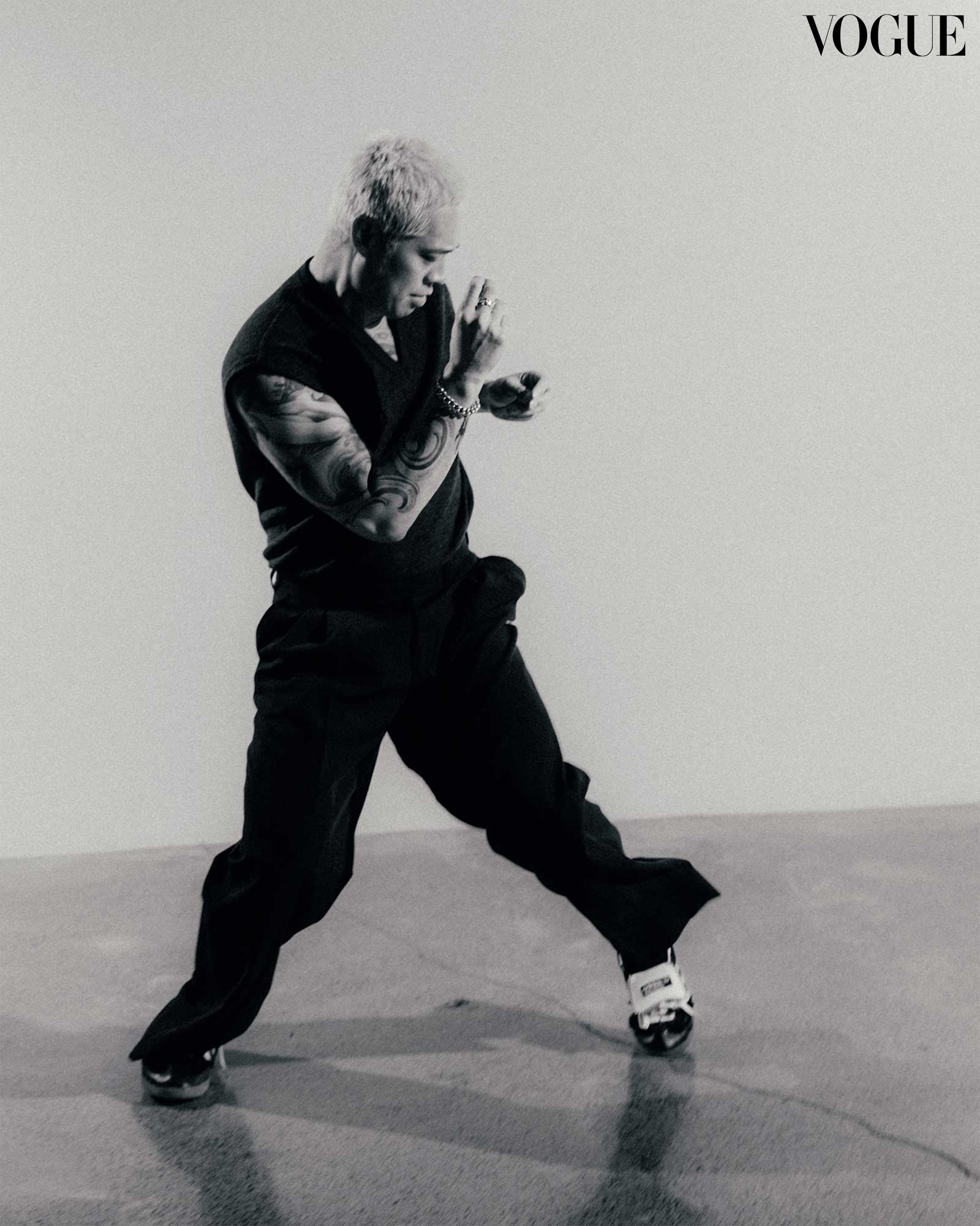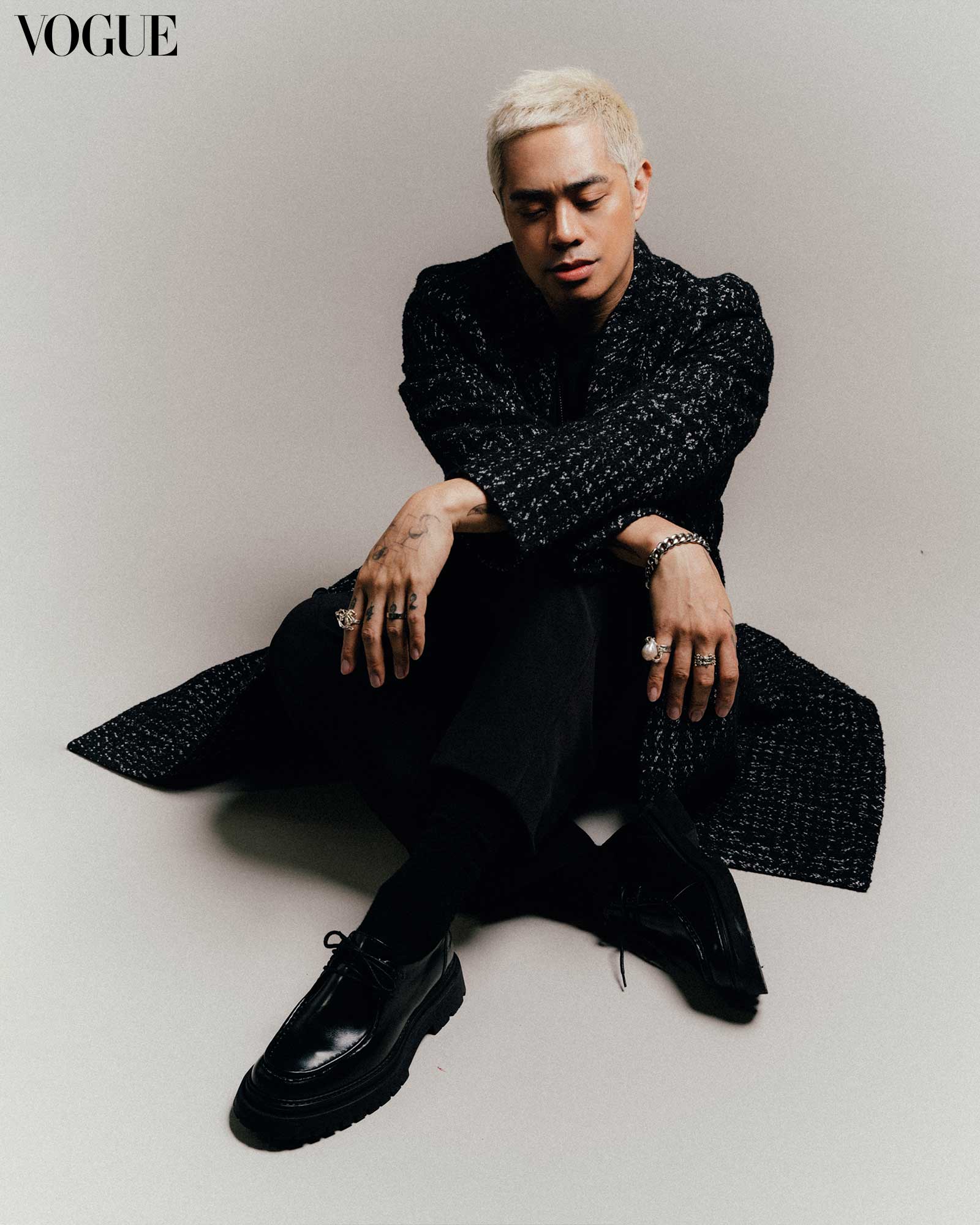 The excitement bubbles to the surface when Brian Puspos walks into the studio. He’s recognizable to some members of the Vogue Philippines team who grew up watching him on YouTube in the 2010s, his dances inspiring various dance competitions, TV productions, and even family gathering performances. Between layouts, Brian is just your average kuya: he maintains a relaxed demeanor, chatting about watching anime in his downtime, navigating career changes as a choreographer-turned-musician, and representing his Filipino culture and heritage.