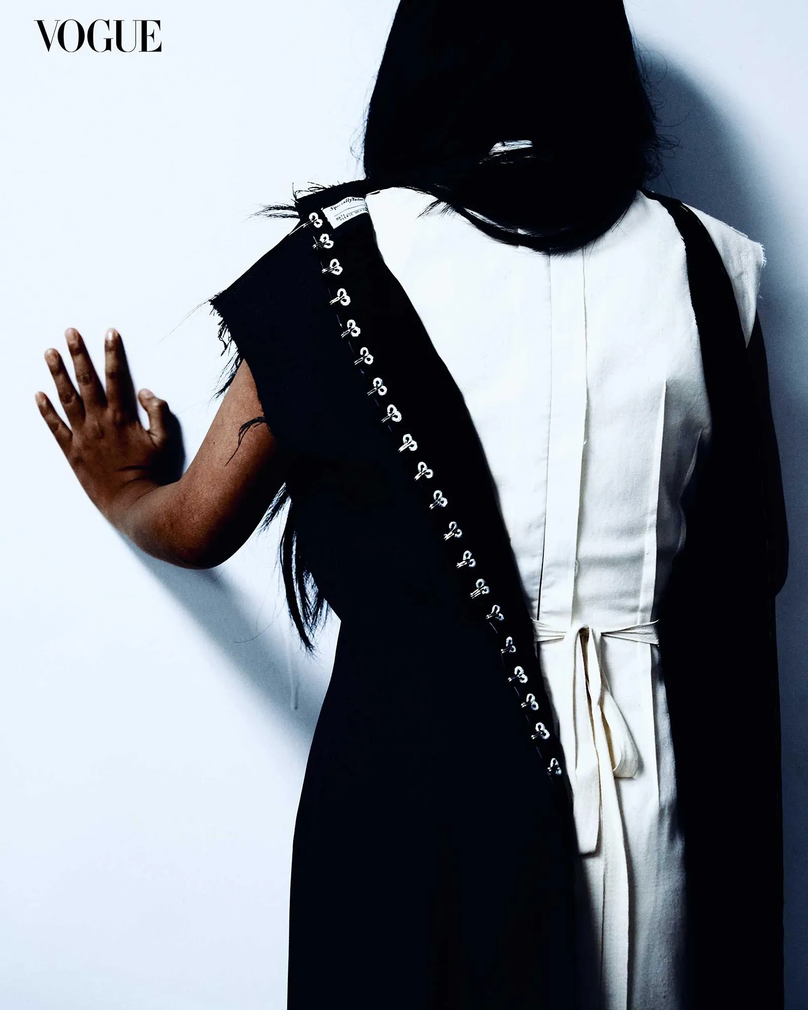 KARL NADALES dress and jacket. Photographed by Colin Dancel