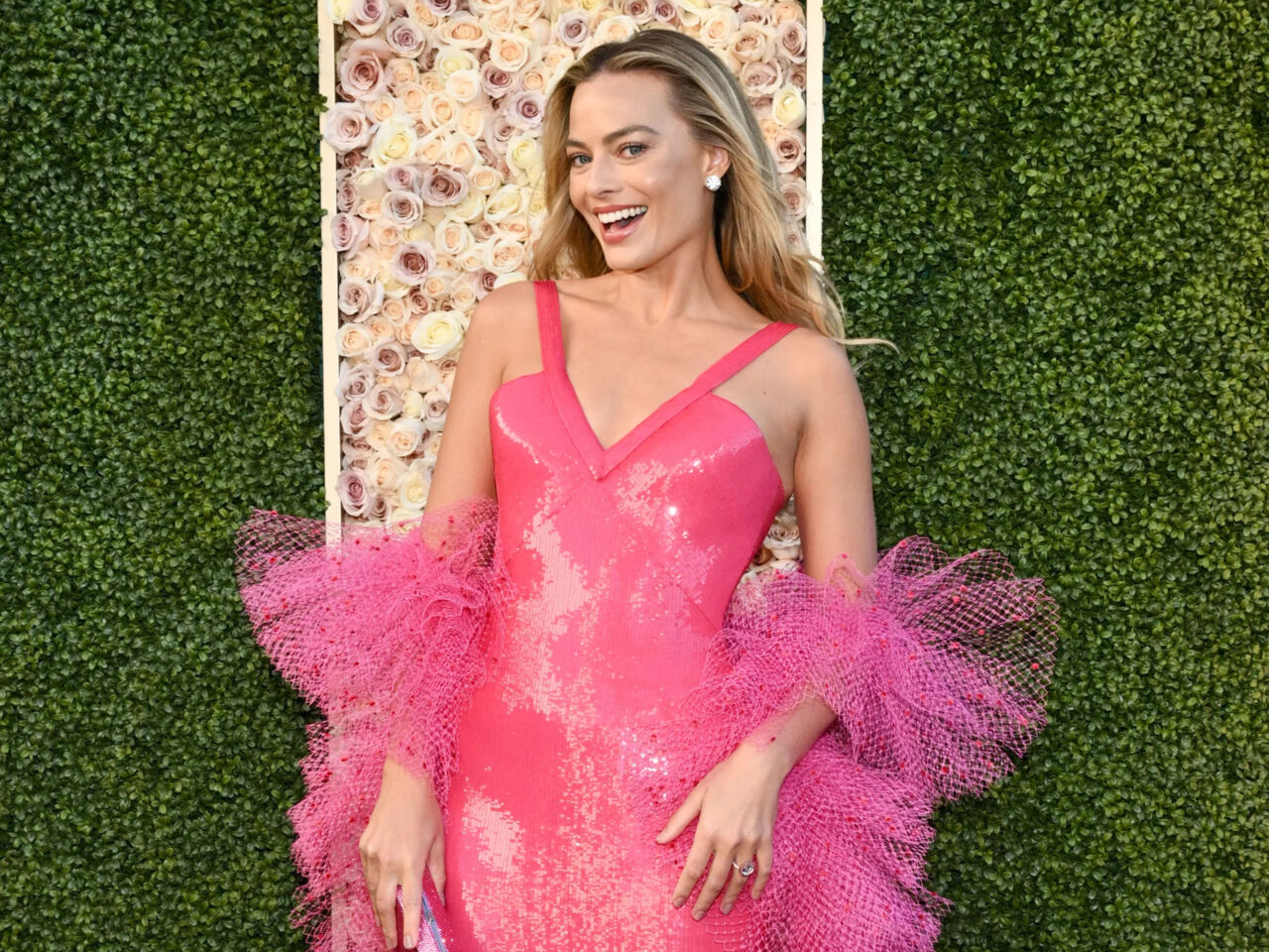 Margot Robbie Returns to Barbieland in Armani Privé at the 2024 Golden Globes