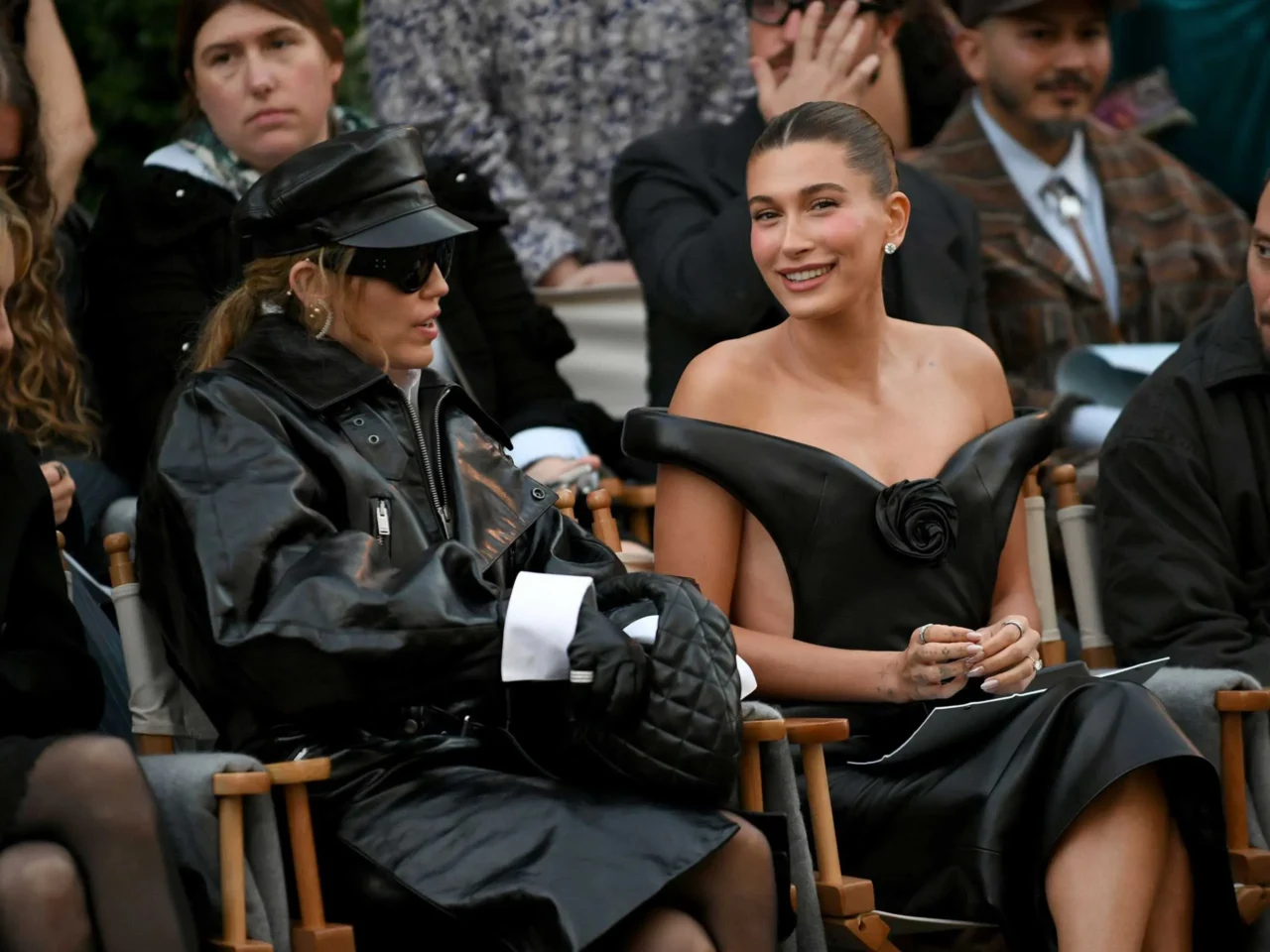 Hailey Bieber and Miley Cyrus Sit Front Row—in Matching Black Leather—at Vogue World 2025