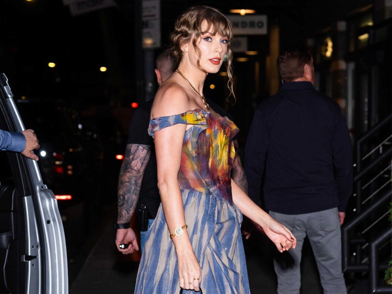 Taylor Swift Steps Out for Dinner With Zoë Kravitz in a Fiery Vivienne Westwood Dress