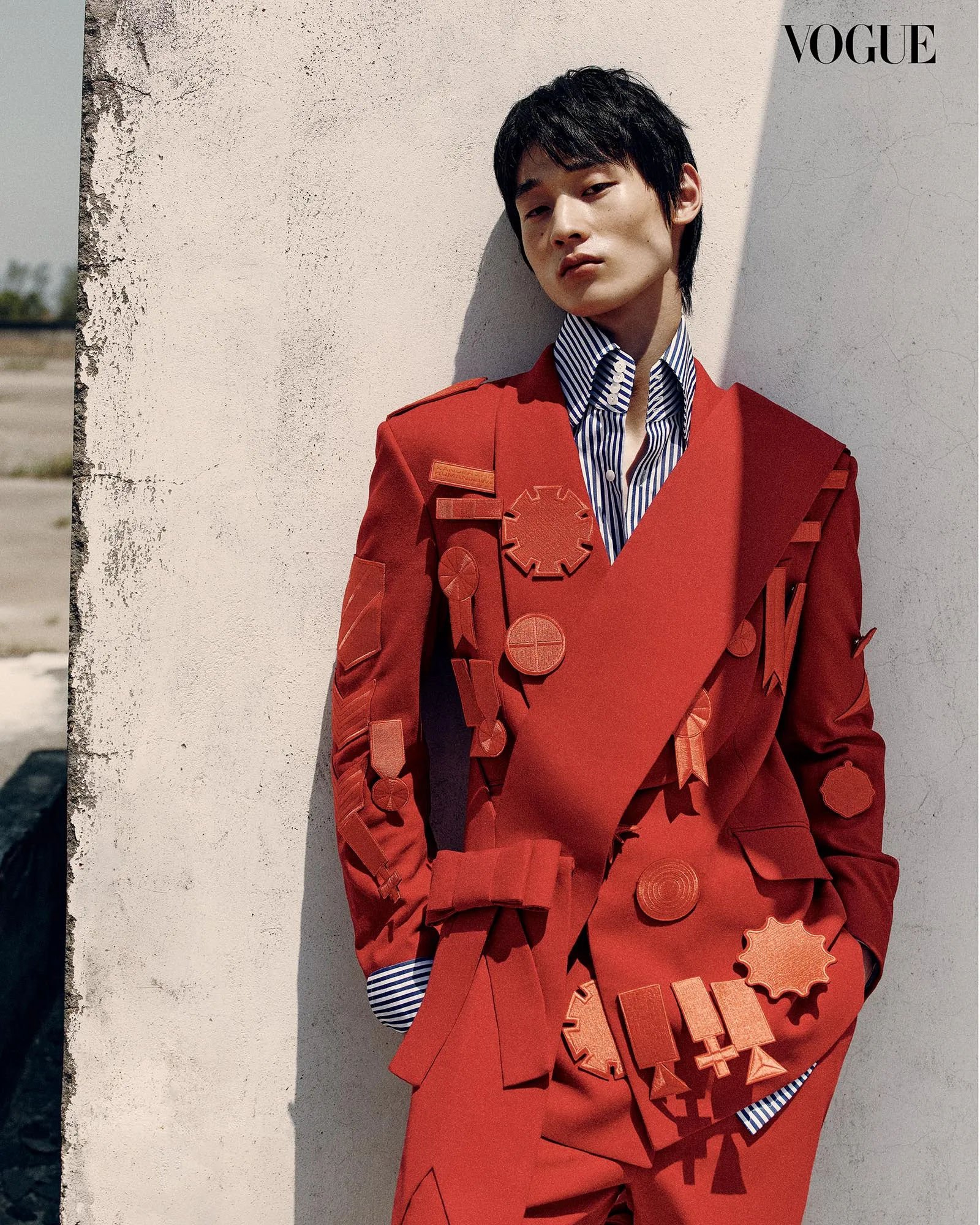 XANDER ZHOU shirt, jacket, and trousers. Photographed by Als Sunxiaoran for the September 2025 Issue of Vogue Philippines