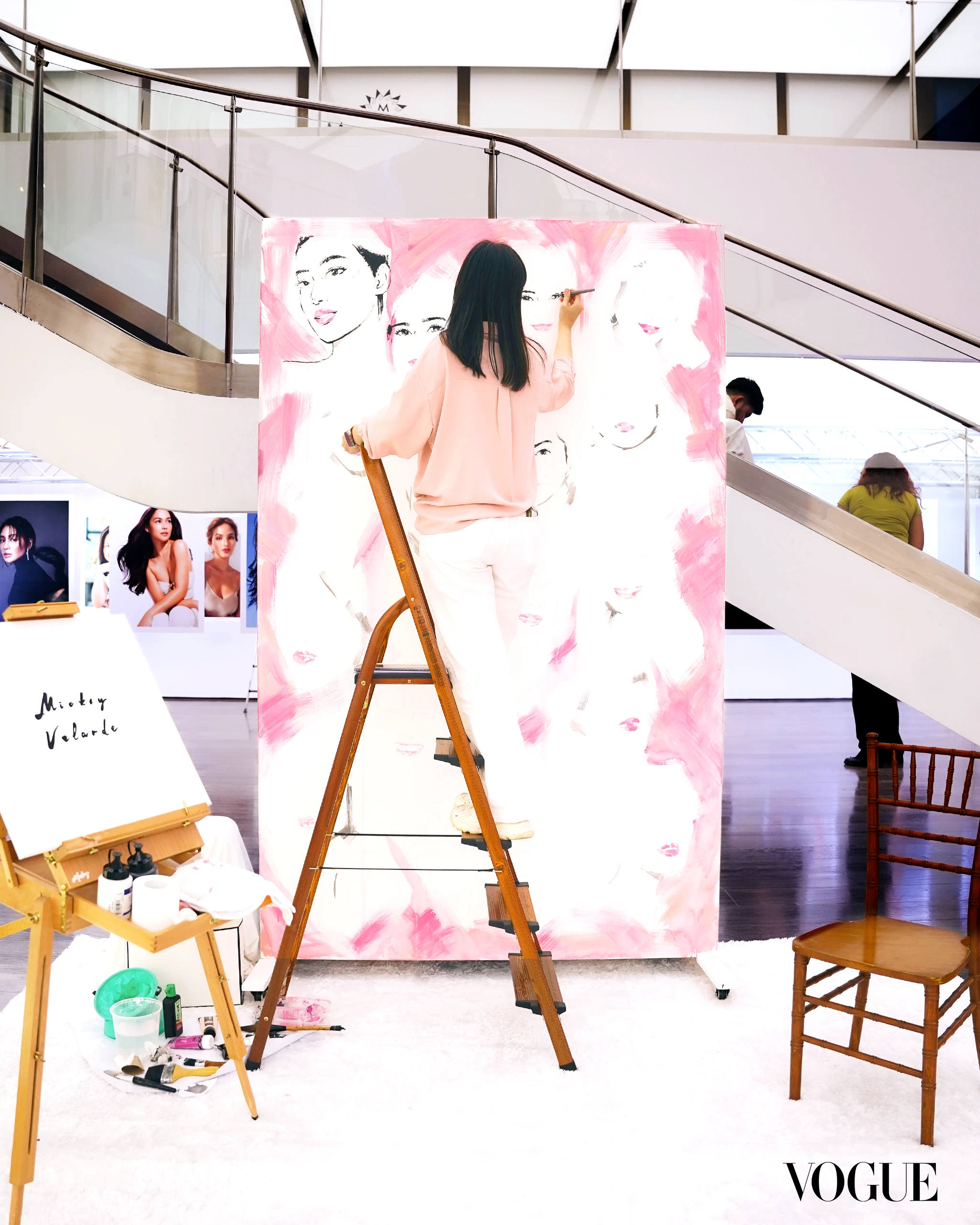The staircase was decked in pink, leading to spaces where paintings from the museum’s current exhibitions are seen. Just beside it, a live painting session by artist Mickey Velarde reveals a canvas featuring all 16 Aivee brand ambassadors and a tribute to transformation.