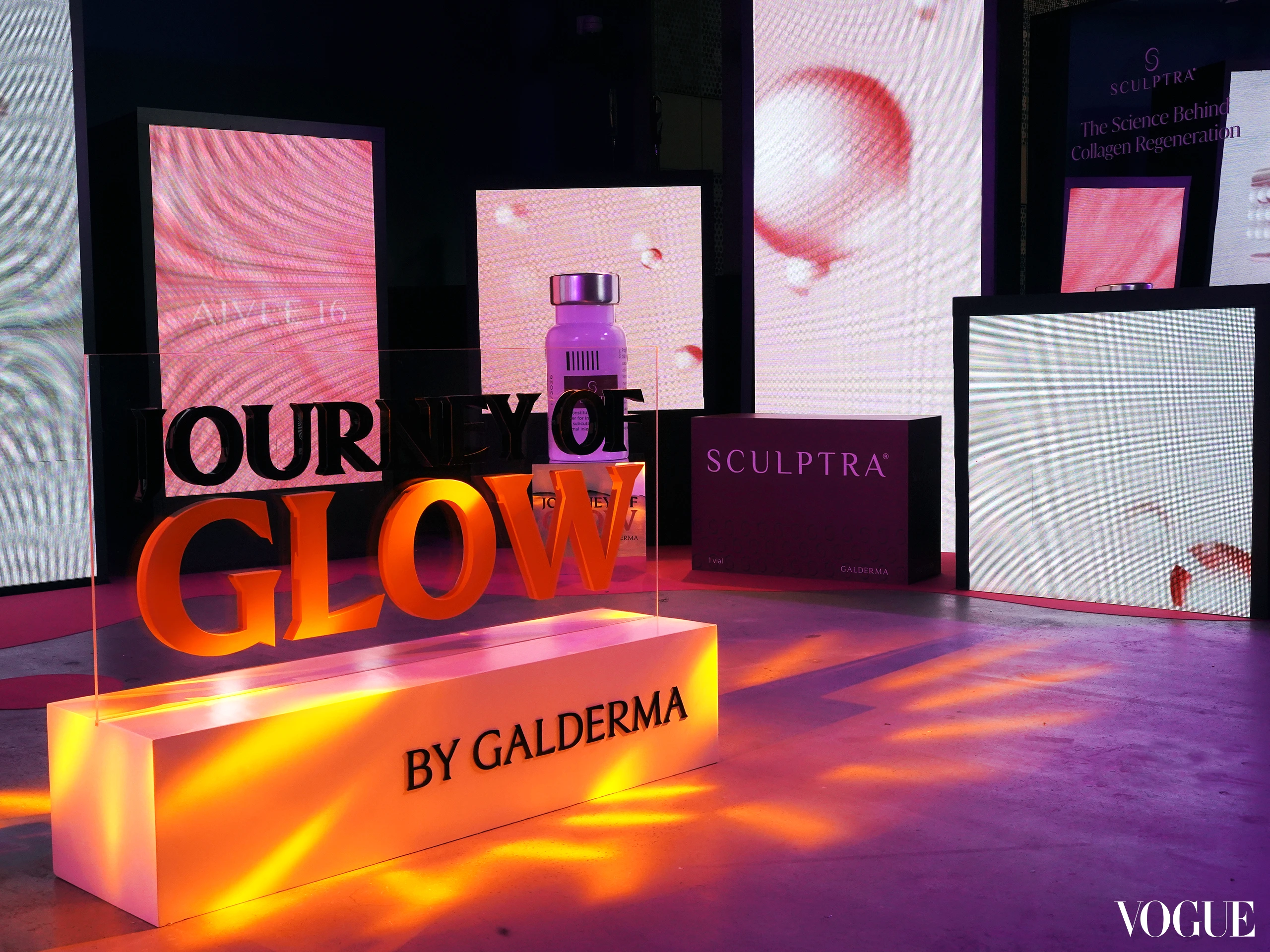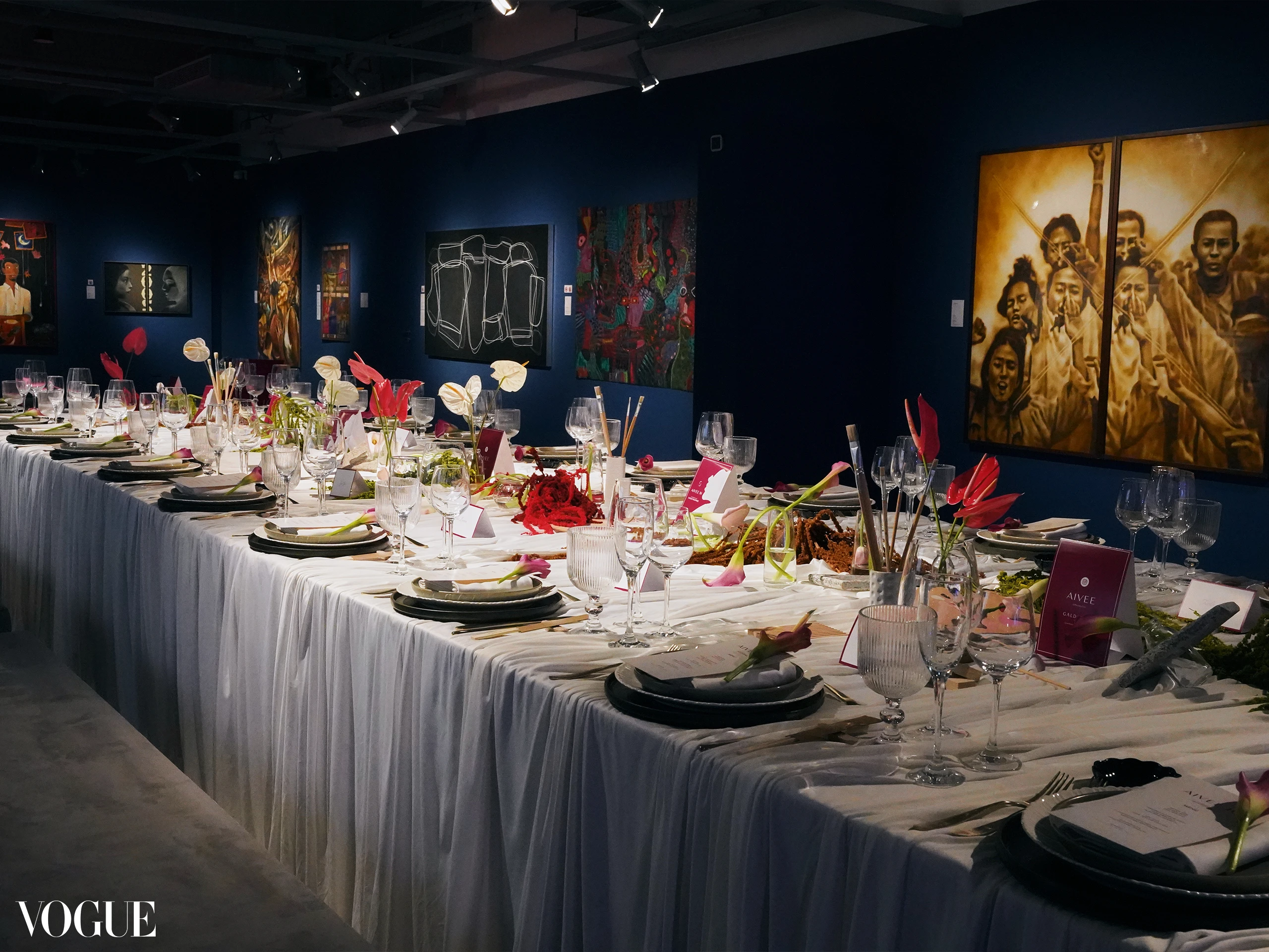Inside the banquet hall, The Journey of Glow by Galderma exhibit highlighted the science behind skin regeneration. The pharmaceutical brand says that it’s a reminder of how innovation continues to drive Aivee Clinic’s philosophy. Even the dinner table carried the theme forward: draped in soft linens, topped with paintbrushes, palettes, and anthurium accents.