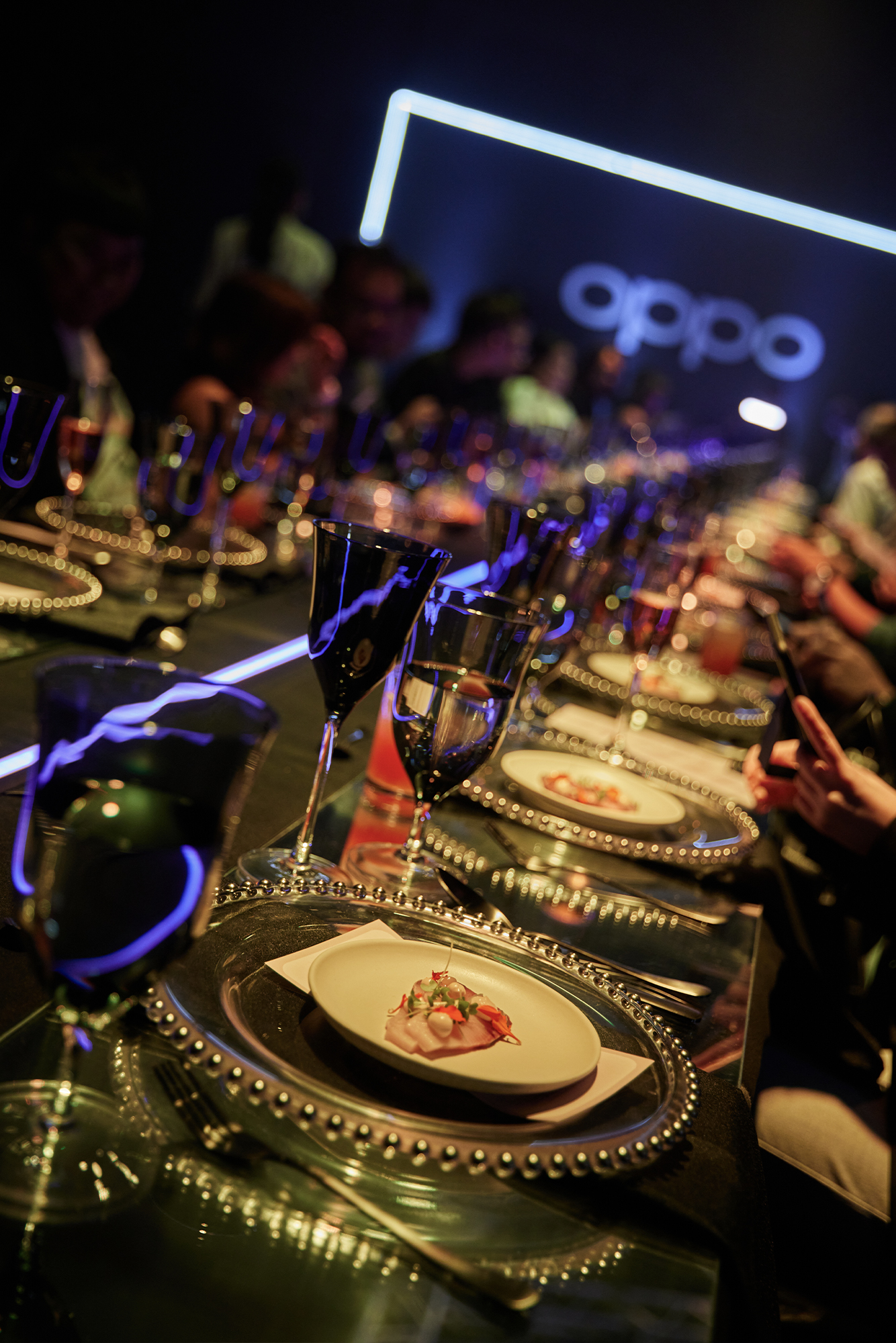 With the third dish, he says that they aimed for it to be thought-provoking. “With the 72-hour short rib paired with yuca and sambal, we wanted something that challenges the conception of the taste buds and the eyes,” Boutwood says. “It represents the innovation that OPPO has put into this phone.”