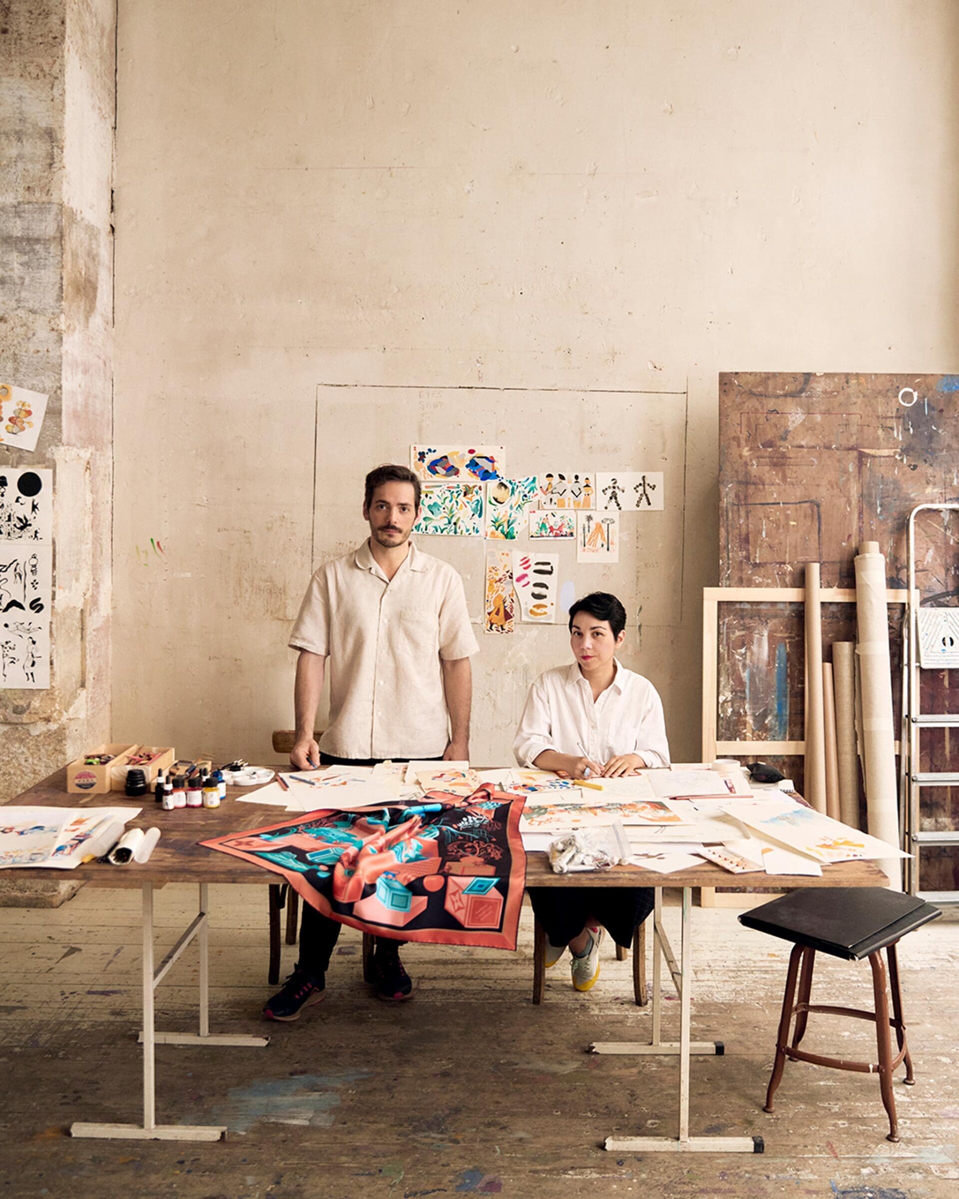 Illustrators and digital artists came together to create their unique interpretations of the French house’s emblem onto silk scarves