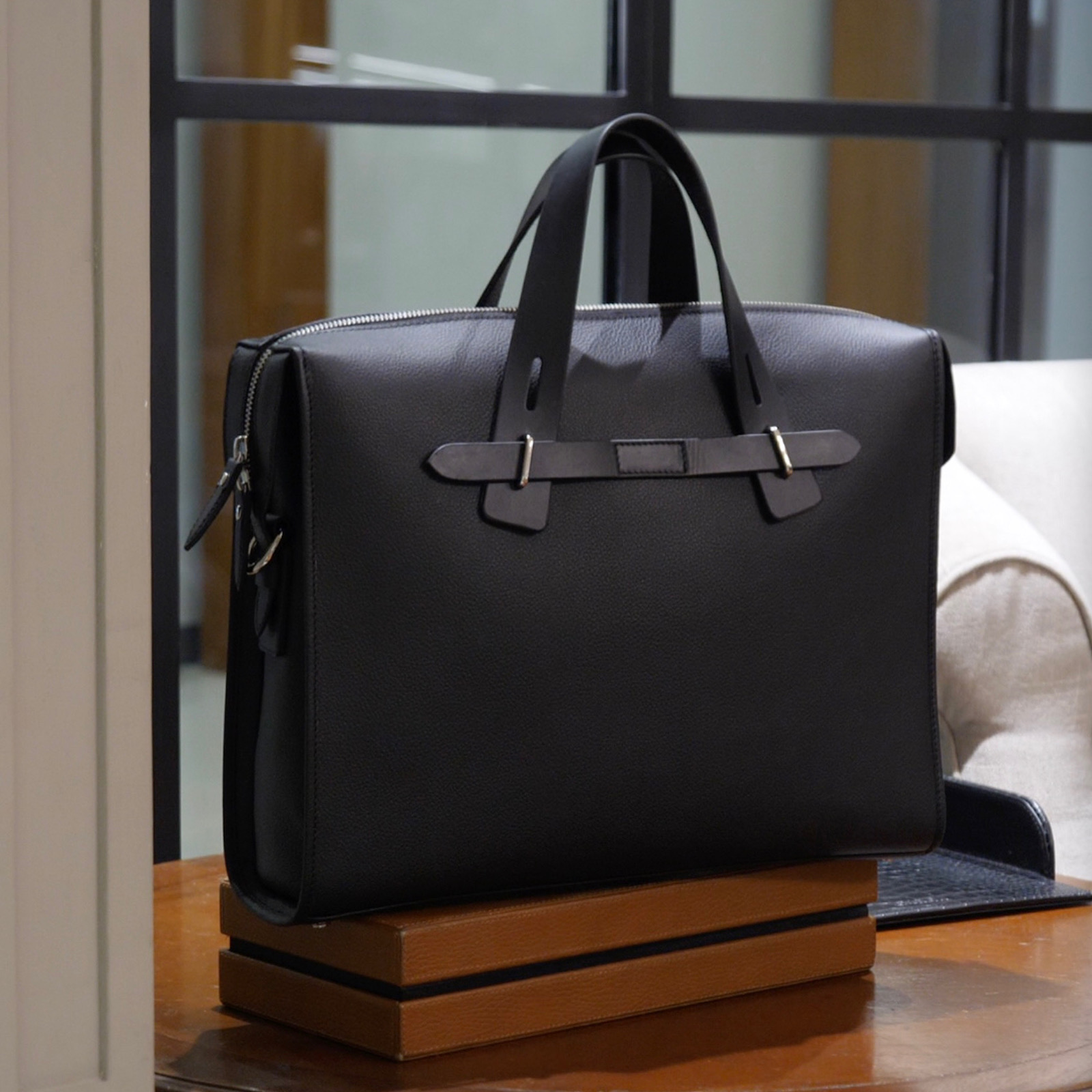 Designed for a smarter holiday look, the briefcase takes inspiration from the shape of a courier and messenger bag. In terms of its construction, the briefcase is defined by its sleek, honed edges that are fully enveloped in dark leather. The briefcase is also large enough to be able to accommodate laptops, chargers, and other necessities. Alongside these elements, it is also highlighted by its detachable strap and trolley band to keep it secure as hand carry luggage for the revenge traveller.