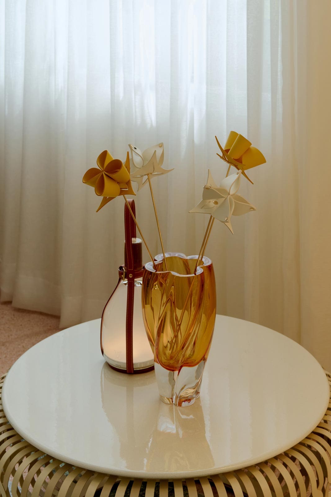 For Objet Nomades, Aebi and his team used Louis Vuitton’s leather as a primary material, highlighting its versatility and tactile appeal. Since 2008, the Swiss-based design studio has worked on 13 projects with the French House, showcasing their savoir-faire, crafting pieces that marry emotion with artisanal work.
