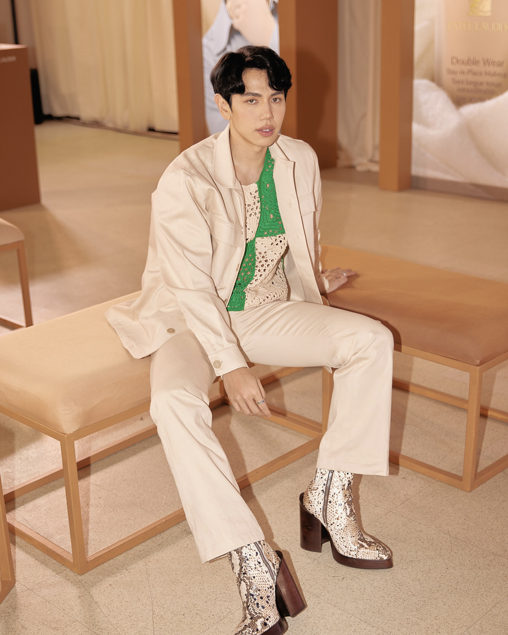 The evening was also dedicated to one of Estée Lauder’s liquid foundations, the Double Wear Stay-In-Place, a lightweight foundation with 24-hour staying power that is also waterproof and transfer-resistant. To show off the natural matte finish of the Double Wear, makeup artist Jelly Eugenio applied the shade Dawn on Pascual’s visage which accentuated his skin tone.
