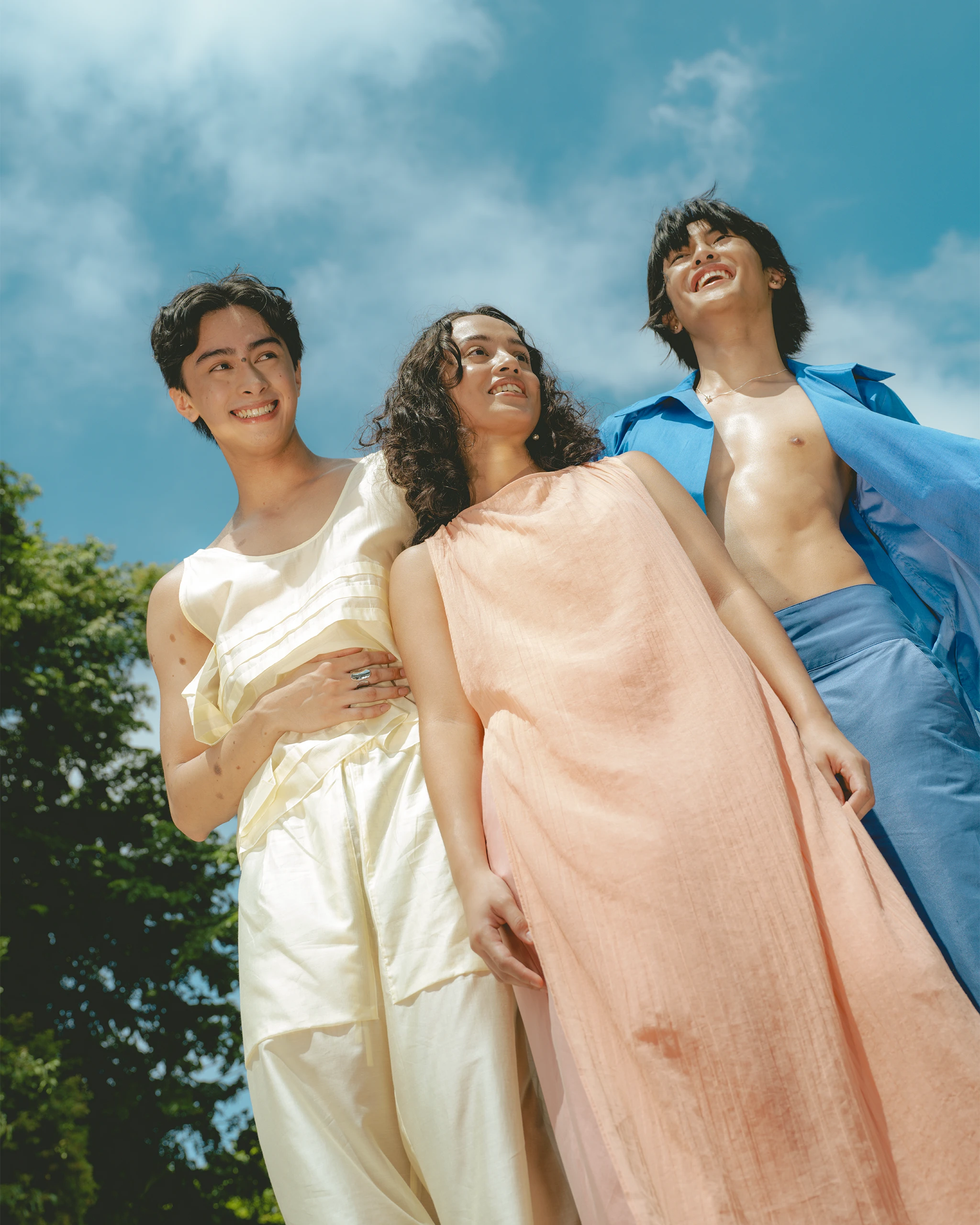 From left to right, Vogue Faces models Paolo Arboleda, Jasmine Moawad, and Giancarlo Dimalanta. Photographed by Shaira Luna.