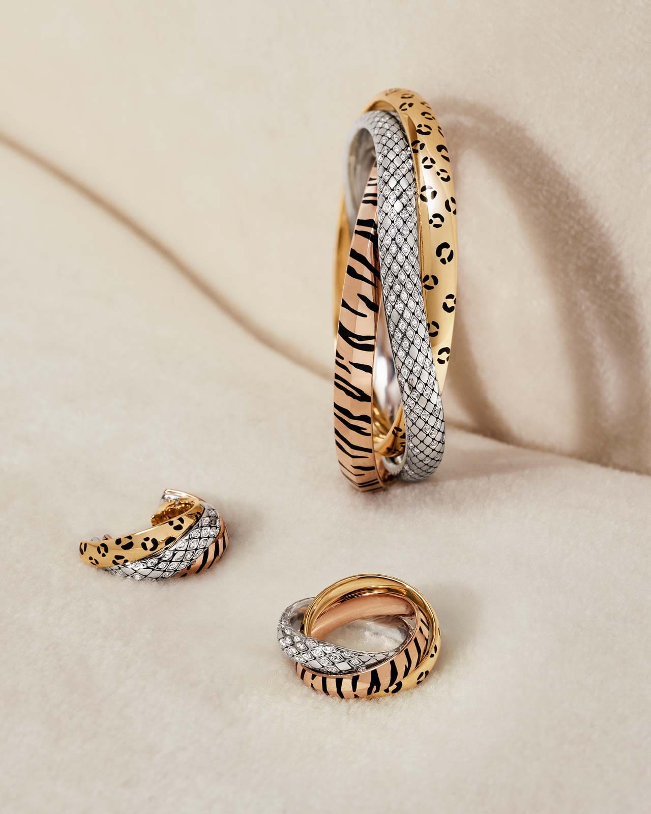 Louis Cartier’s 1924 design of the Trinity rings is reimagined into a collection of animal motifs and bold new forms