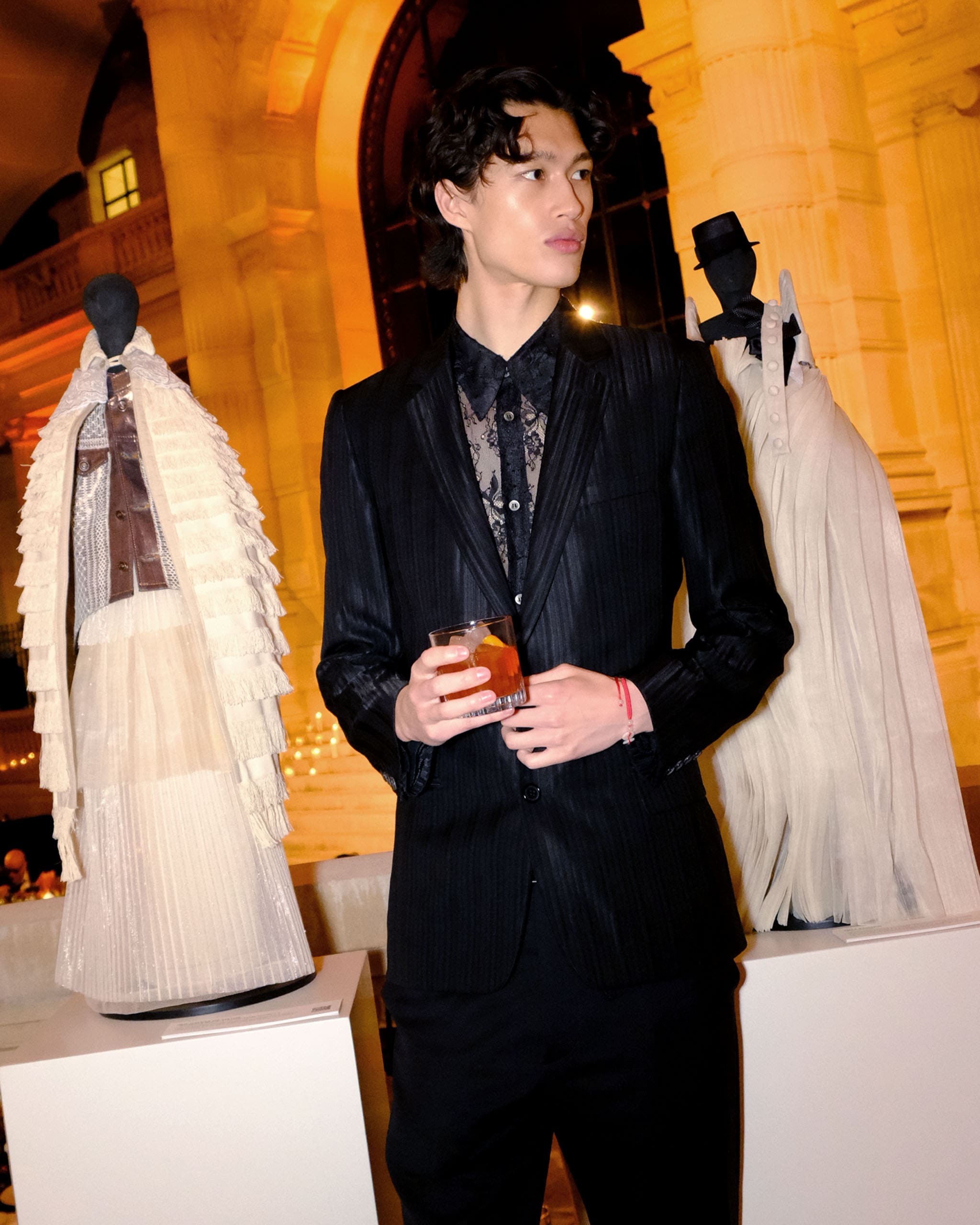 Found within each detail of the evening are the gilded hues of Scottish distillery Chivas Regal. Fashion models Kelsey Merritt and Mathieu Simoneau are seen stepping out from their co-branded coaches as they are greeted by the intricately designed maquettes situated along the peristyle of the museum.