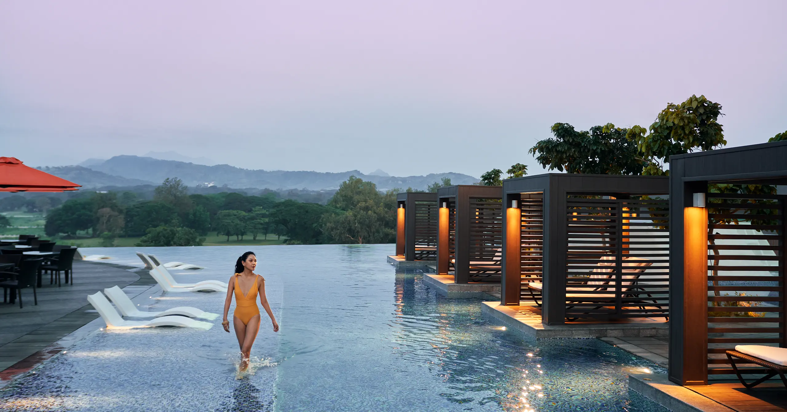 Mornings begin with open views of the Zambales mountain range, visible from suites in Swissôtel Clark, Clark Marriott, and Widus Hotel. Downstairs, baristas pull espresso shots at Urban Coffee, while early risers find seats at the breakfast buffet at Markt, inspired by vibrant European marketplaces. Guests can also start their day with laps in the pool or enjoy a round of golf at the nearby course.