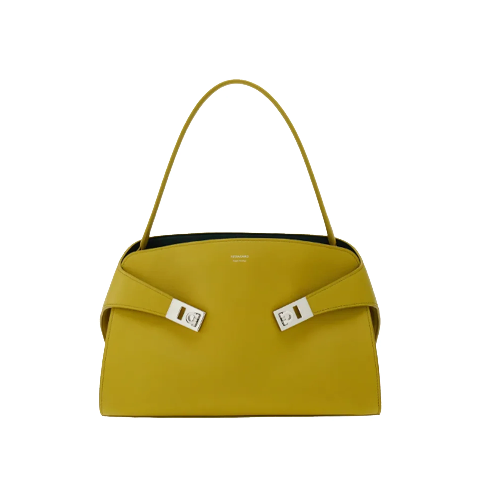 The Ferragamo Soft Hug Bag features a blend of softened geometric-cut calfskin and gold accents, creating a modern silhouette that is functional and retro-futuristic in design. The Lemongrass shade also adds a citrus touch to the overall tone of the bag, giving it a holiday look that could complement one’s vacation wardrobe while still adding a touch of vibrancy.