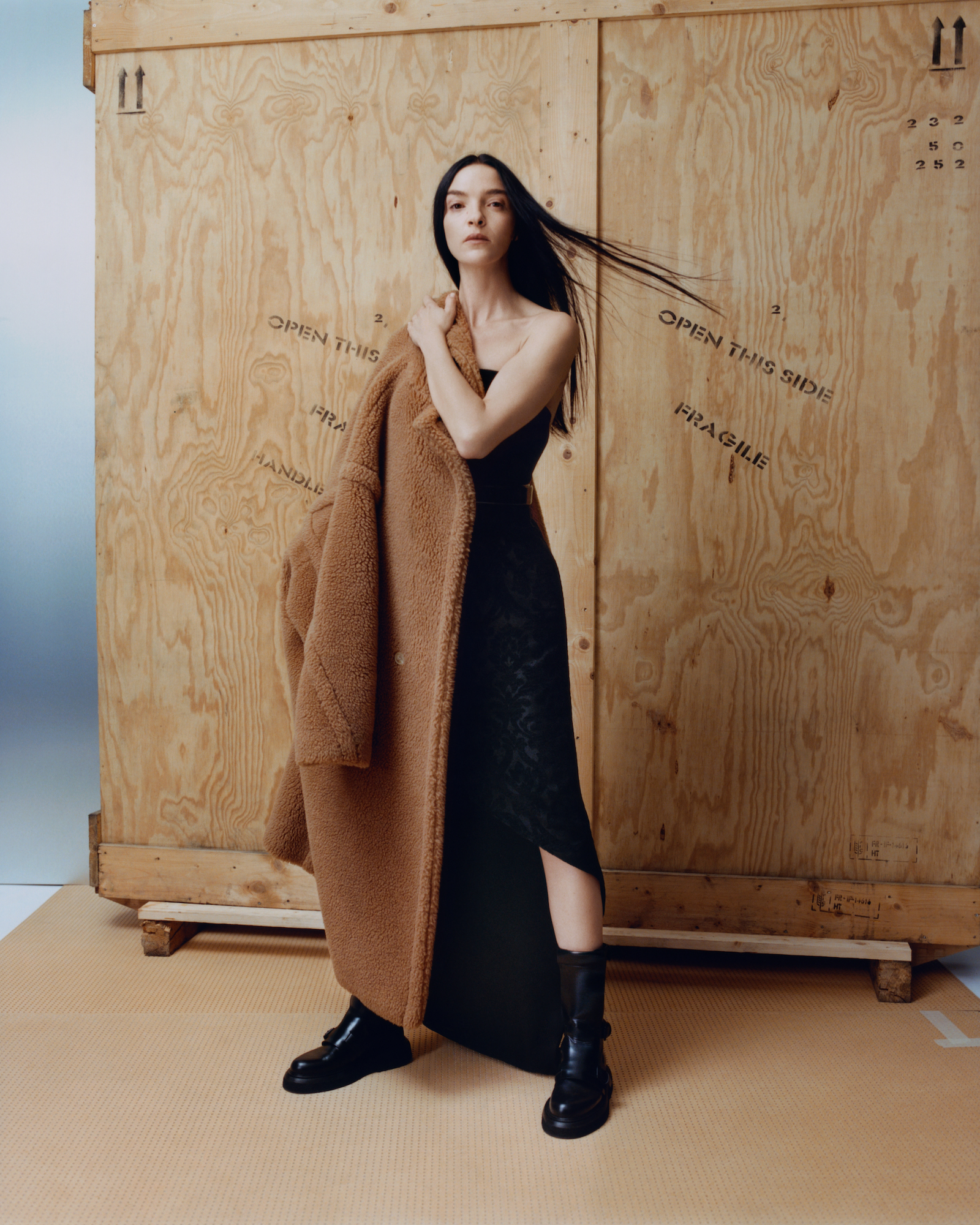 Mariaclara Boscono for the Max Mara Teddy Bear Coat 10th Anniversary Campaign. Photo by Tyler Mitchell