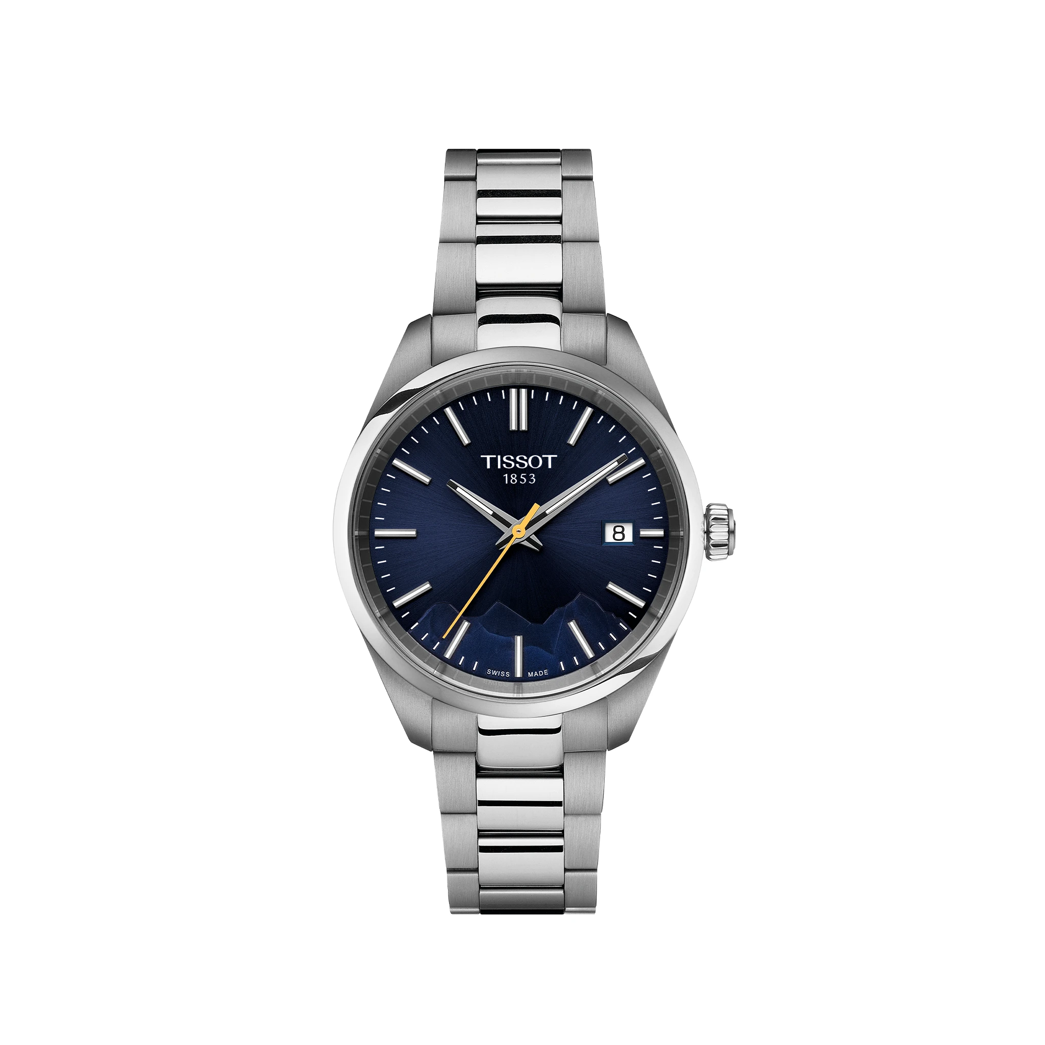 Inspired by the railway that connected the mountain pass of Kleine Scheidegg to the summit of Jungfraujoch, the PR 100 Jungfraubahn etches the Swiss mountains into its design. Made with an all-stainless steel construction and a navy blue face, the watch also features a yellow second hand, which references the railcar’s similarly-colored pinstripe.