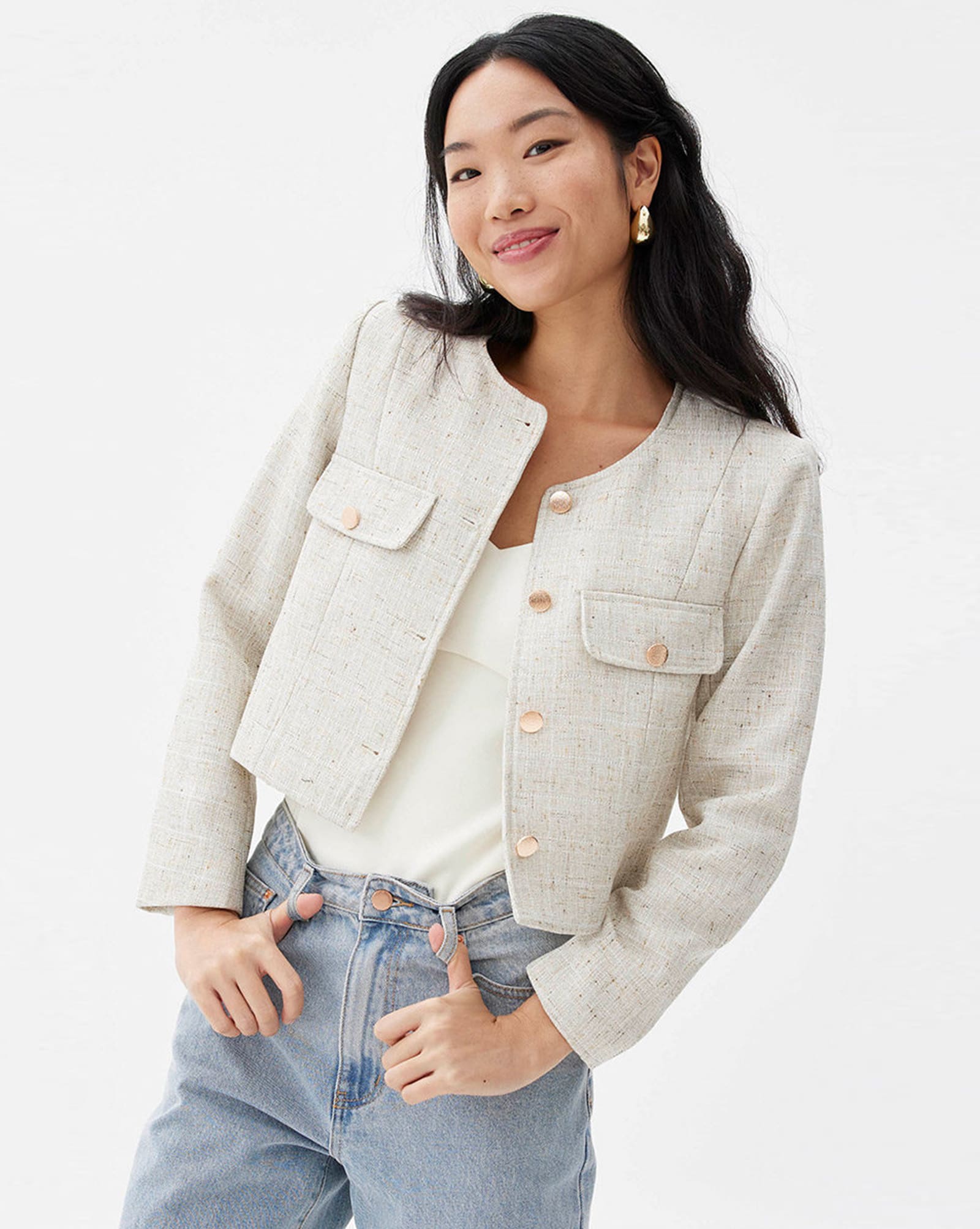 Channeling back-to-boardroom style (à la Ingrid Yun, of course), put together a look inspired by Arden and sport a tone-on-tone ensemble that’s both comfortable for long days yet refined for impromptu meetings with the Ling belted tailored waistcoat, Arden tweed jacket, and Yuna tailored high-rise trousers. Our favorite part of this ensemble? The crease-ease make of both the waistcoat and jacket that cements it as a seamless option for professional women.
