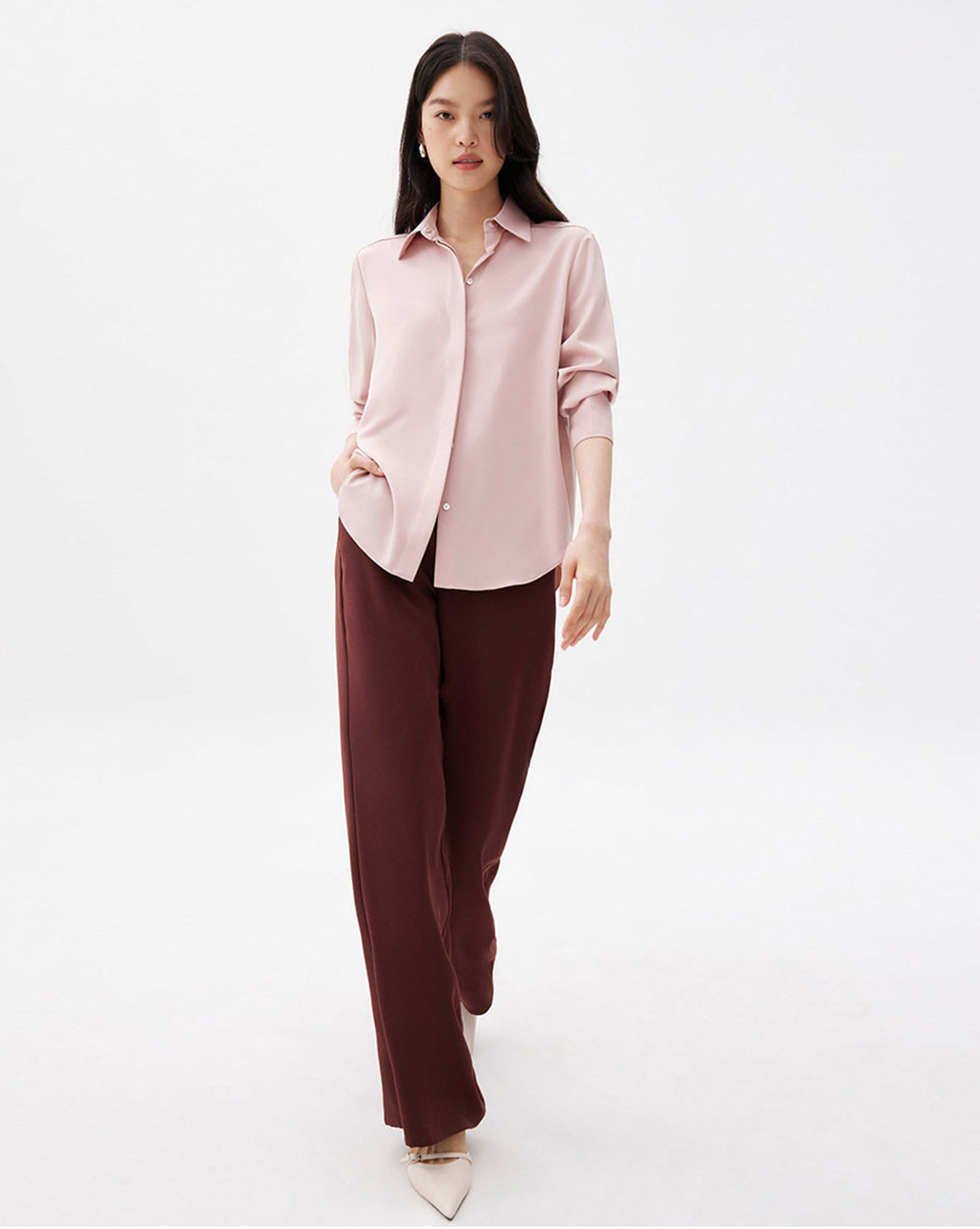 Acing comfort and impact, emulate Yuna’s look for the perfect ensemble that will take you from journey to destination—or in her case, from studio to stage. Sporting the Rachel ruched-ready blazer and Ivy satin button down shirt, Yuna’s look is the perfect blend of creative and classic. This combination garners extra points for its ready-to-move features (details that make being active and on the go an easy feat) and pockets for the multi-taskers amongst us.