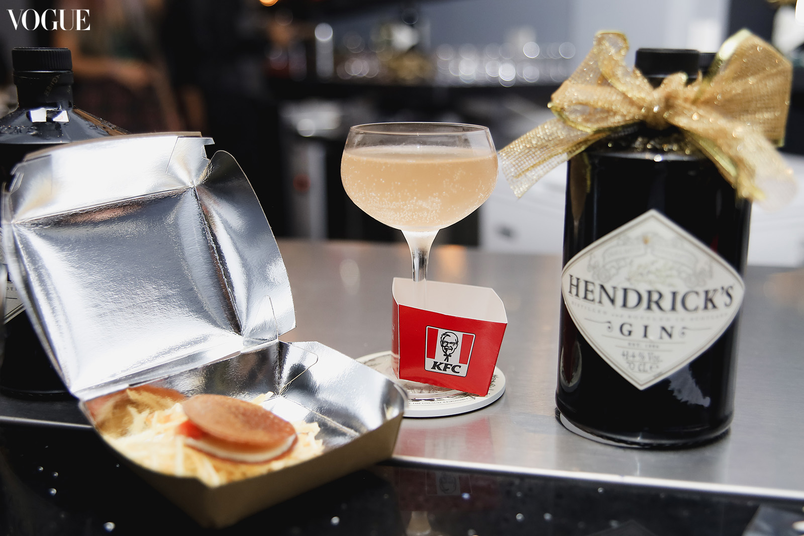In homage to Hendrick’s unpredictable identity, the “KFChristmas” was the first of Thio’s beverages to be unveiled.  Inspired by the practice of purchasing KFC for Christmas, the holiday bundle sold in Japan has become synonymous with their Christmas tradition: a playful nod to the West’s Thanksgiving dinners. Part of this bundle included a Christmas cake, which influenced the cocktail as a sweet and light opener. With Hendrick’s Gin as the base, the cocktail begins in a burst of cranberry, the fizziness of sparkling wine, and rich, white Crème de Cacao. Setting the tone for the series of unorthodox accompaniments, the dessert-inspired drink was paired with foie double down chicken skin, alongside foie gras mousse— a callback to the fried chicken served in the original bundle.