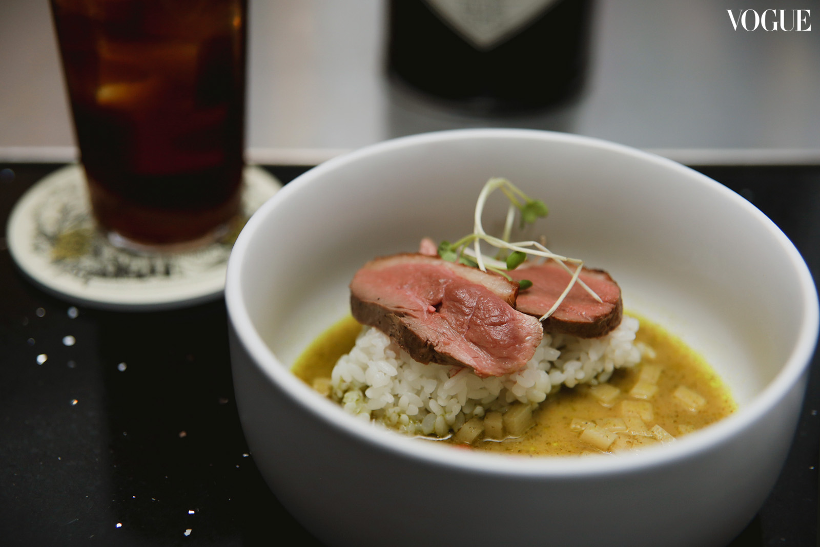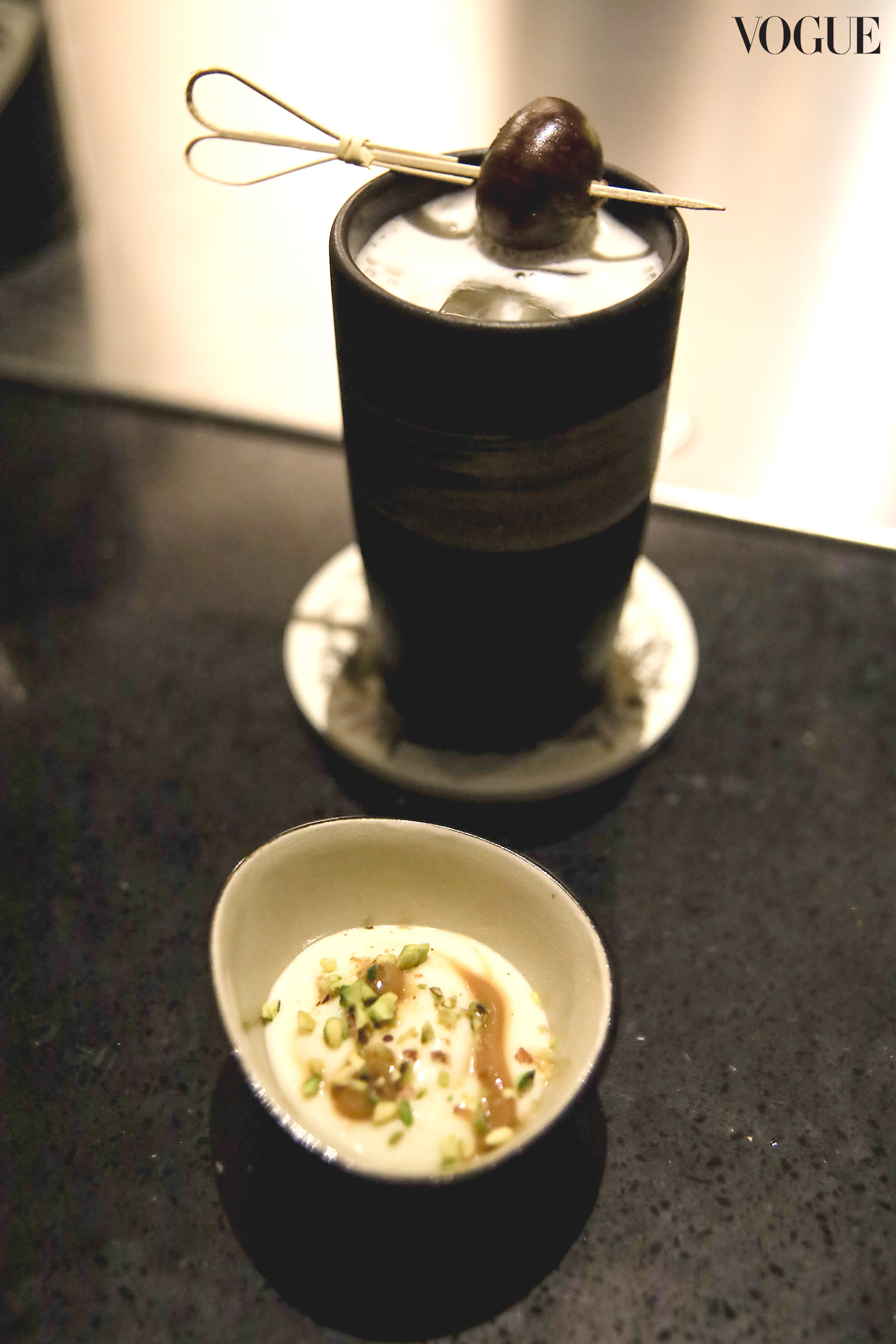The menu ends with another story centered around a mythological creature, the Turkish “Karakoncolos.” To deter the beast’s gaze, one had to say the word “Kara” in order to be free from its grasp. The cocktail also takes elements from a Turkish tradition that involves a festive turkey being stuffed with rice, chestnuts, pistachios, and raisins. Taking inspiration from Turkish festive traditions, the “Say Kara” cocktail features Hendrick’s gin alongside Japanese rice, pistachio milk, raisins, and festive spices. This combination created a velvety texture reminiscent of a smooth horchata.