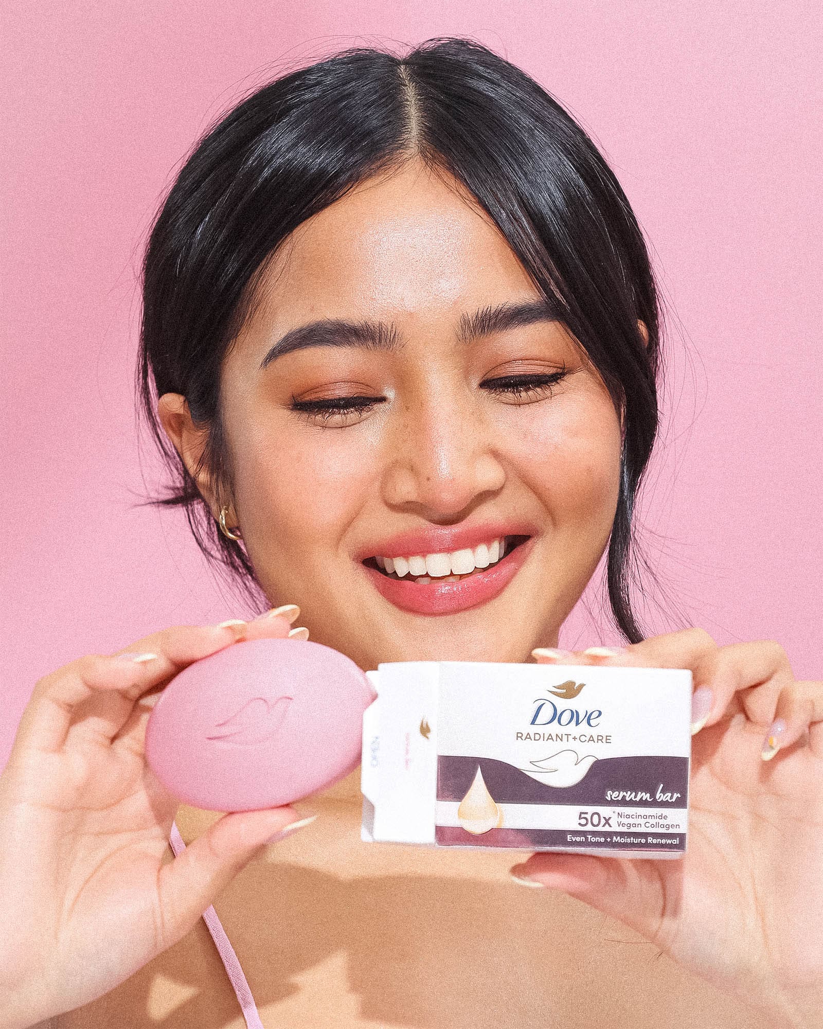 Ry then shares that the pink variant of the Dove Serum Bar helps renew the moisture in her skin while helping even out the skin tone with its Niacinamide and Vegan Collagen ingredients.
