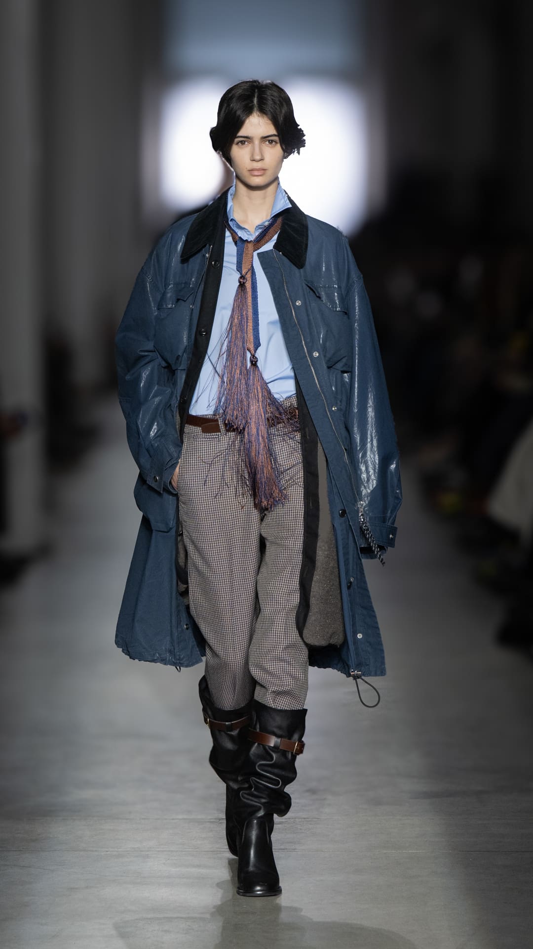 But it was an obvious nod to personal style that really stole the show. The very contrasts inspired by the dichotomies of the city also spoke to Tokyo’s unique and enduring influence on the fashion world, where unexpected elements made for style that is anything but predictable. Dandy-inspired scarves were worn as ties whilst collars were imperfectly popped on one side, tying together cross-cultural influences with ease.