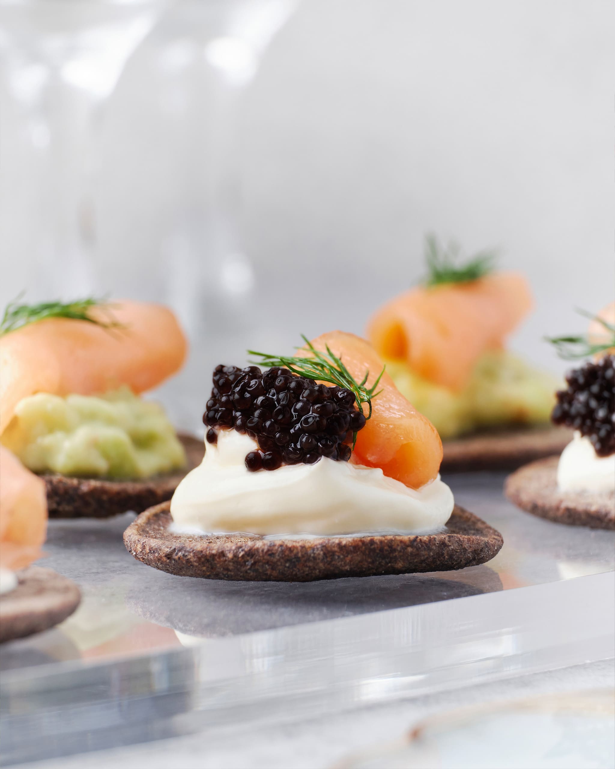 “Not a lot of people like the taste of caviar. It can be intimidating, especially when considering its price and bold flavor profile. But with that said, we made sure to offer complementary flavors that would allow clients to ease into the experience of eating caviar,” she expounds.