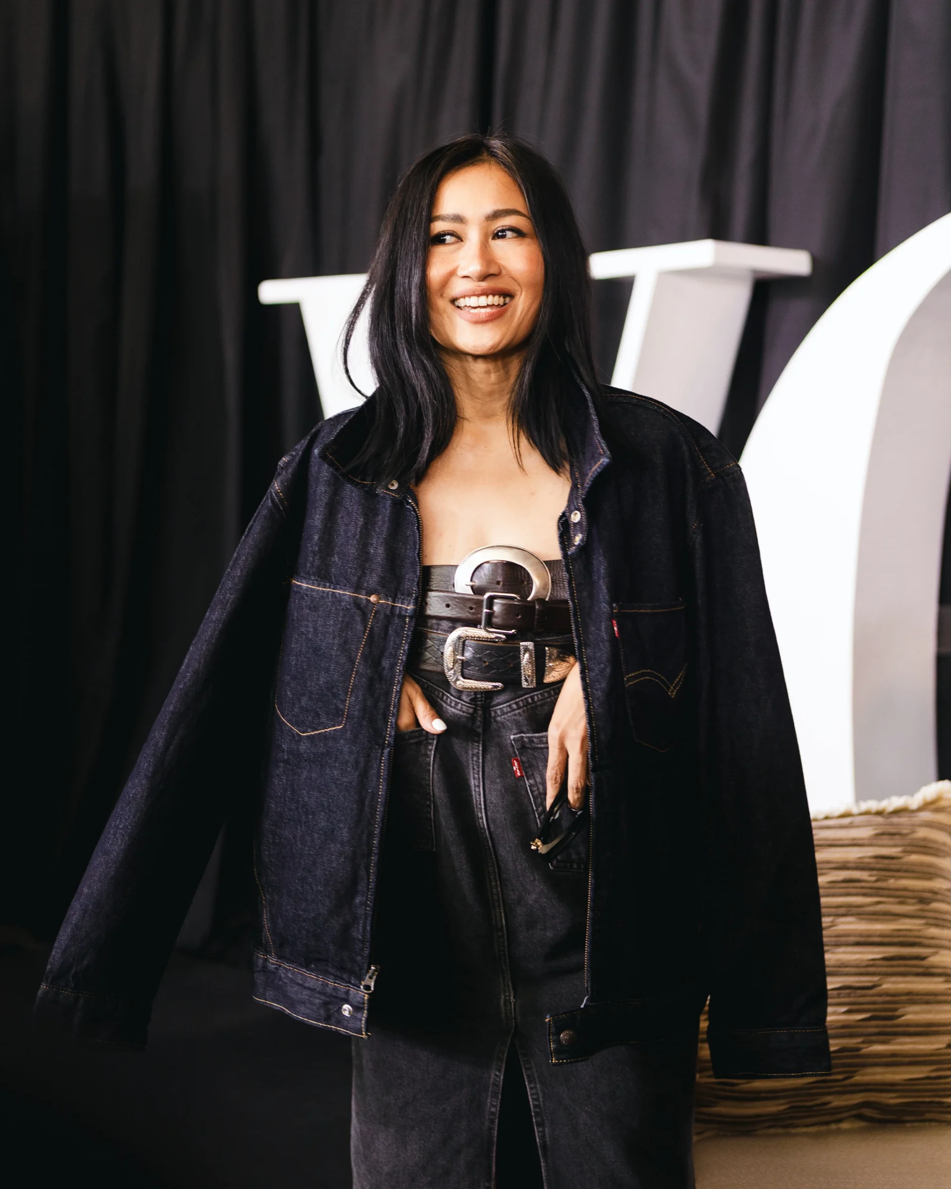 She gestured to her own look, a clever mix of Levi’s staples reinterpreted. “I’m wearing a pencil skirt backwards. I wore this as a skirt a month ago, and now it’s a dress,” she explains. “Denim is special because of its transformability. You can wear it baggy, cropped, as a jacket, as a skirt, or even turn a men’s shirt into a sculptural top, and the fabric holds volume and structure, so you can really make it your own.”
