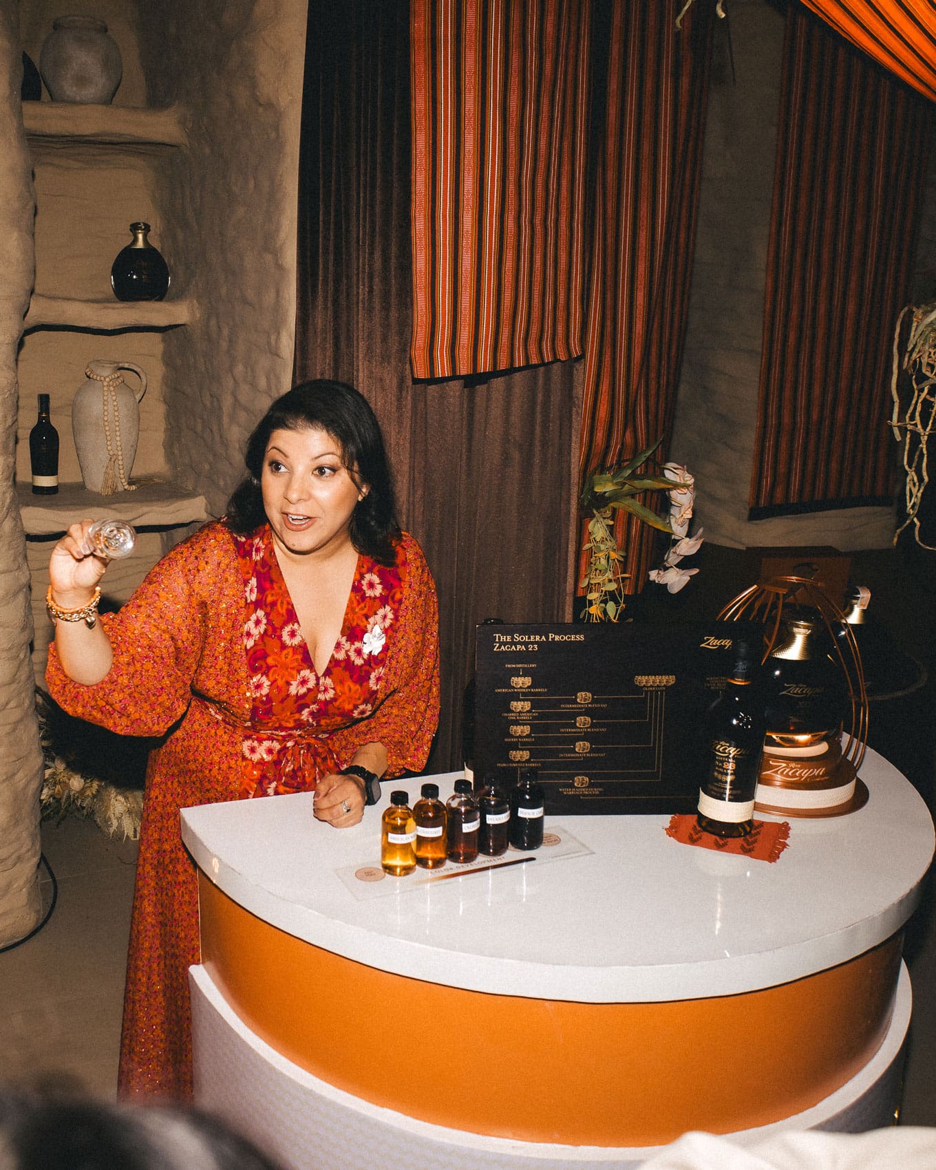 After dinner, attendees ascended to the second level of Incanta, a room was transformed into a recreation of the sugarcane fields and the distillery where the Guatemalan rum is created. Led by brand ambassador Vanessa de León, the sessions unpacked the brand’s signature techniques, including its Solera System of aging.