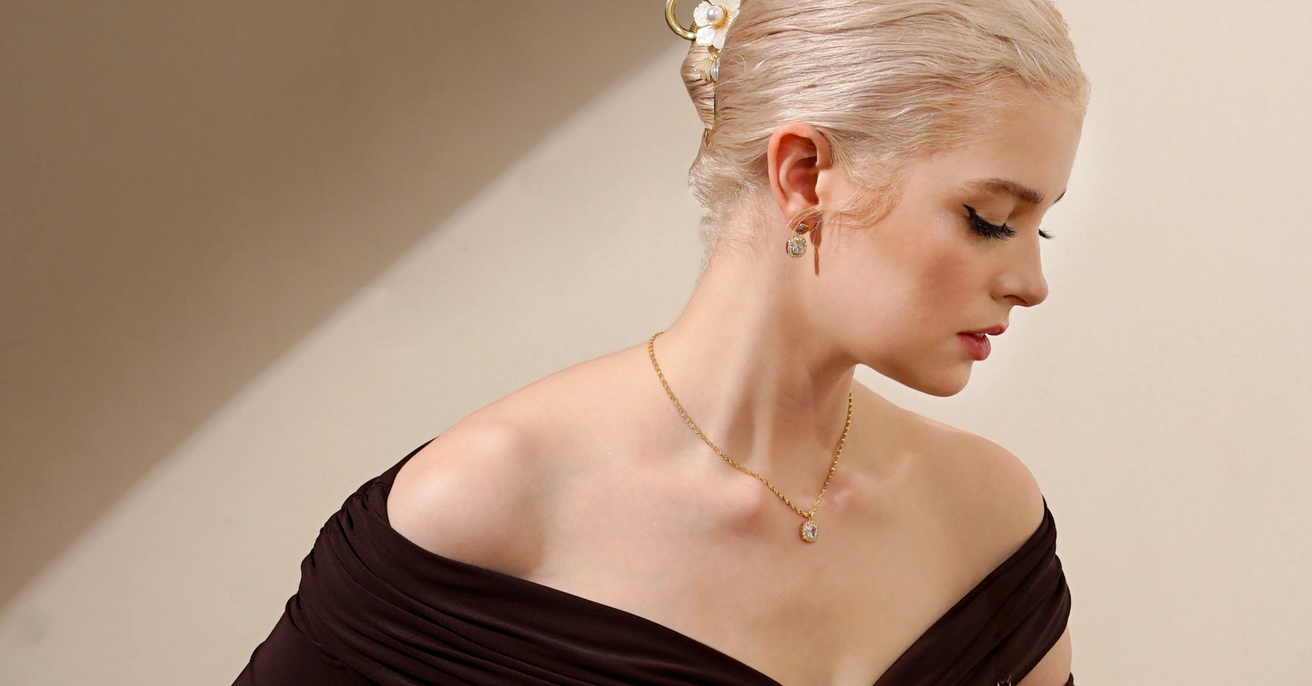 Inspired by the Japanese aesthetic shibui, where its expressions are described as subtle yet striking to the eye, the Hiroko metal hair clamp comes plated in gold and detailed with floral ornaments and cubic zircon crystals to create a gilded touch to one’s hairstyle.