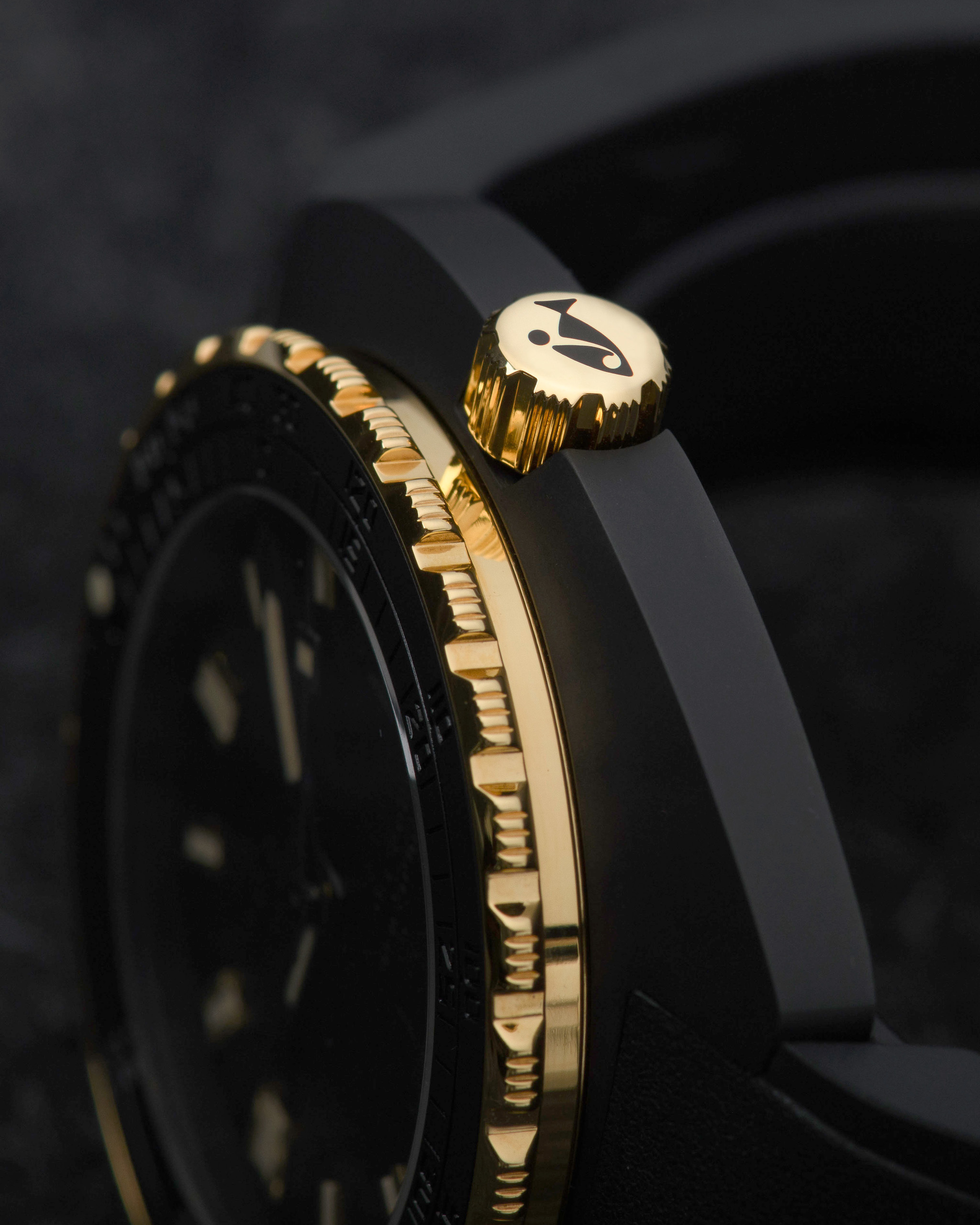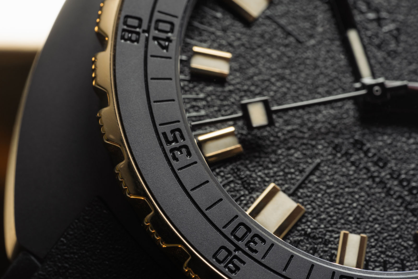 More than fifty years after the timepiece’s debut, the Swiss watchmaker reinvented one of its classics through the release of the SUB 300β Sharkhunter. Apart from retaining the pure functionalities of its predecessor, the Sharkhunter is defined by having a more stylish flair to its design. In a two-tone finish, its exterior is enveloped in a matte black ceramic case that contrasts against gold highlights on its hand and indexes—with the watch’s bezel and crown also molded in 18K gold.
